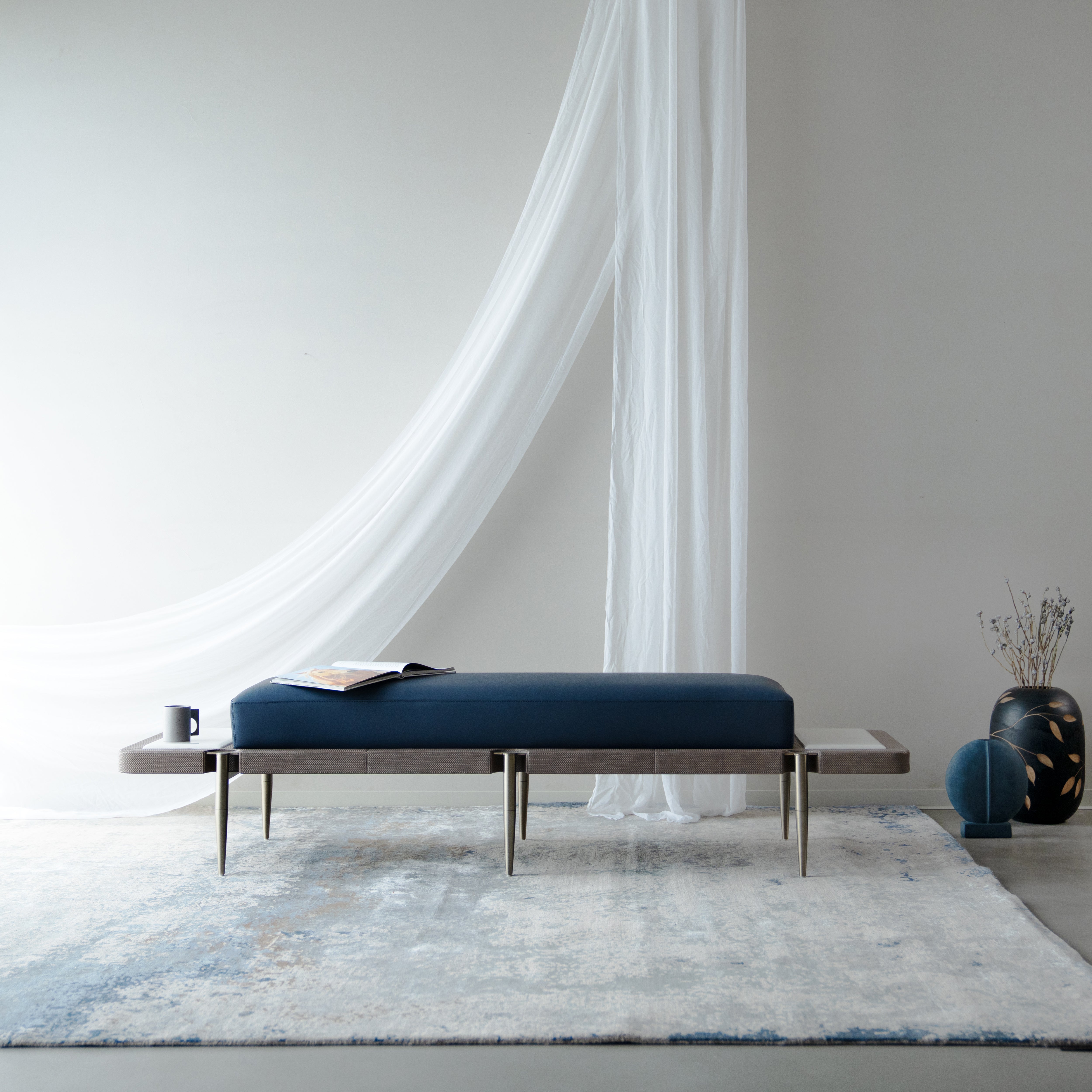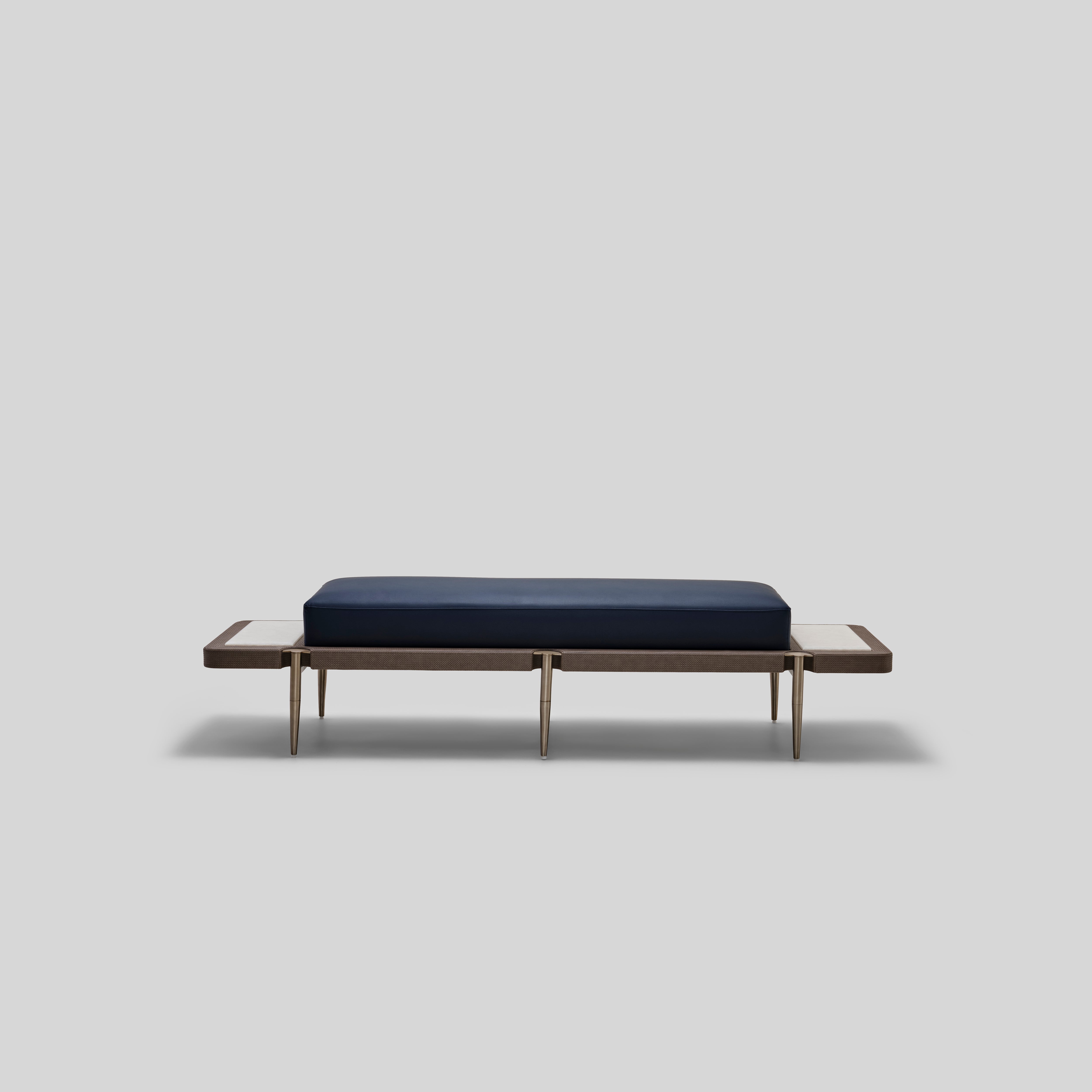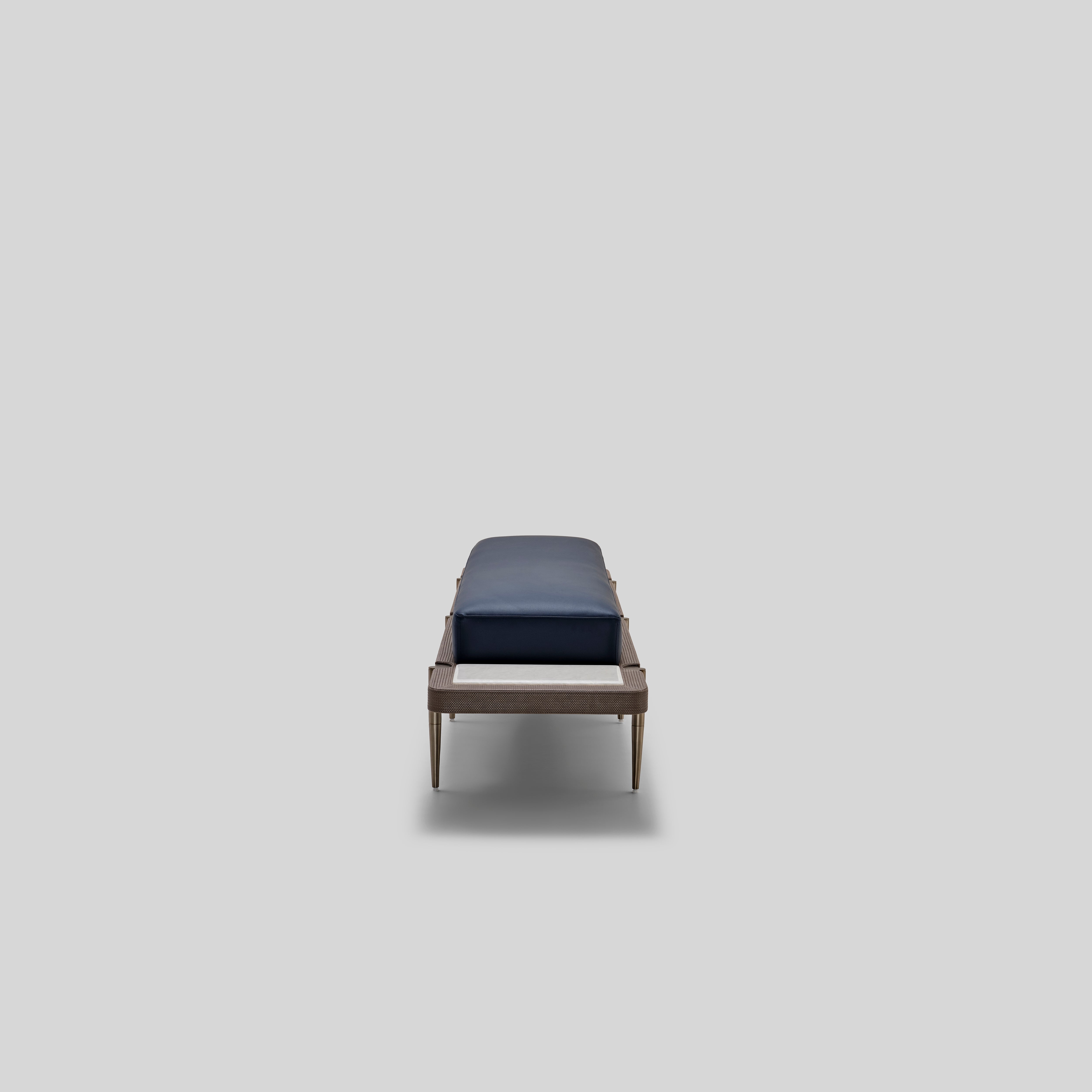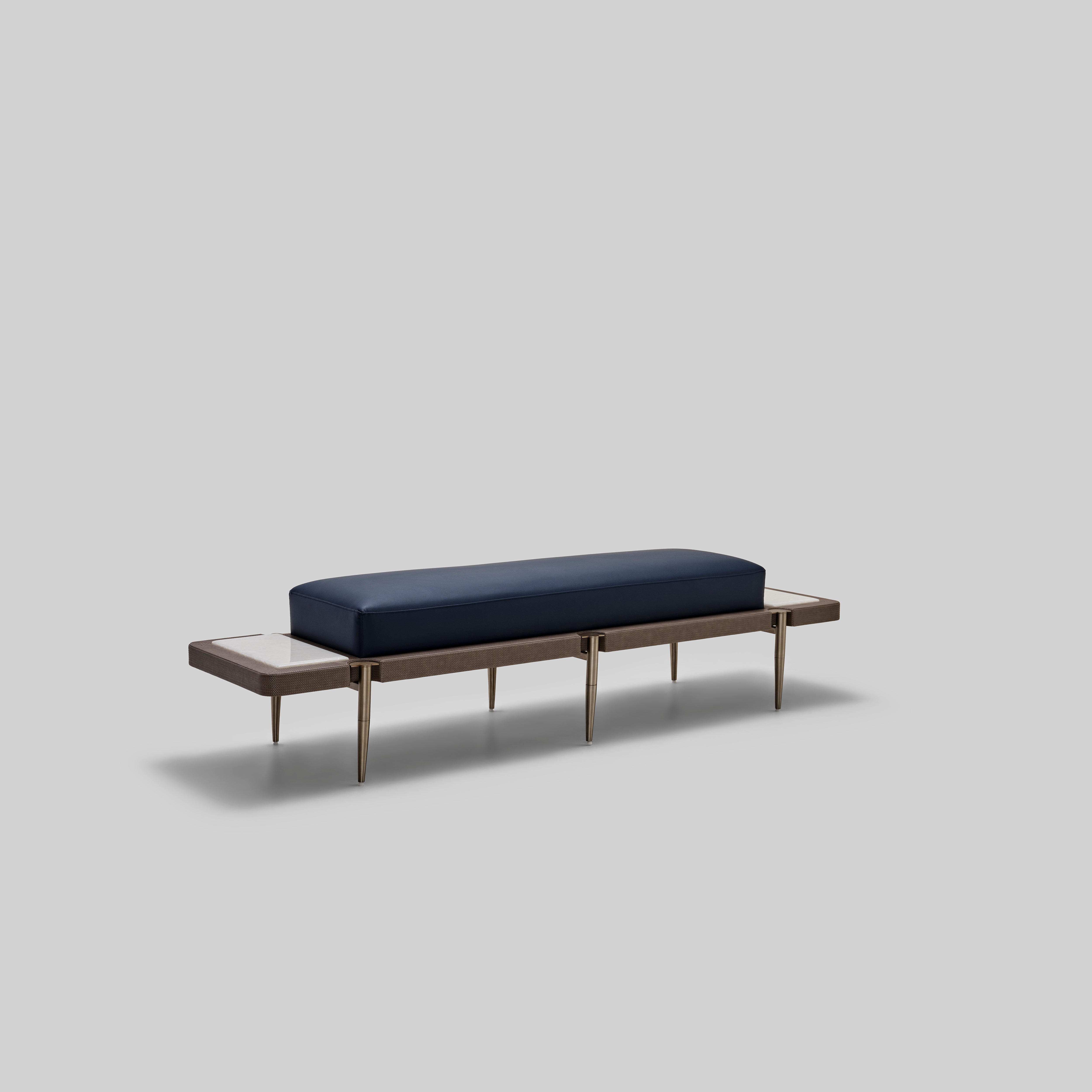 Graceful in stance and elegant in its reach, this bench rests on a slim, elevated base that gives it a refined lightness. The long cushion sits with quiet confidence, creating a polished accent that enhances both modern and traditionally styled spaces.