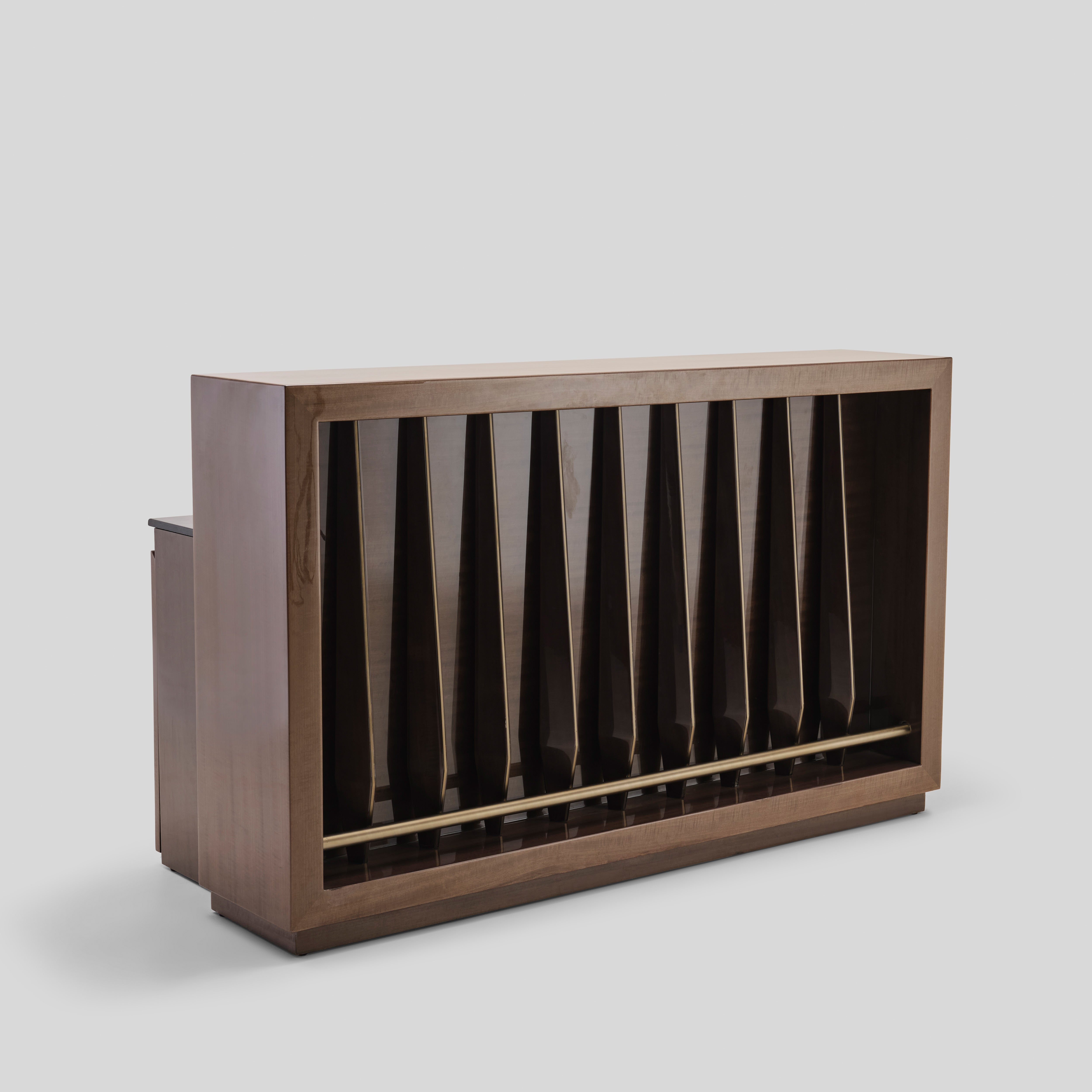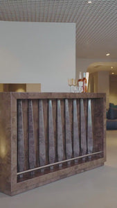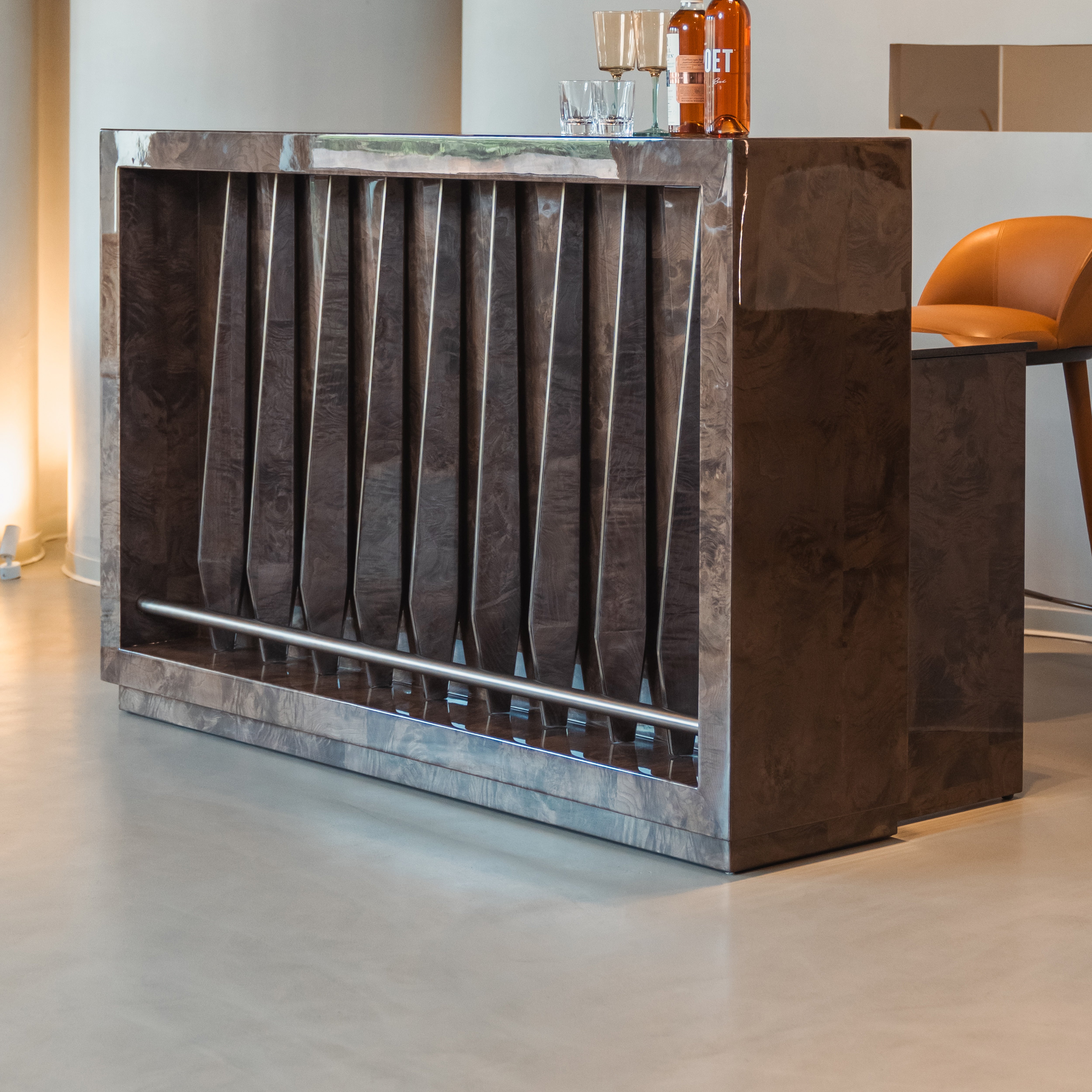 Boogie Bar brings tailored sophistication, shaped with couture-like clarity and modern restraint. Vertical fins set an artistic rhythm, giving the form sculptural presence. Its composed layout adds emotional ease and quiet charm, making it well-suited to lounges, villa living spaces, and refined bar areas for a distinctive design statement everywhere.