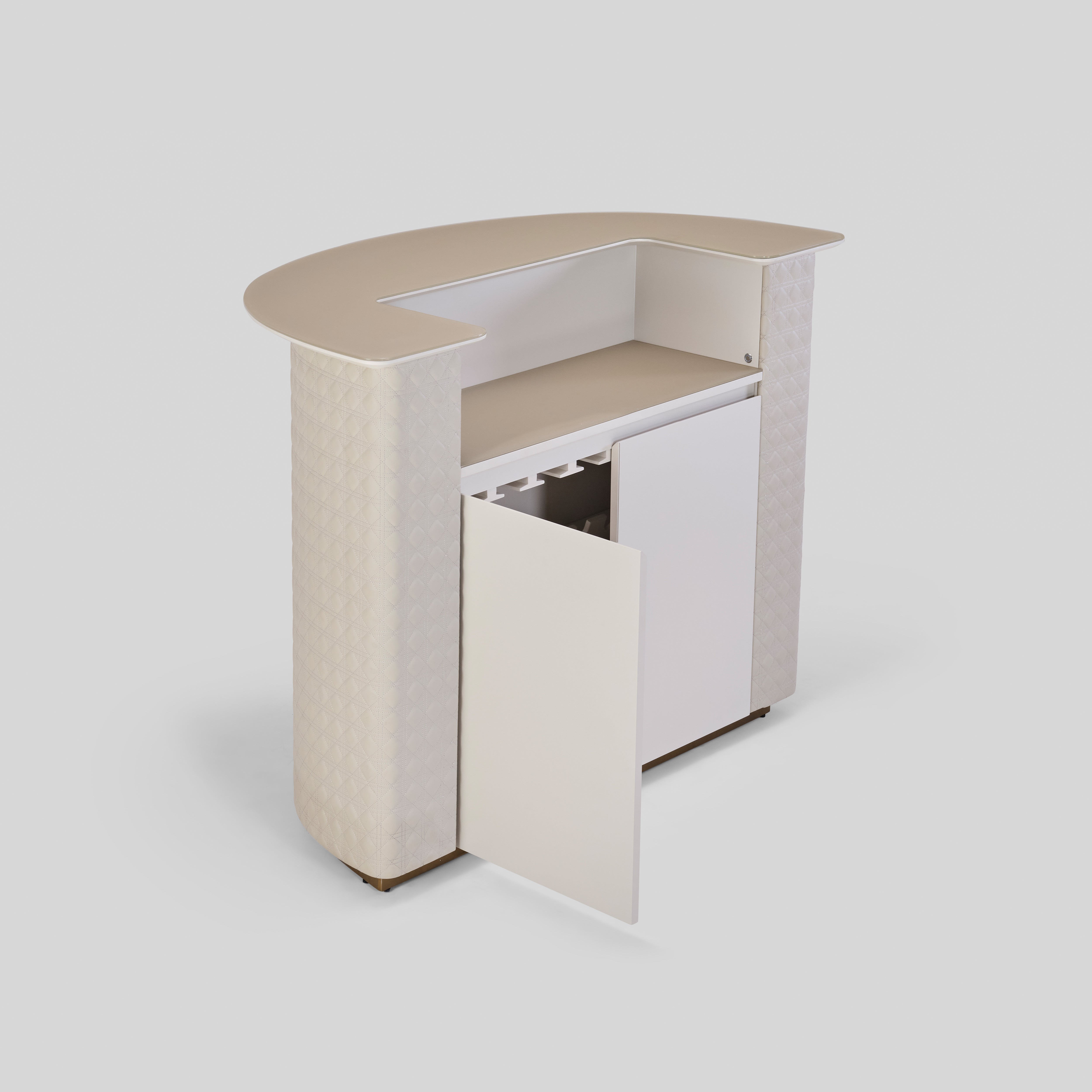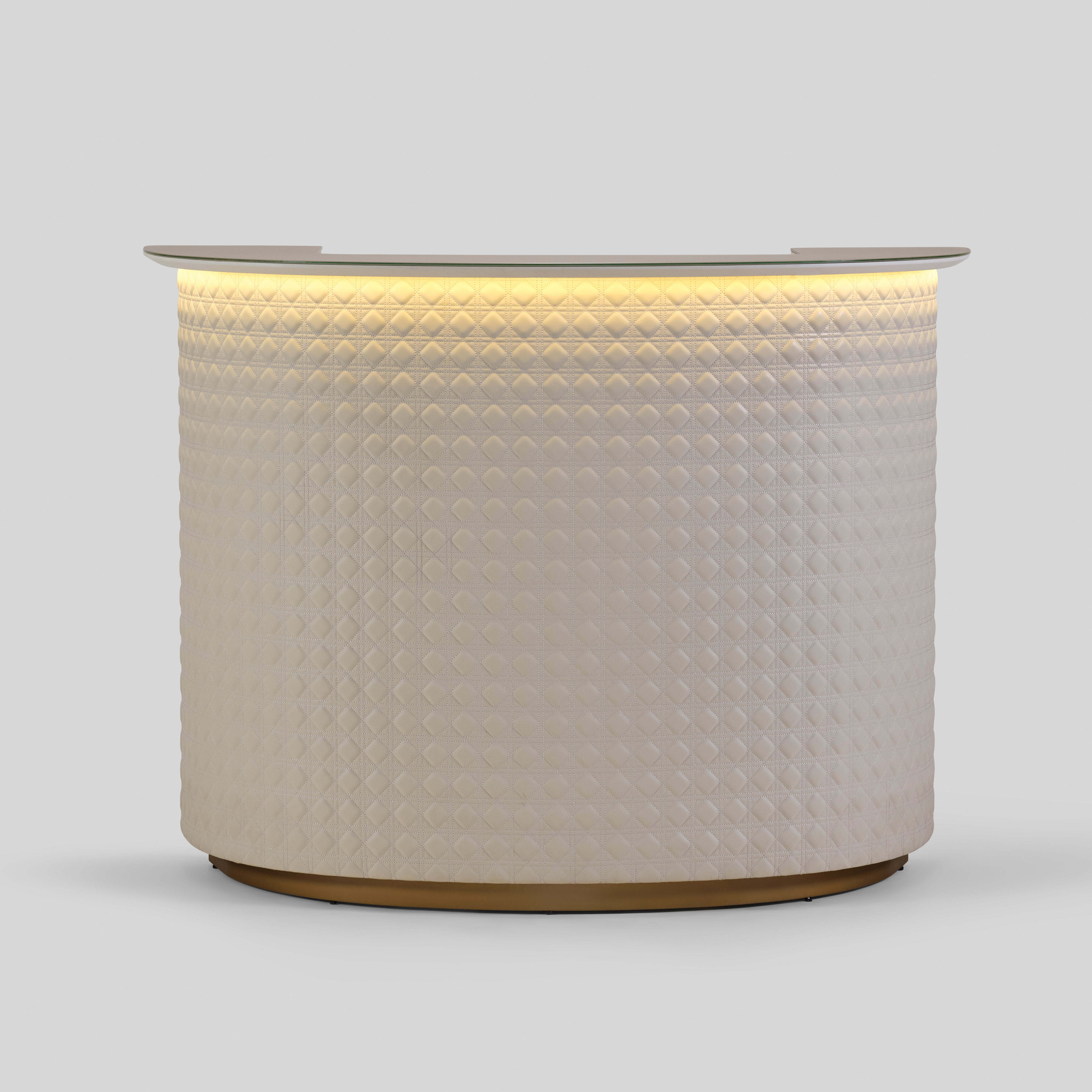 - Front in quilted leatherette with infused light details