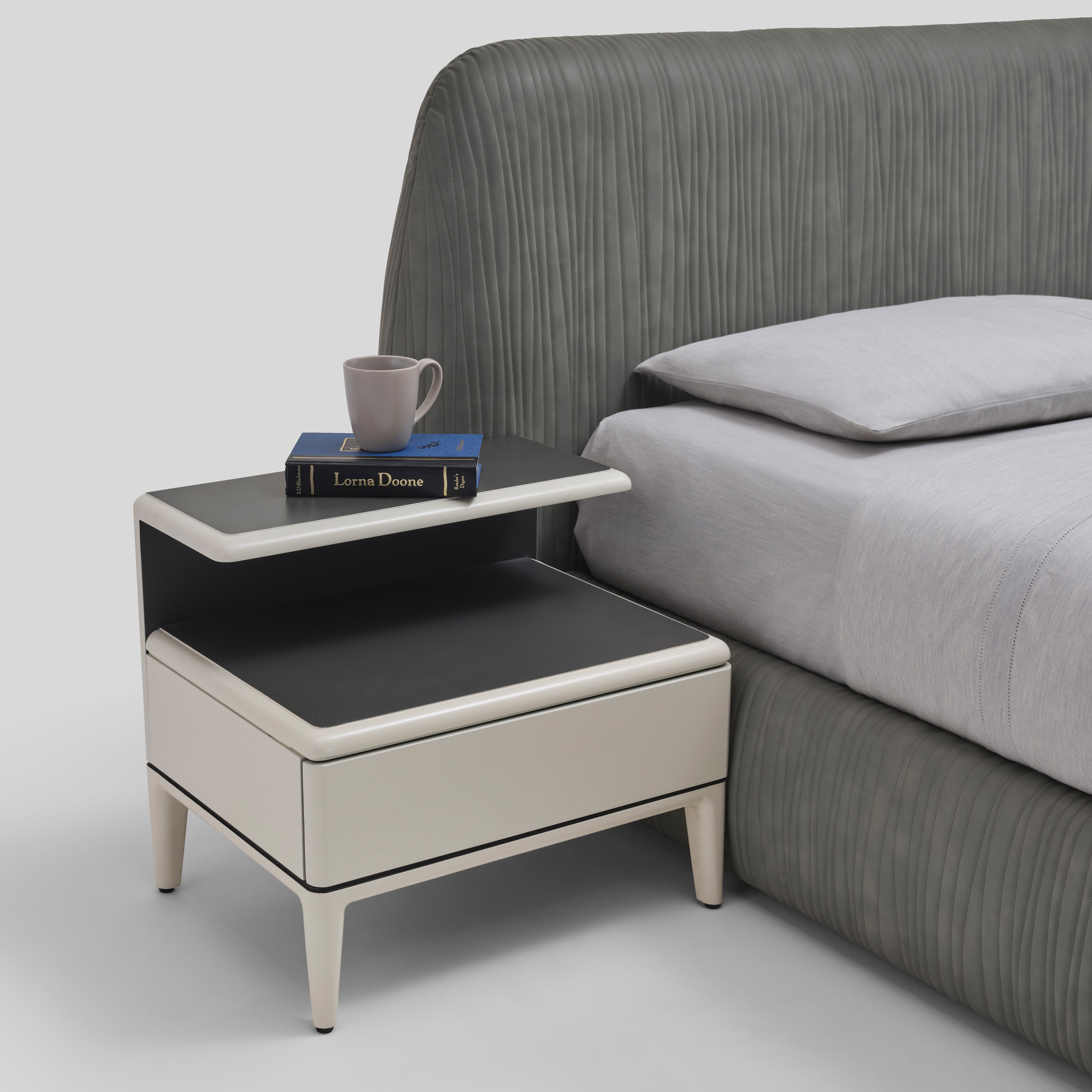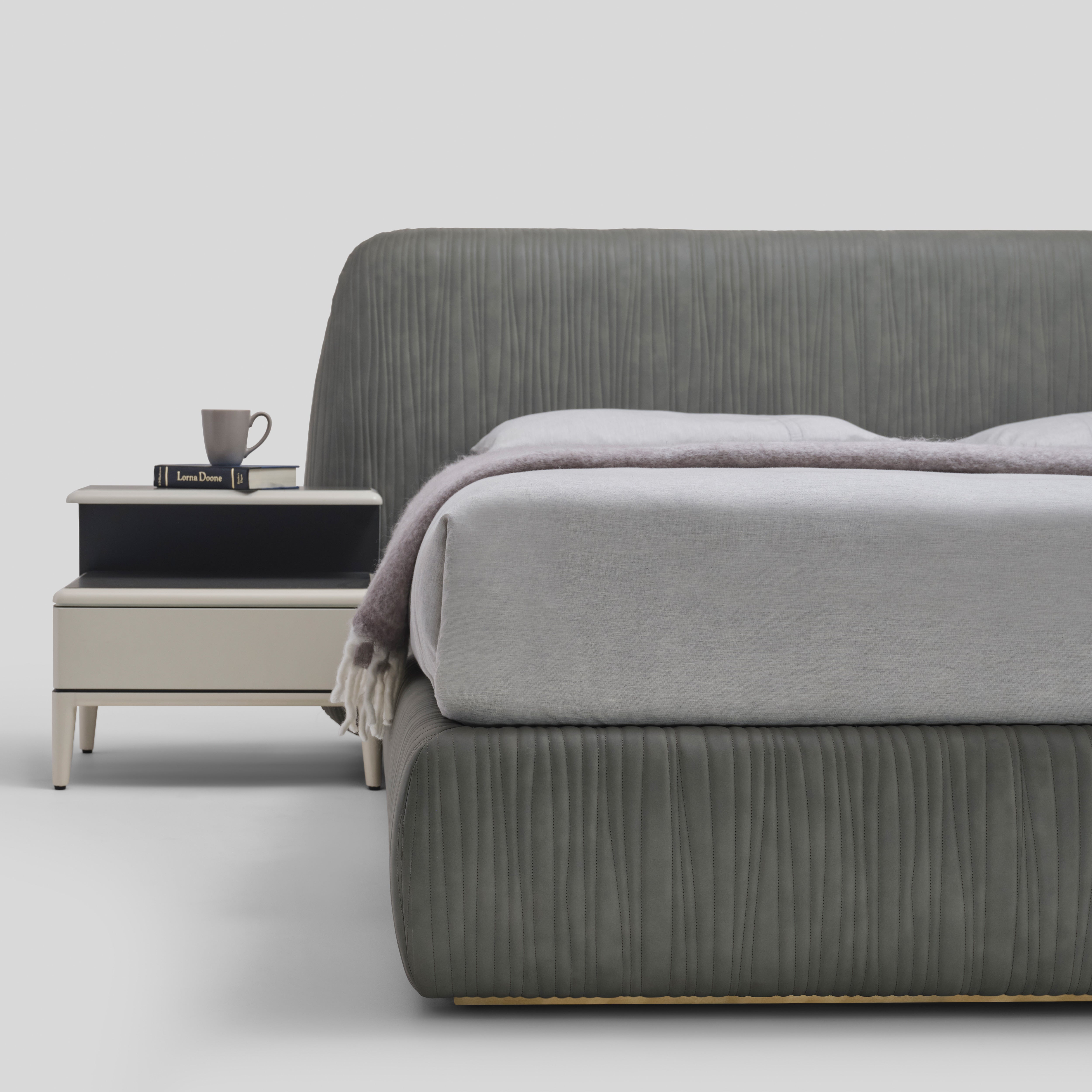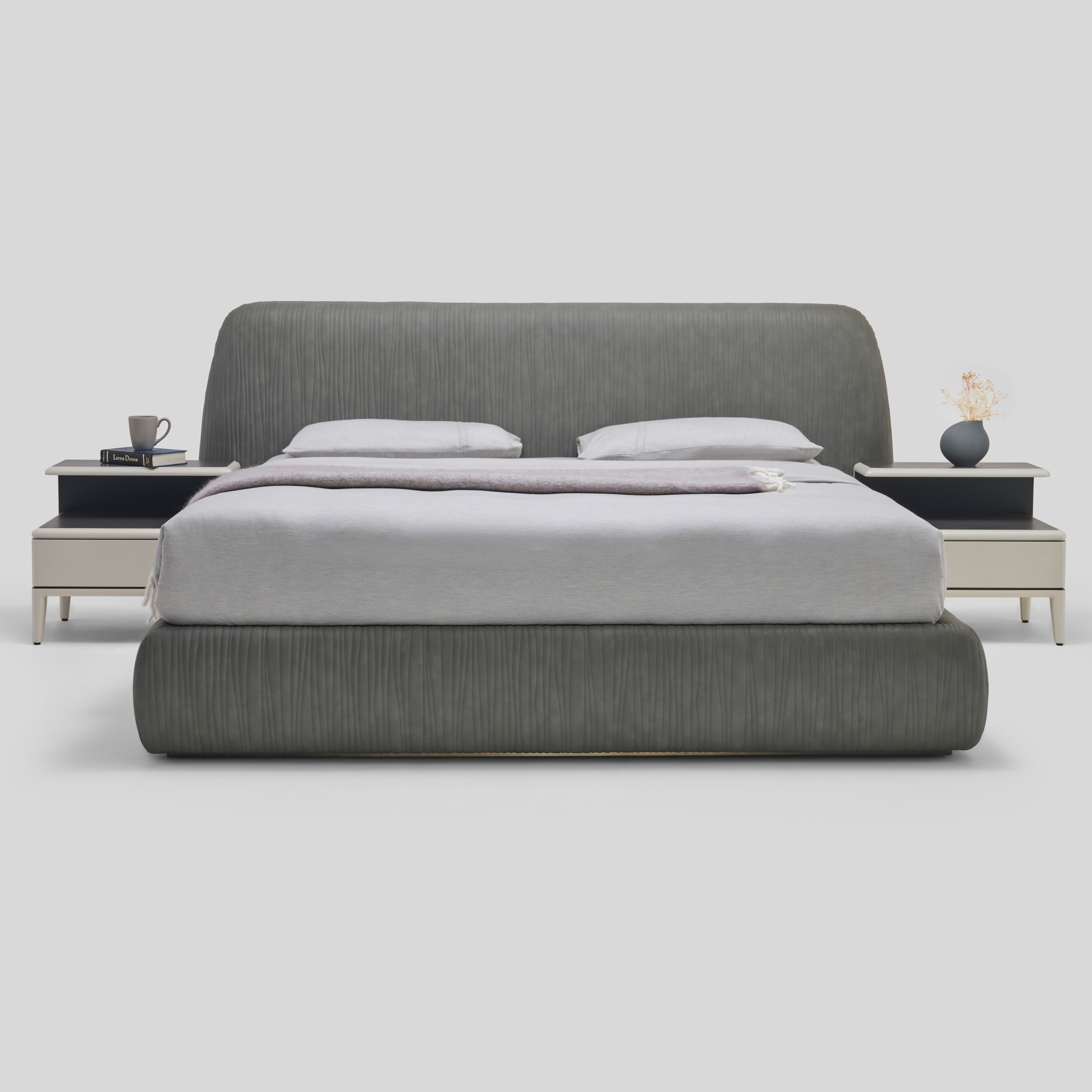 Robert blends modern softness with tailored clarity, its curved upholstered headboard offering calm structure. The grounded base and paired tables create balanced harmony, while its gentle contemporary style carries a quiet charm that makes any bedroom feel effortlessly composed.