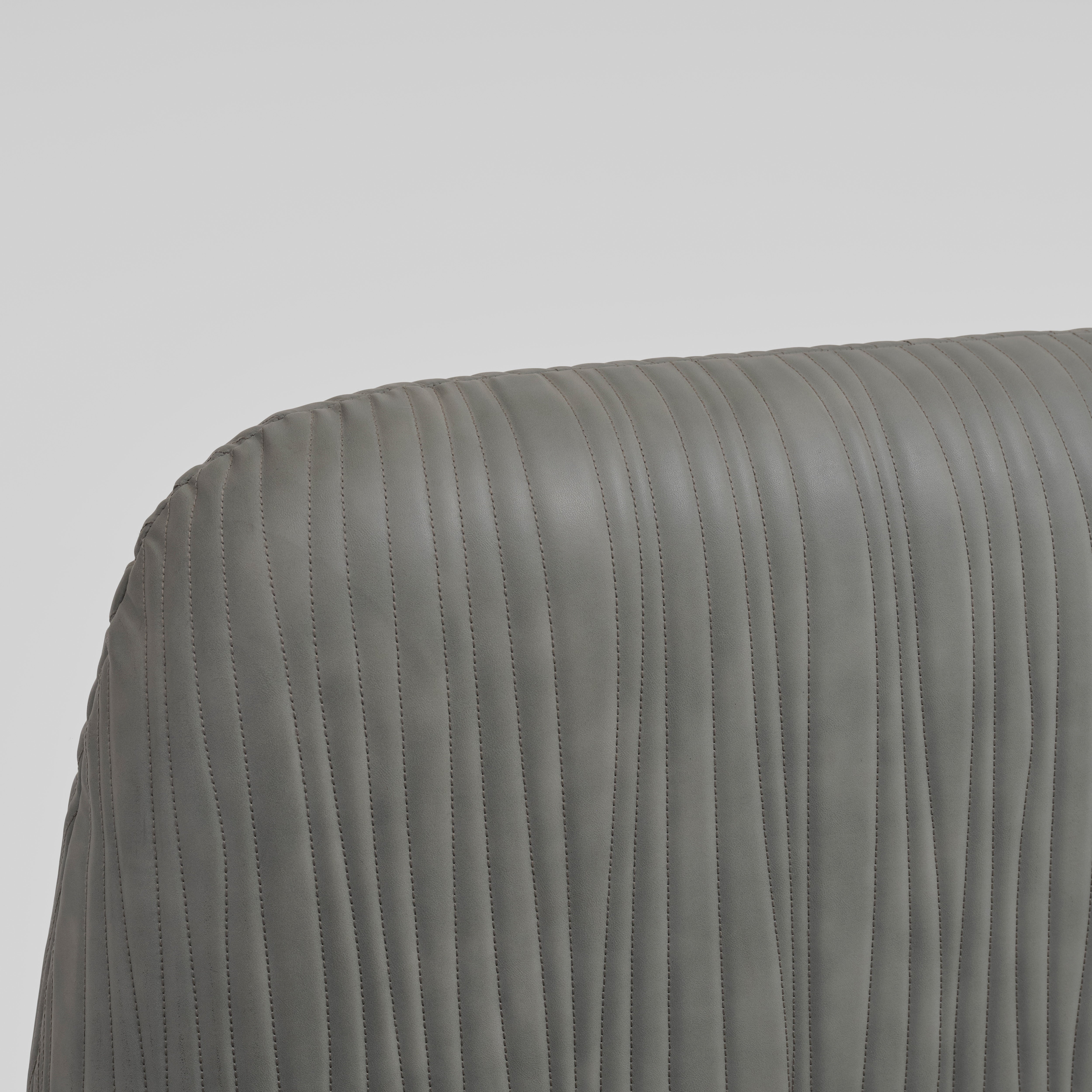 - Headboard upholstered in leatherette with sculpted stitch detail