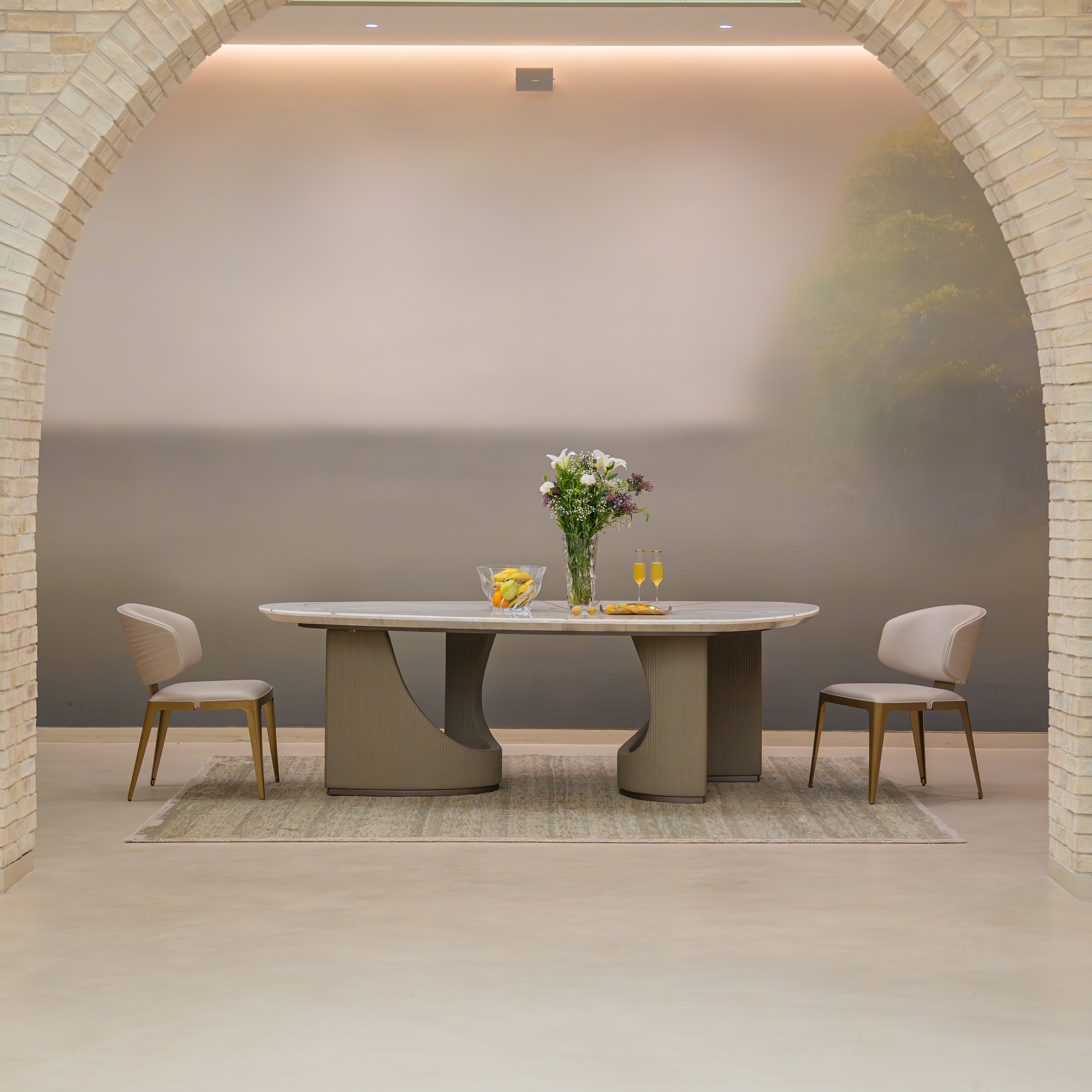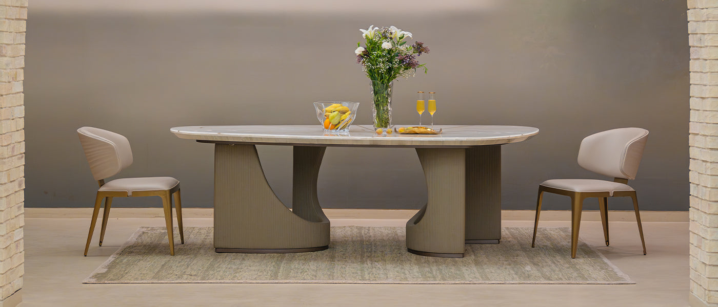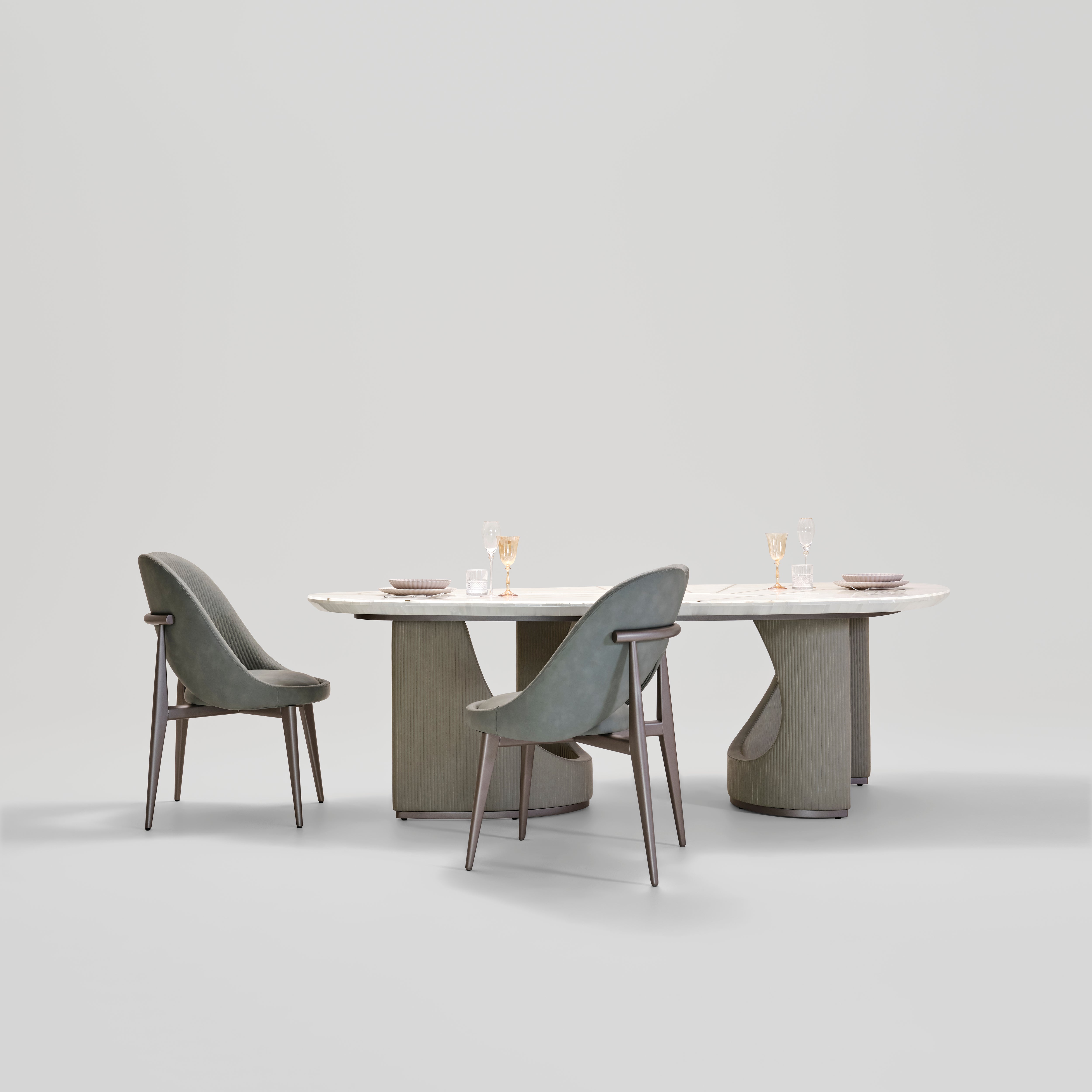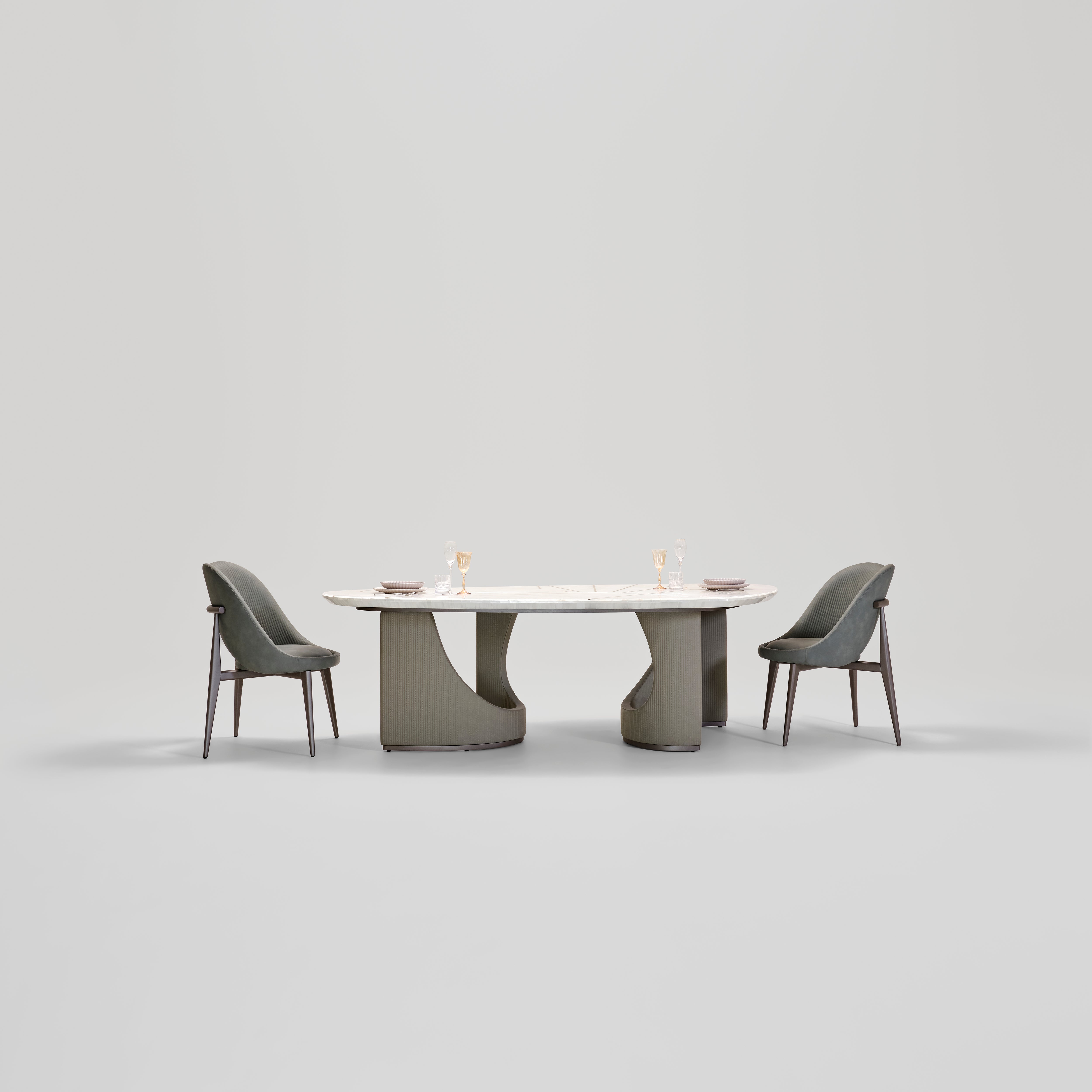 Lotto embraces a contemporary organic sensibility, its sculpted bases forming a quiet dialogue of curves and grounded elegance. The marble top rests with effortless poise, creating a statement of calm sophistication and sculptural harmony that elevates any modern dining setting with refined presence.