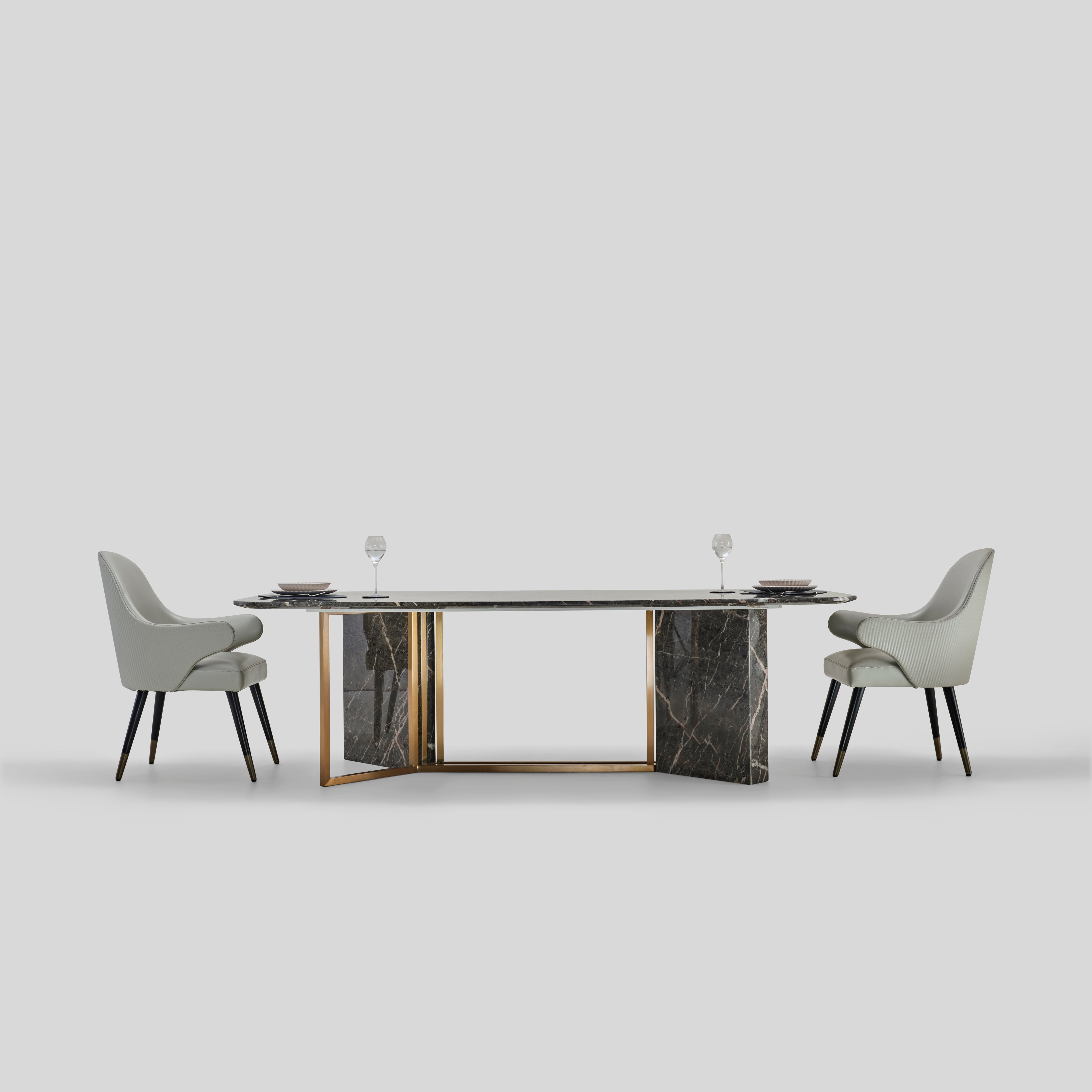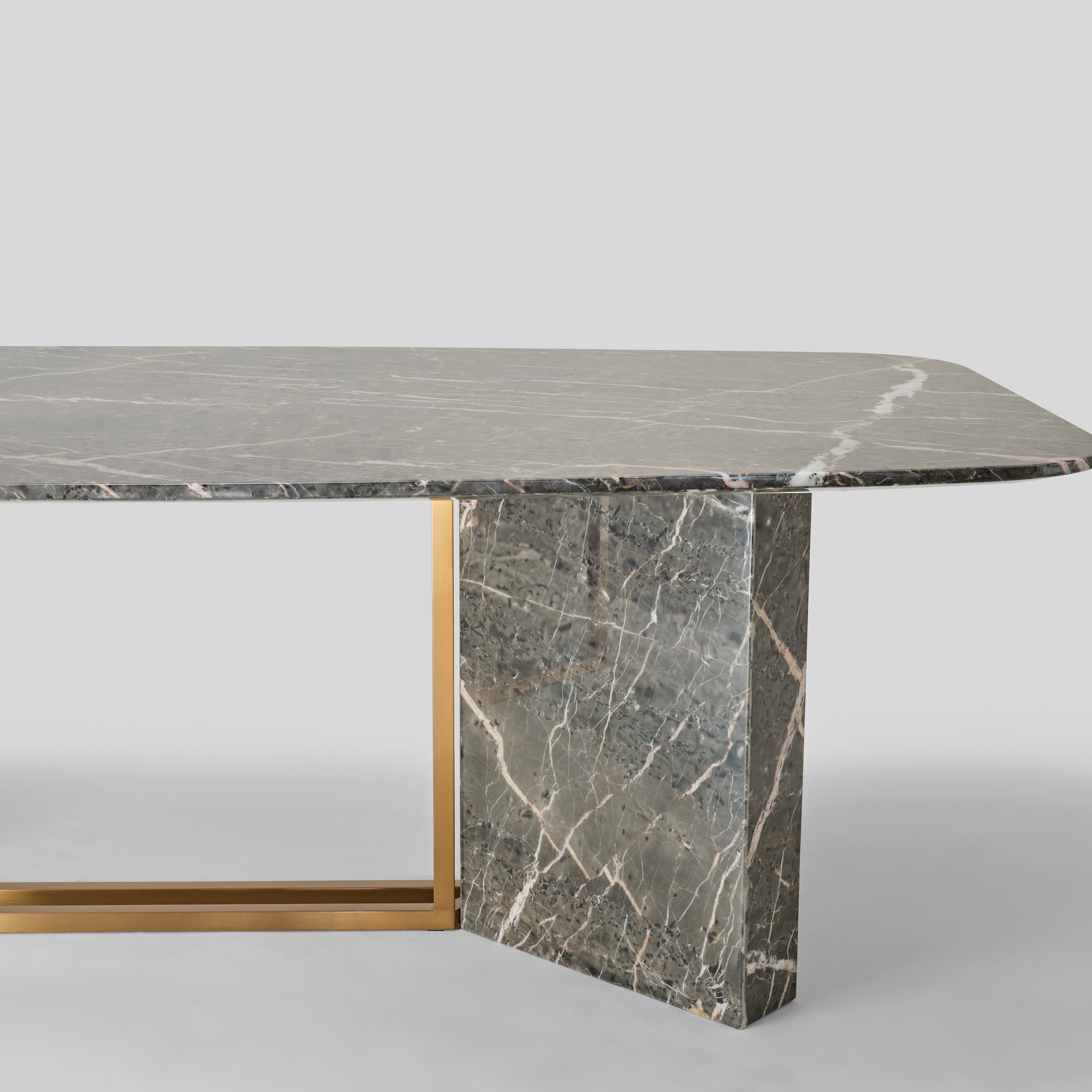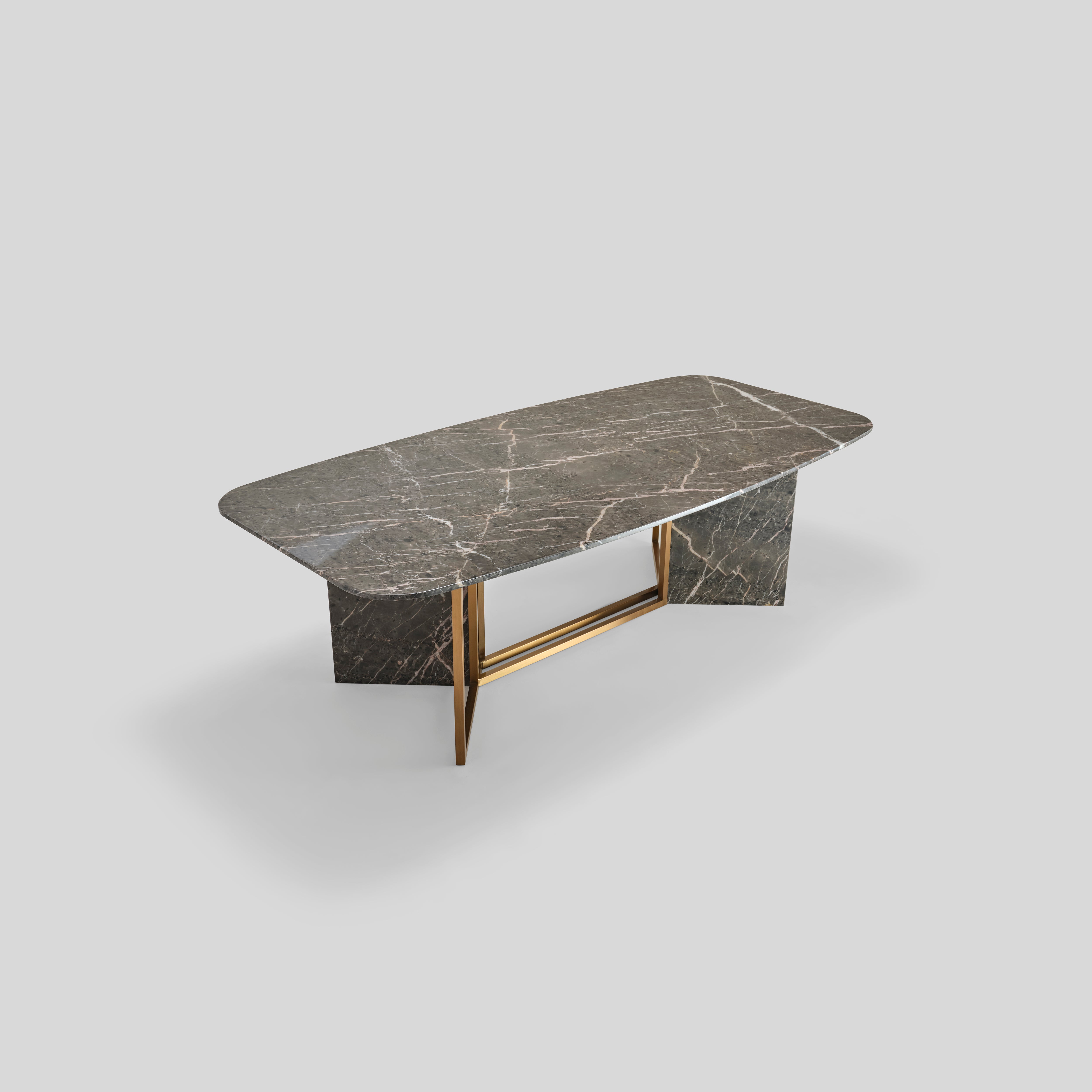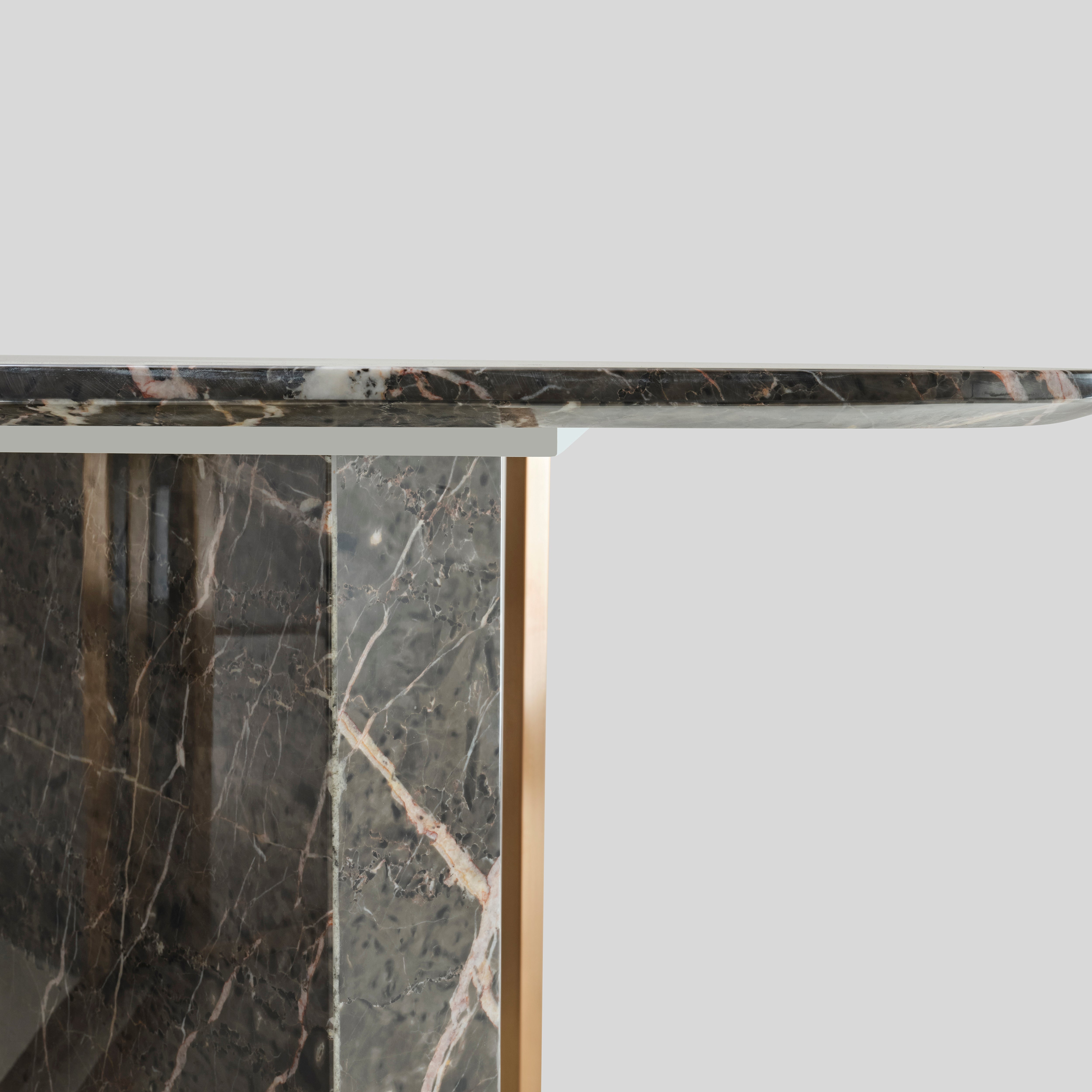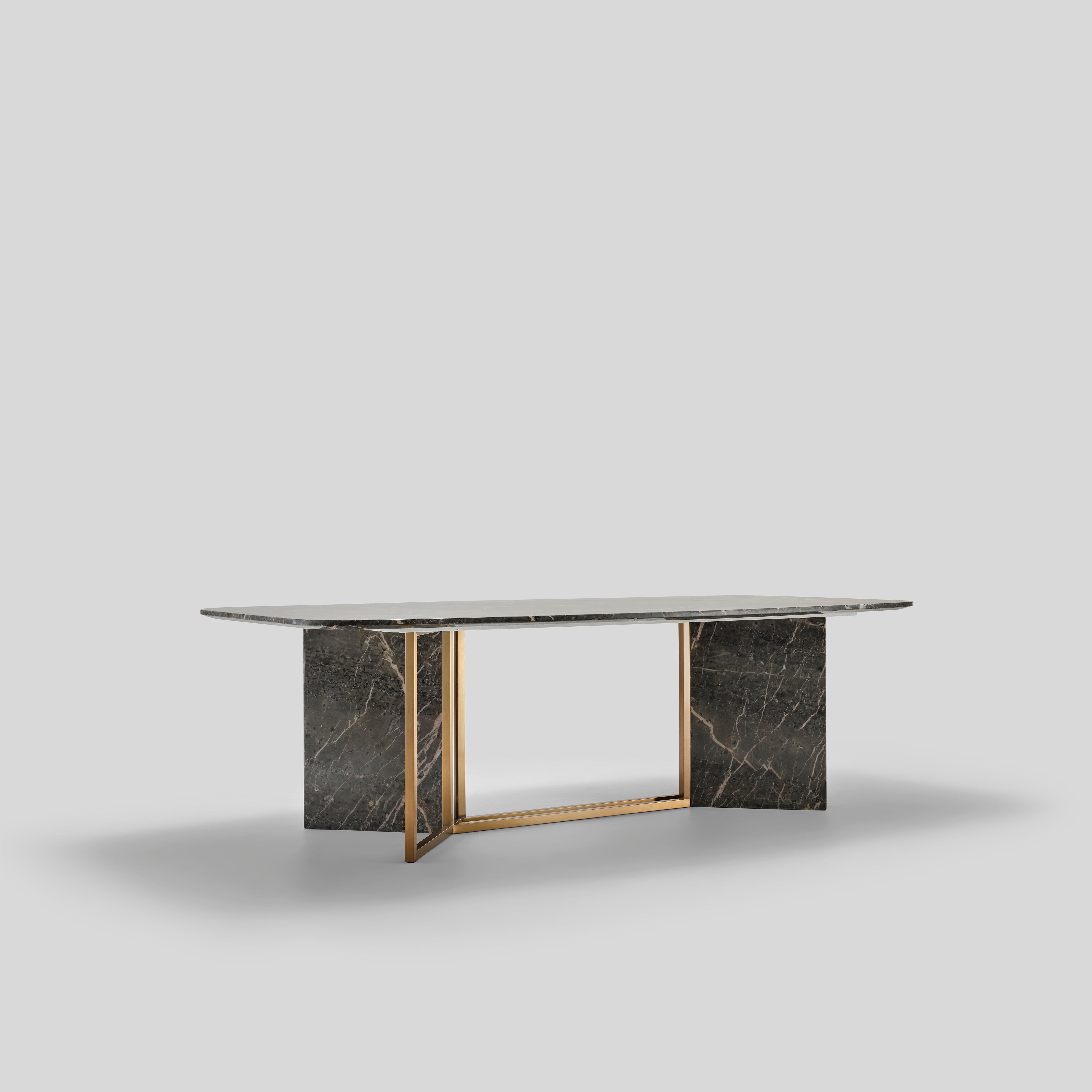Its form explores confident geometry, with angled supports creating an assured architectural presence beneath the generously shaped top. The composition feels intentional and contemporary, bringing sculptural balance and a calm, modern elegance that adapts effortlessly to varied interiors and personal design preferences.