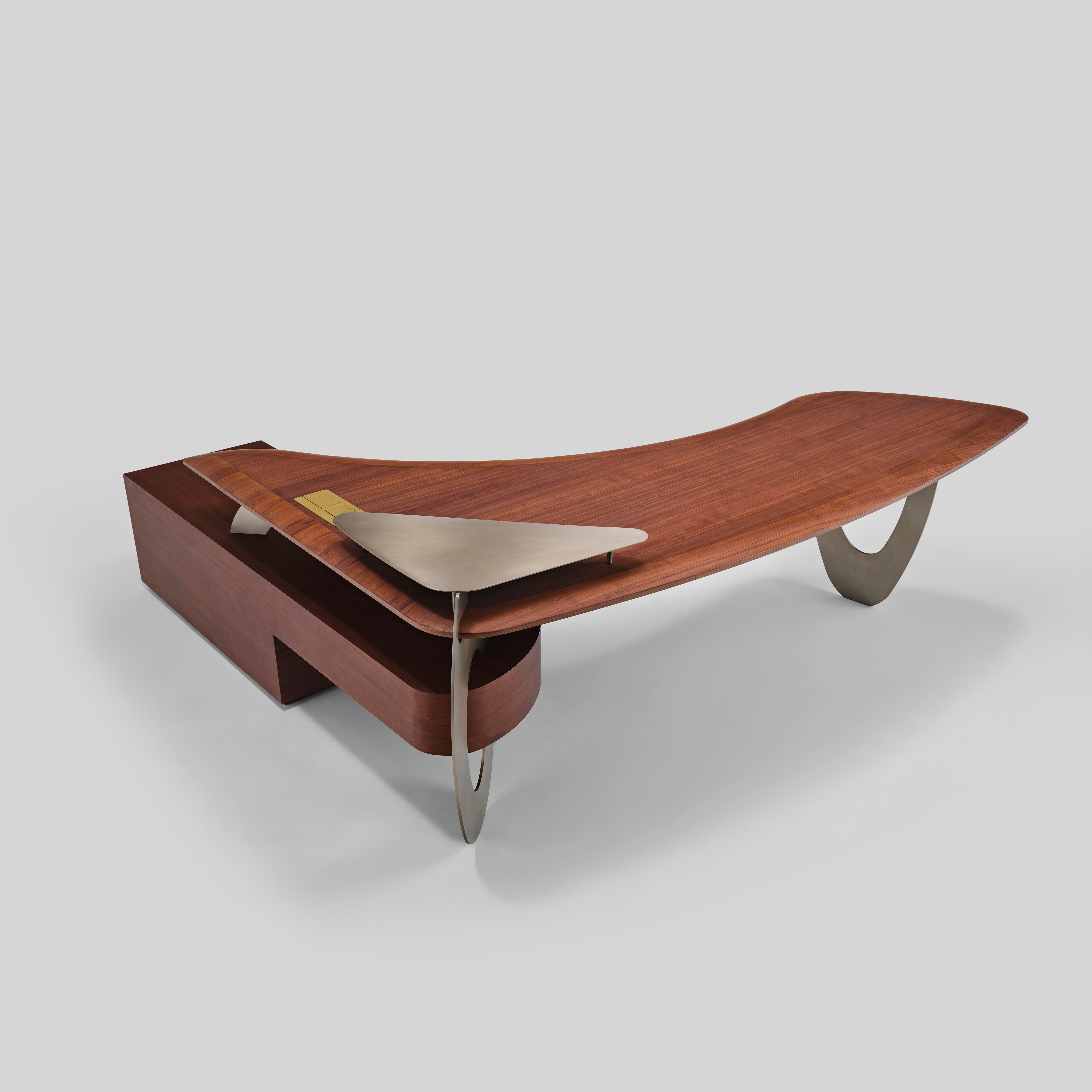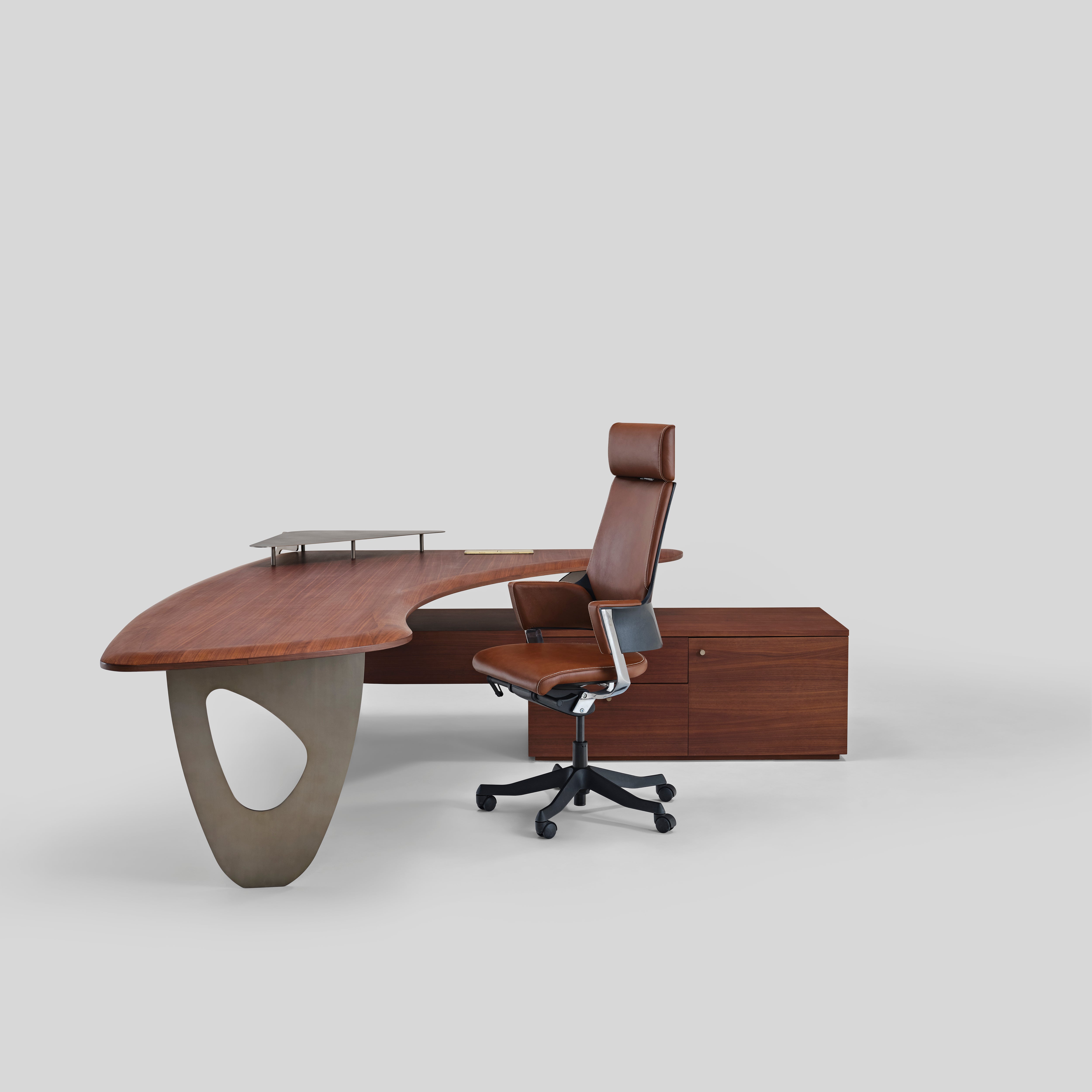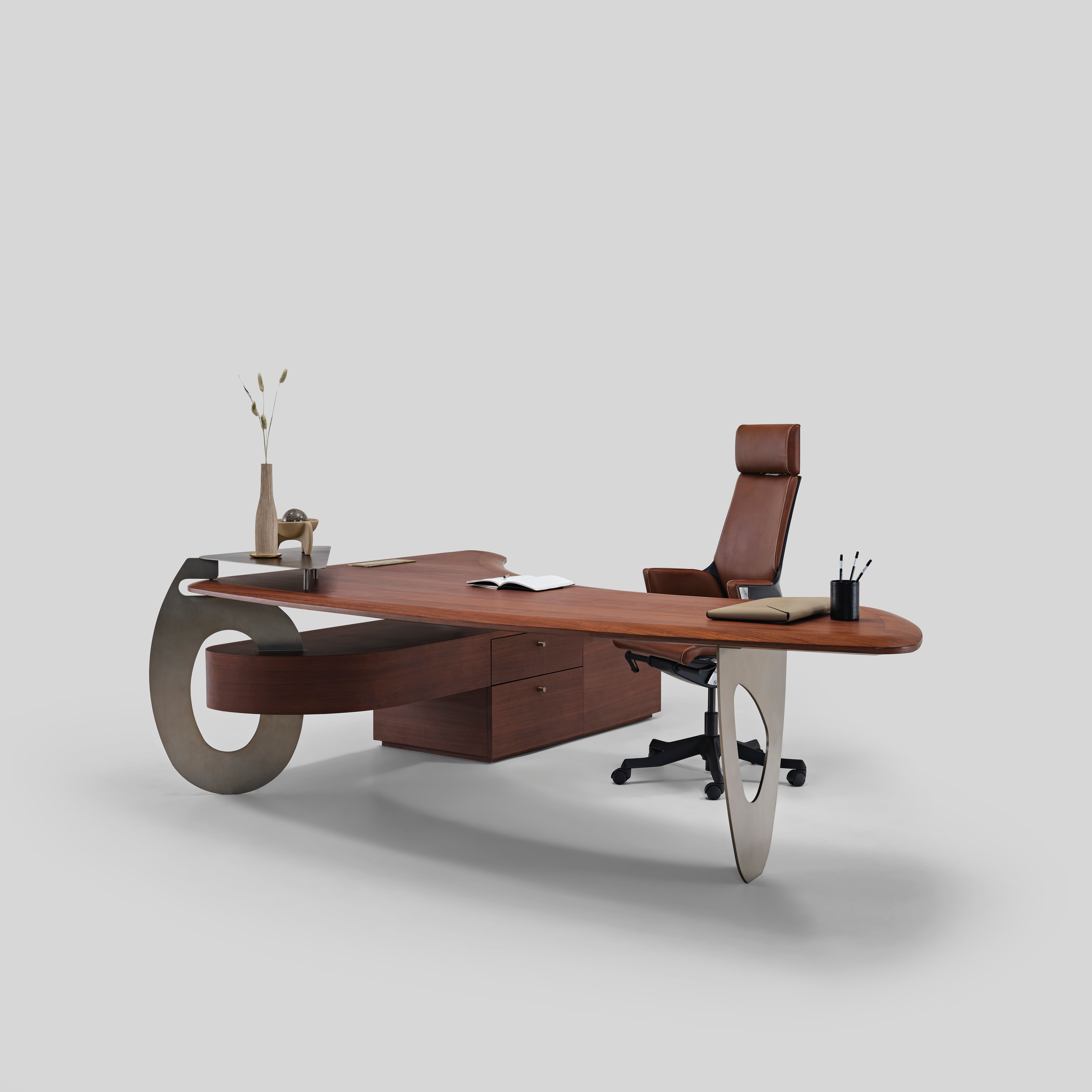 Platter carries an elegant sweep, shaping an office mood that feels quietly expressive. Its warm surface meets sculpted support with painterly ease, offering a space that encourages clarity, presence, and refined intention while adding a modern artistry to everyday work.