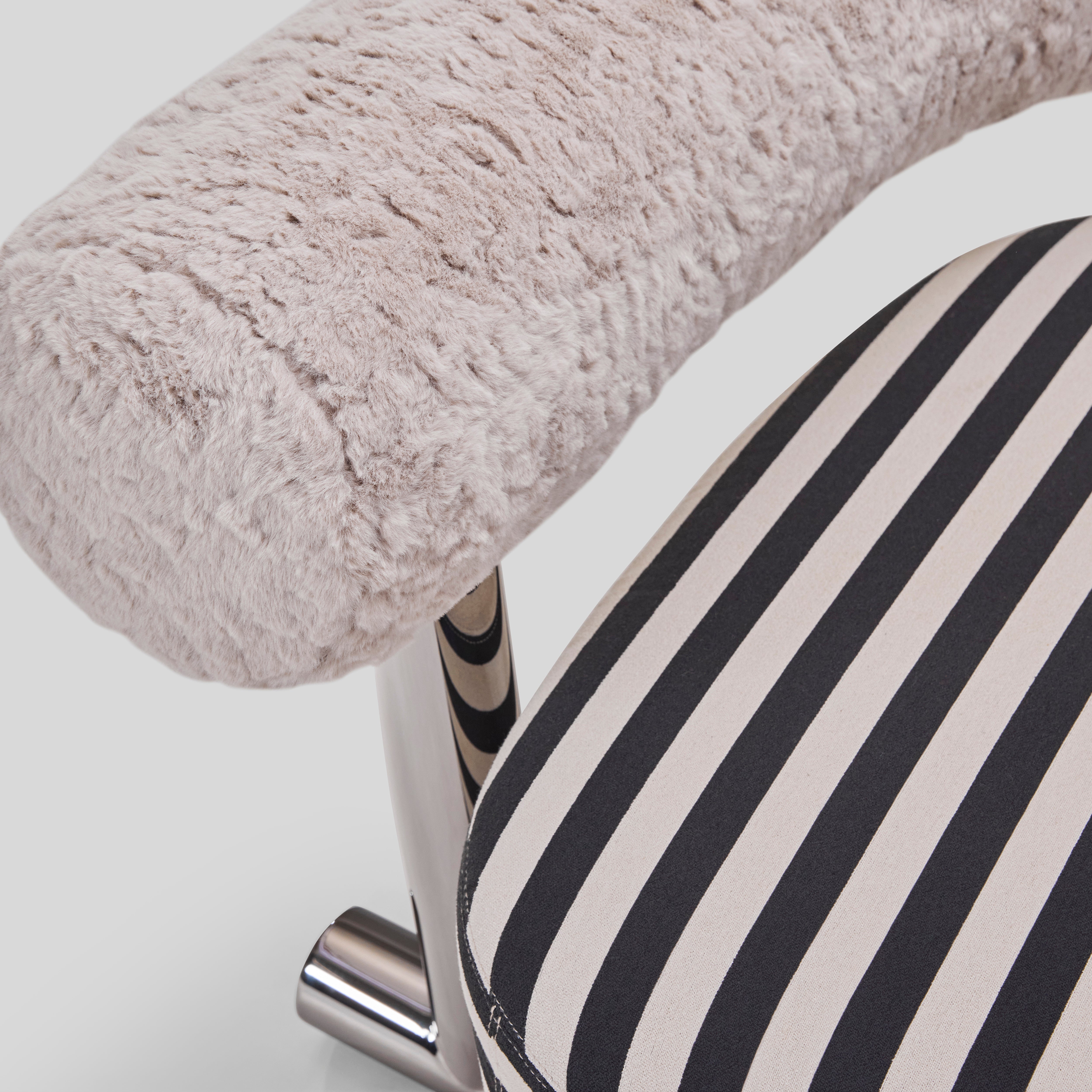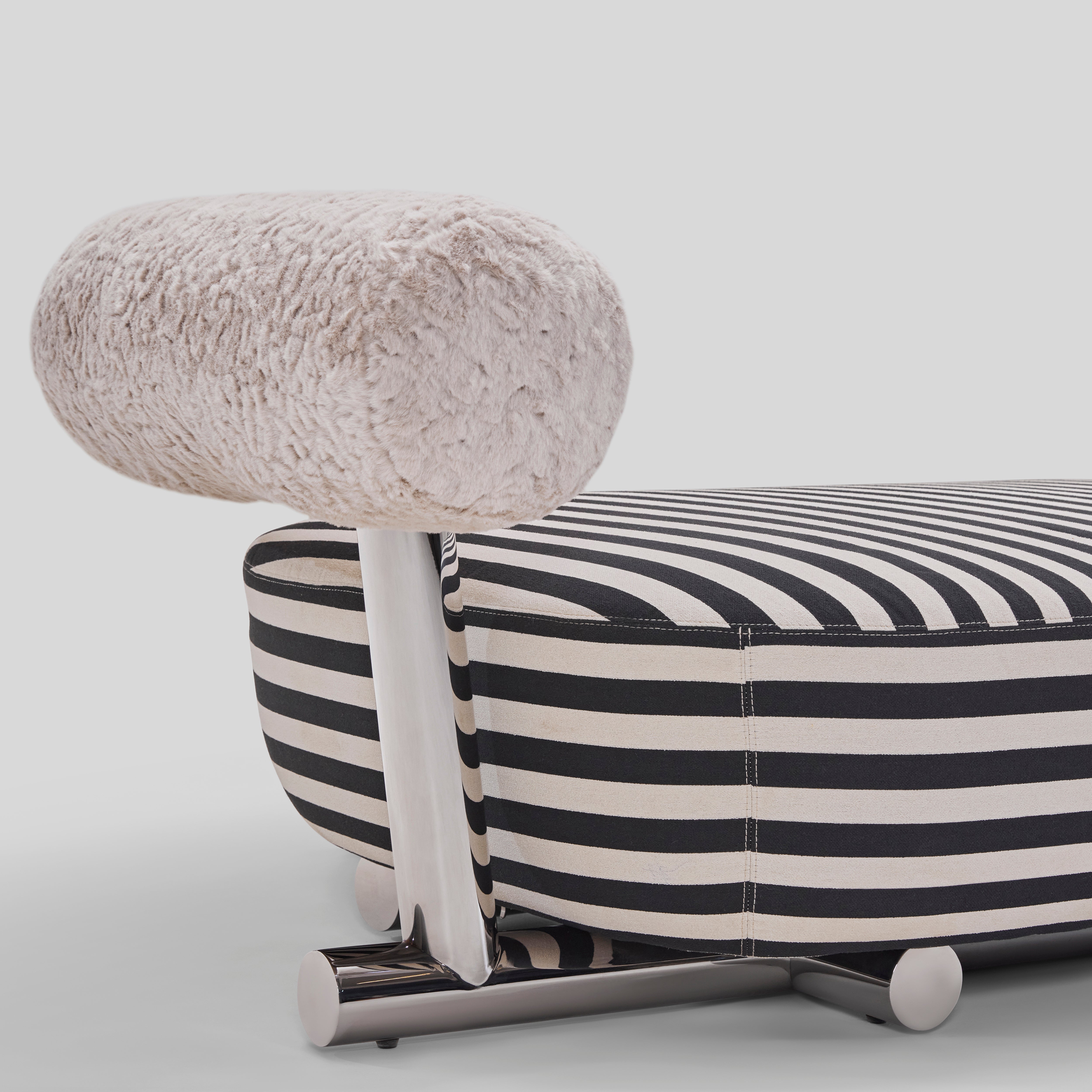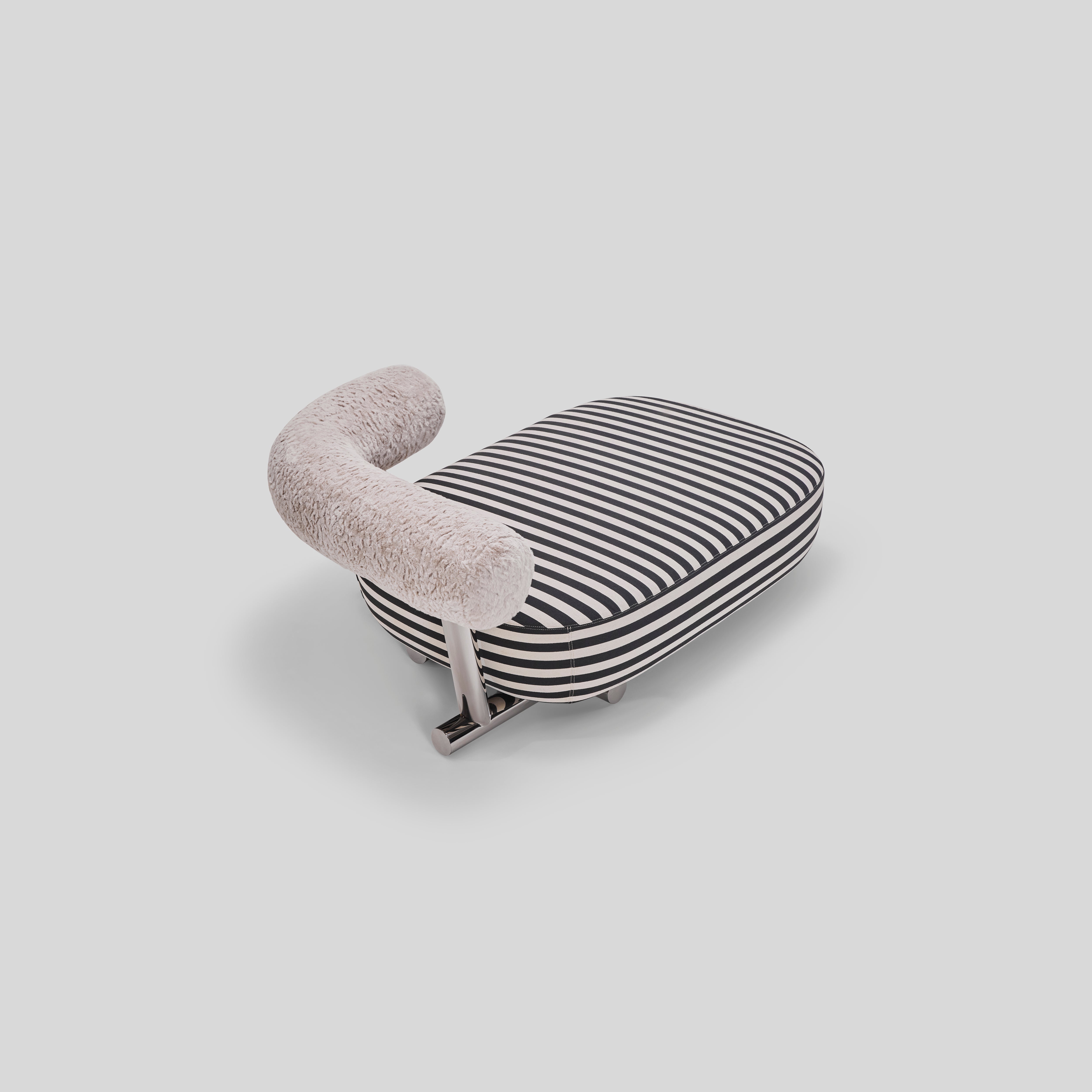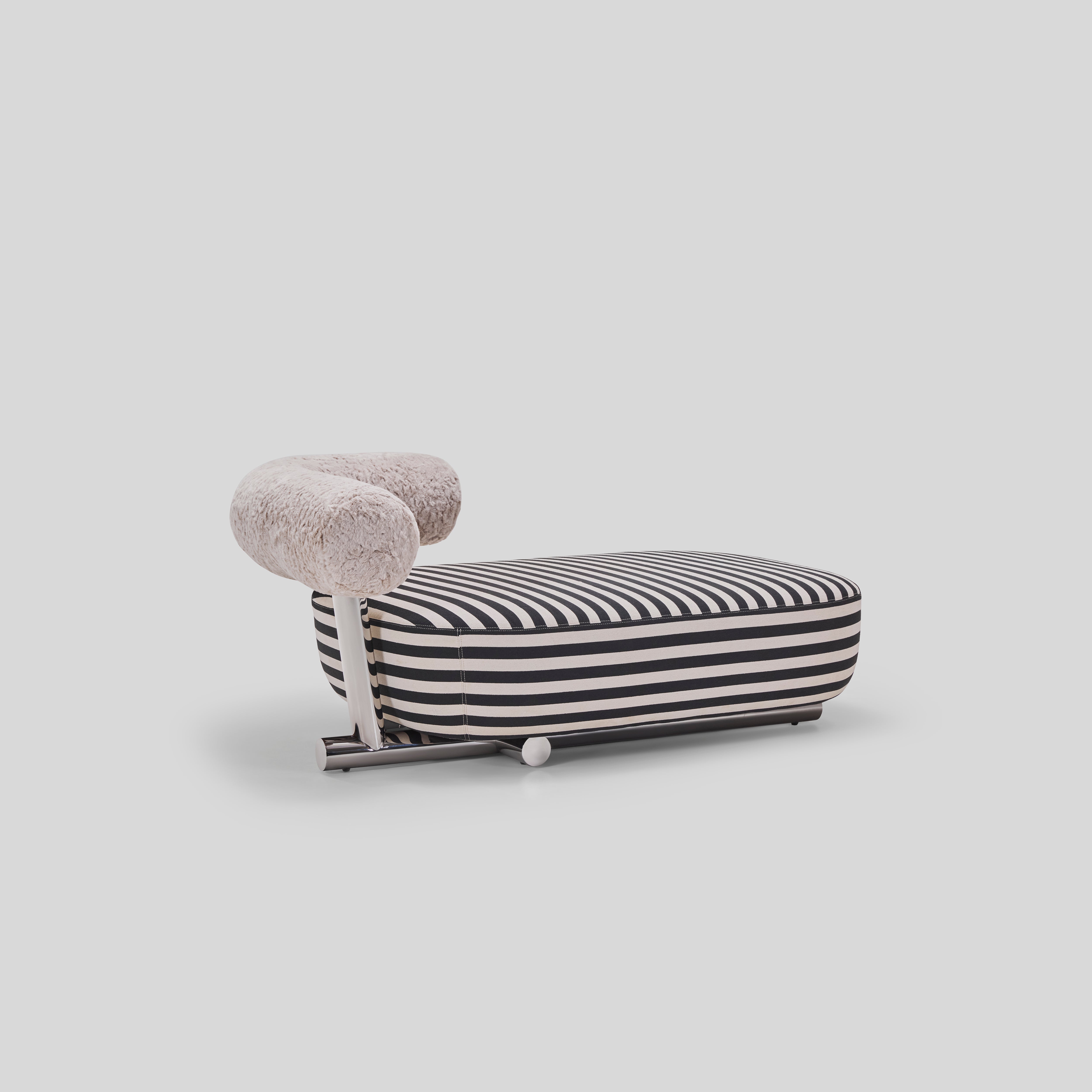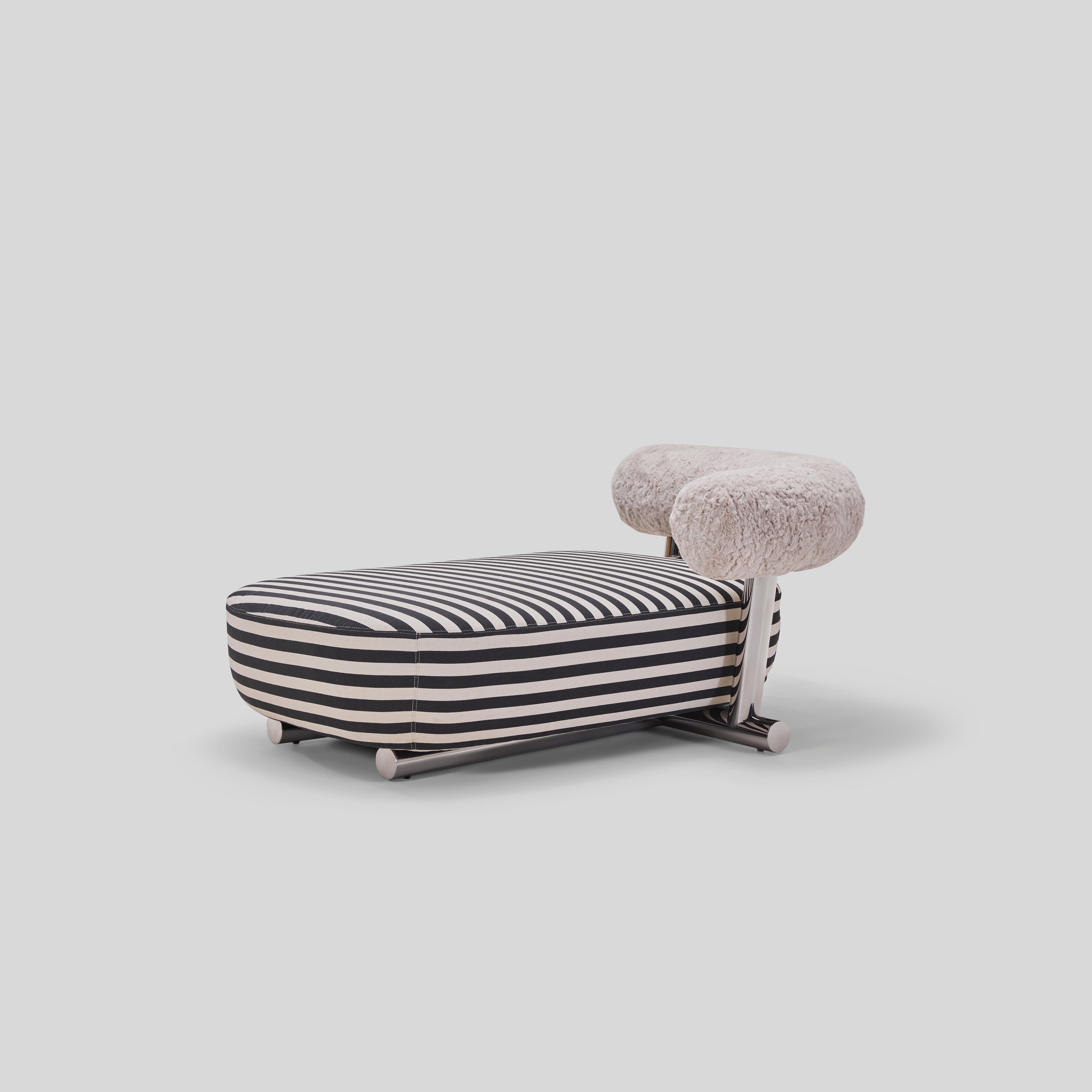 A playful elegance moves through its striped form, lending the lounger a self-assured, fashion-led cadence. Plush backrests introduce a soft, tactile contrast, creating a piece that feels artful, indulgently relaxed and effortlessly charismatic.The kind of design that captures attention without ever asking for it.