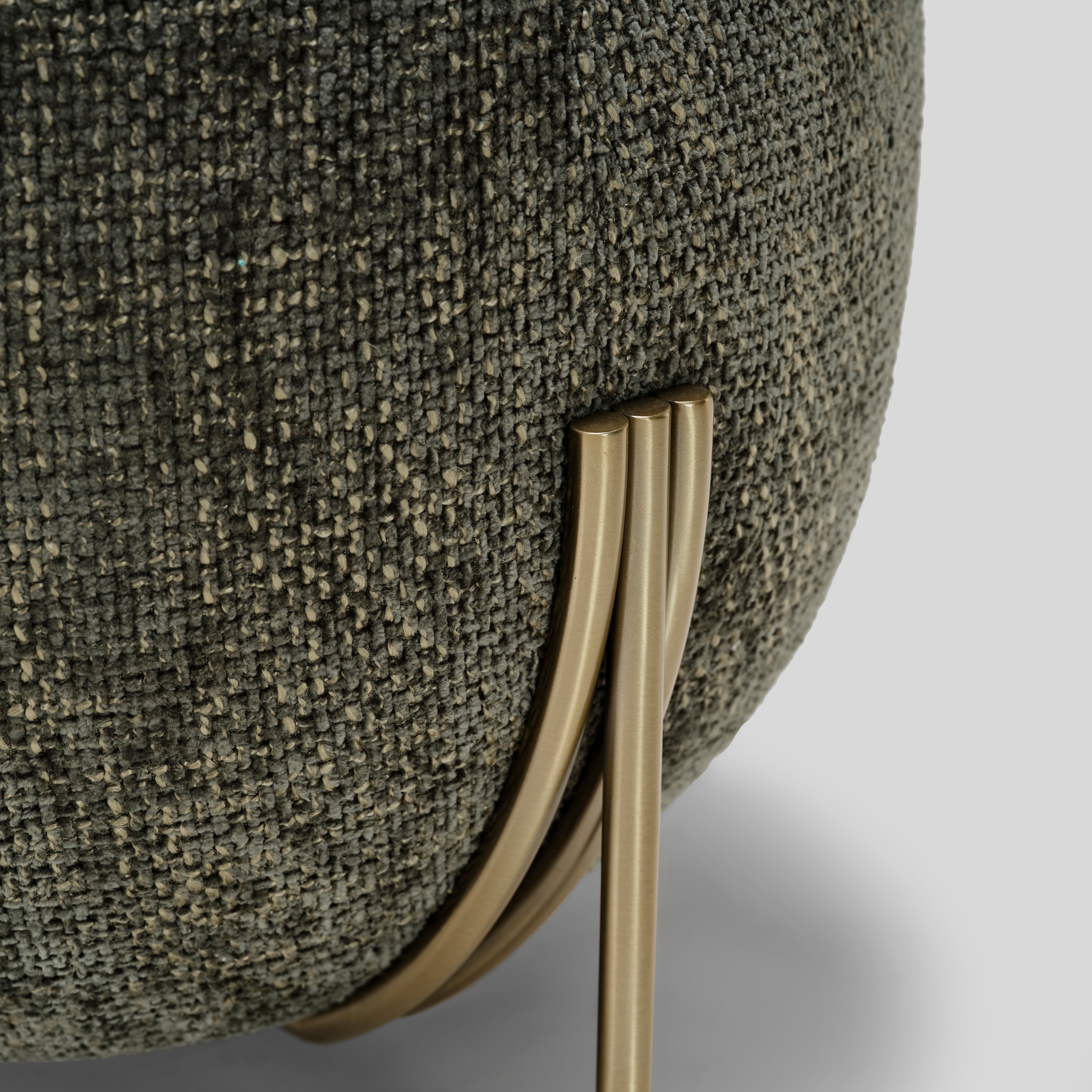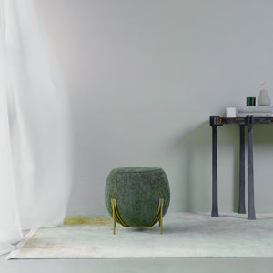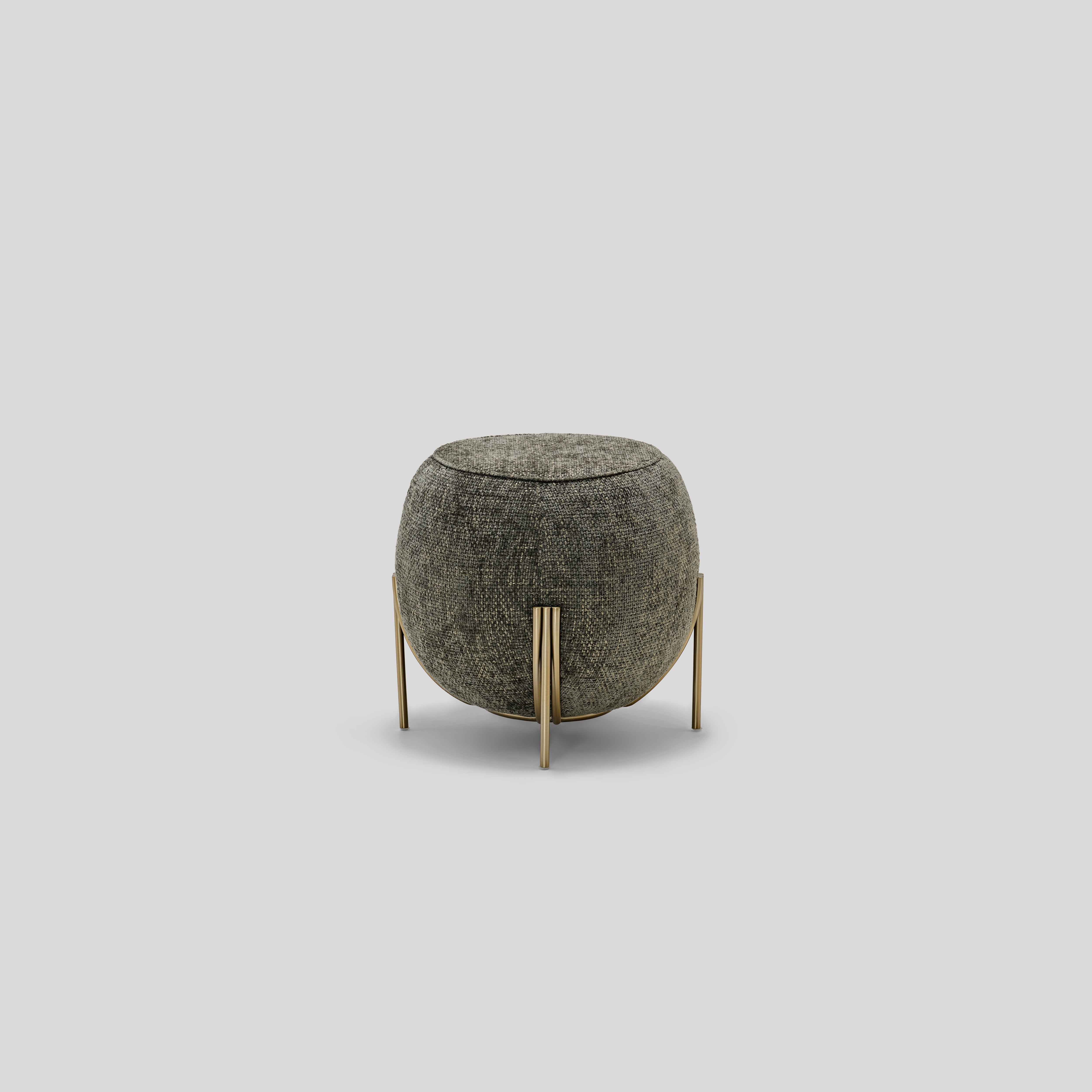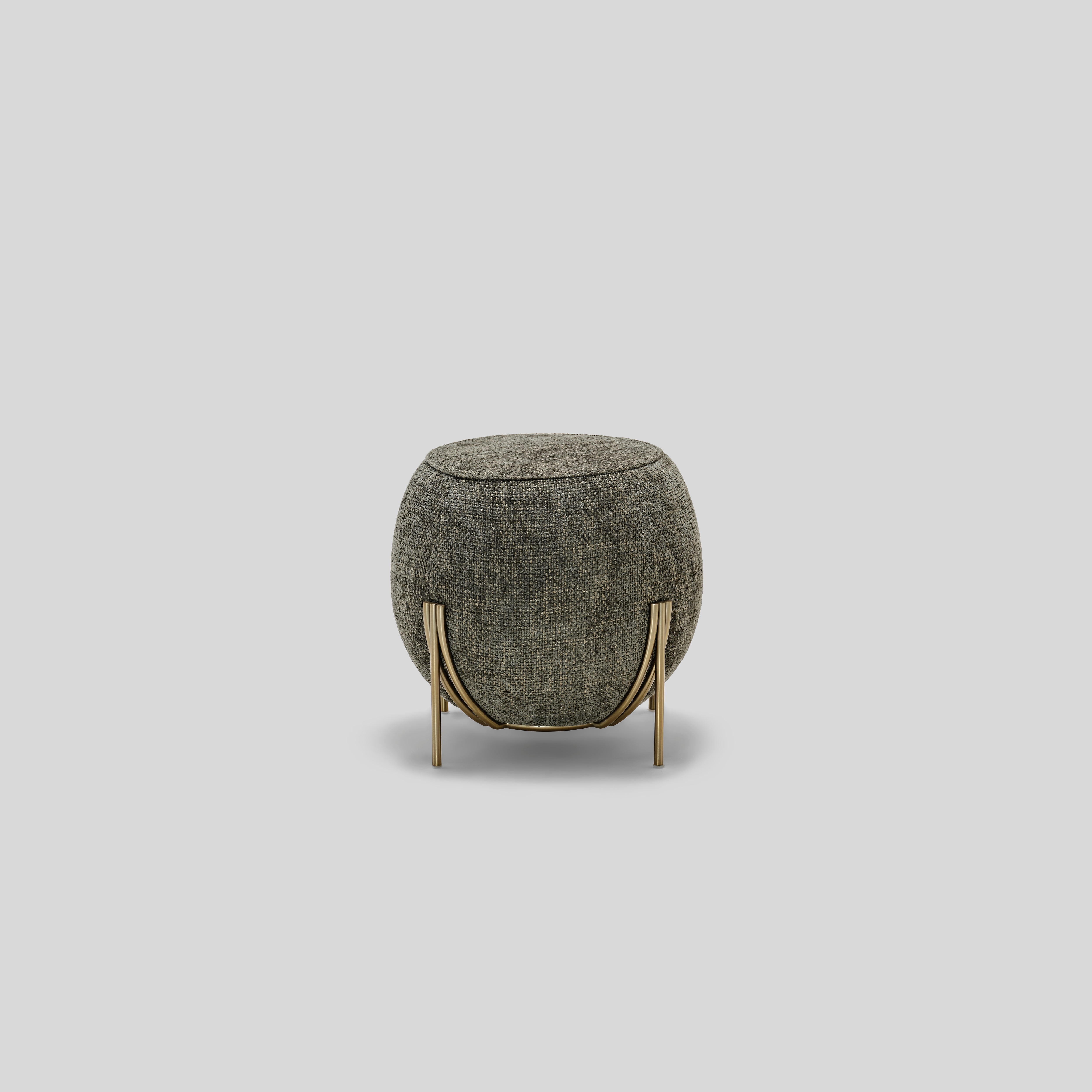 Geo pouf brings a sculpted, jewel-like presence, its rounded form held with quiet elegance by refined metal accents. It feels thoughtfully curated, offering a touch of contemporary polish and expressive charm, settling into a room with the assurance of a beautifully crafted object.