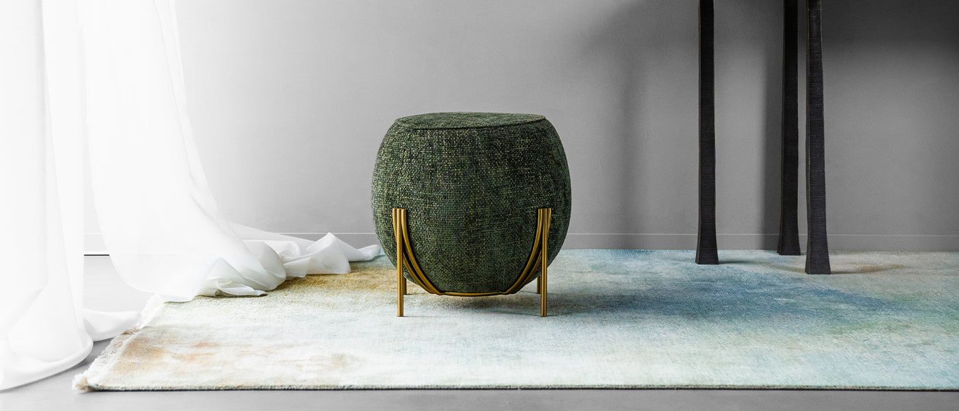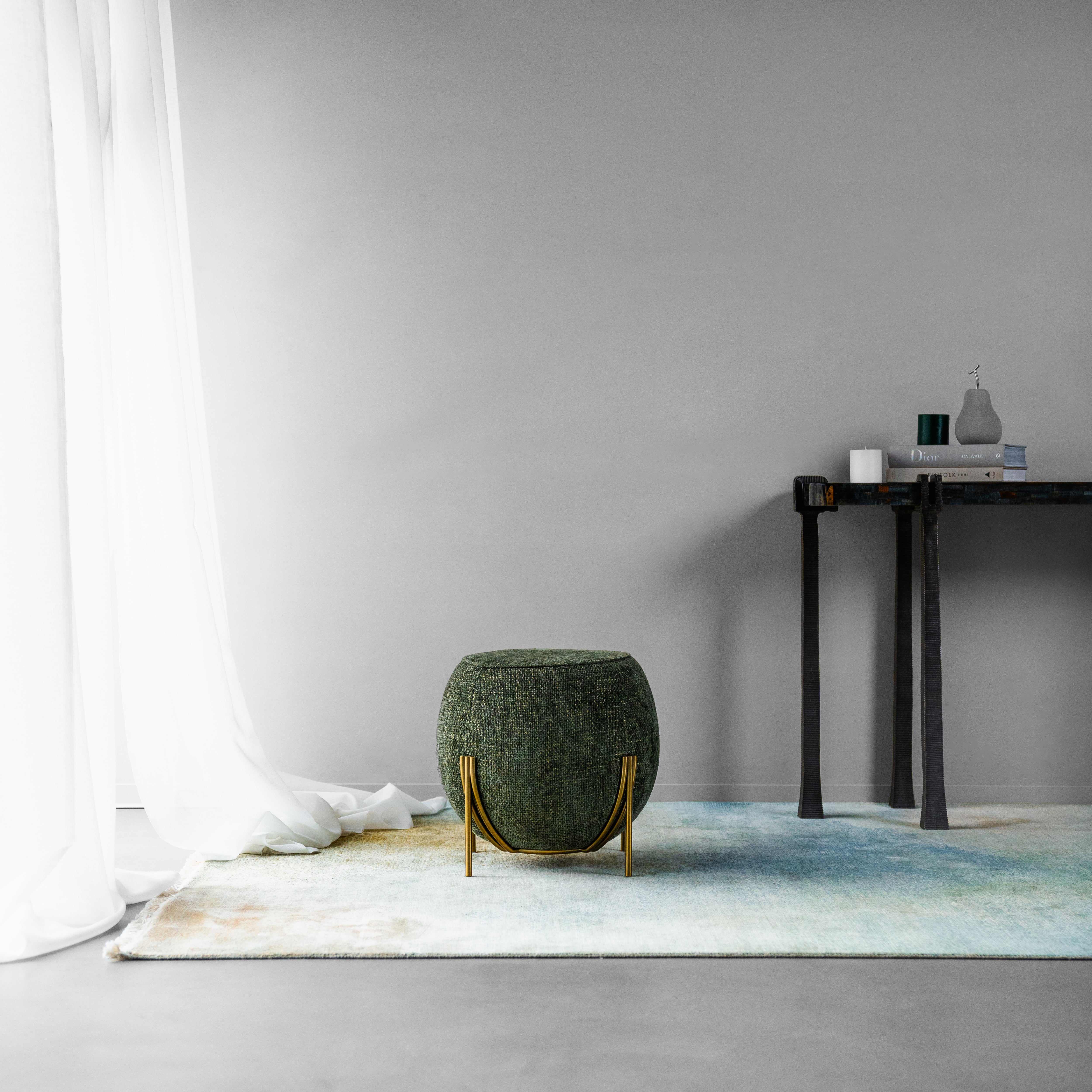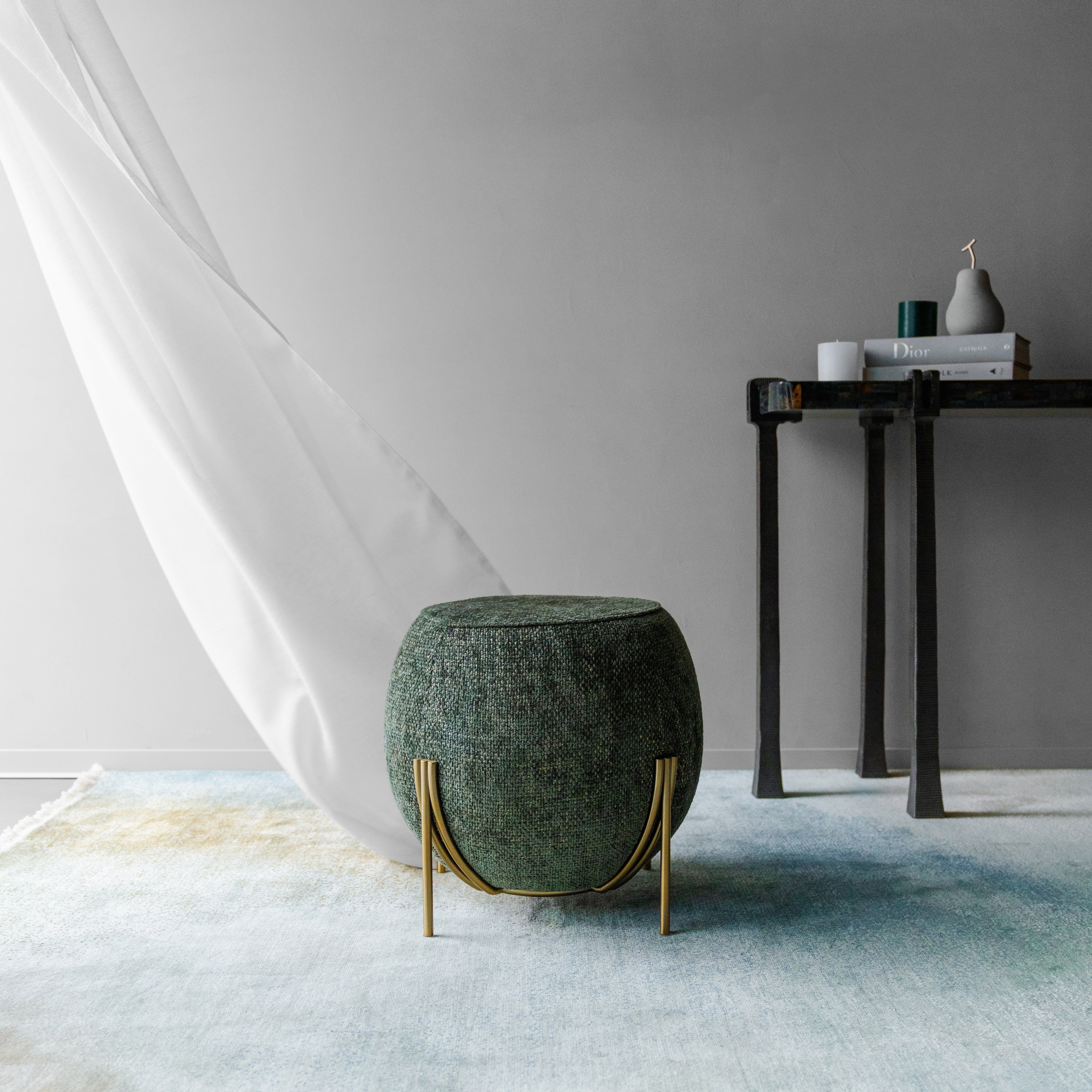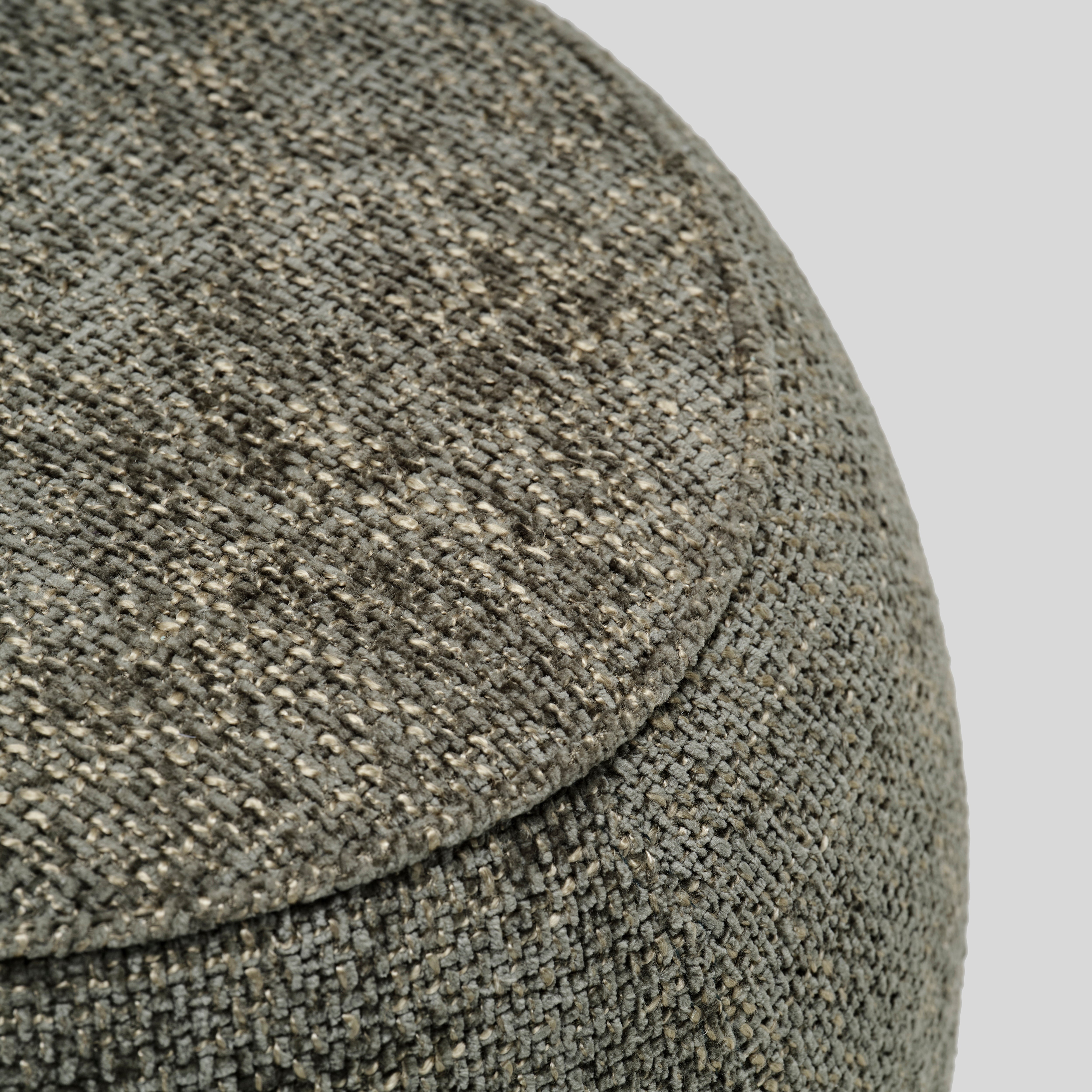 Geo pouf brings a sculpted, jewel-like presence, its rounded form held with quiet elegance by refined metal accents. It feels thoughtfully curated, offering a touch of contemporary polish and expressive charm, settling into a room with the assurance of a beautifully crafted object.