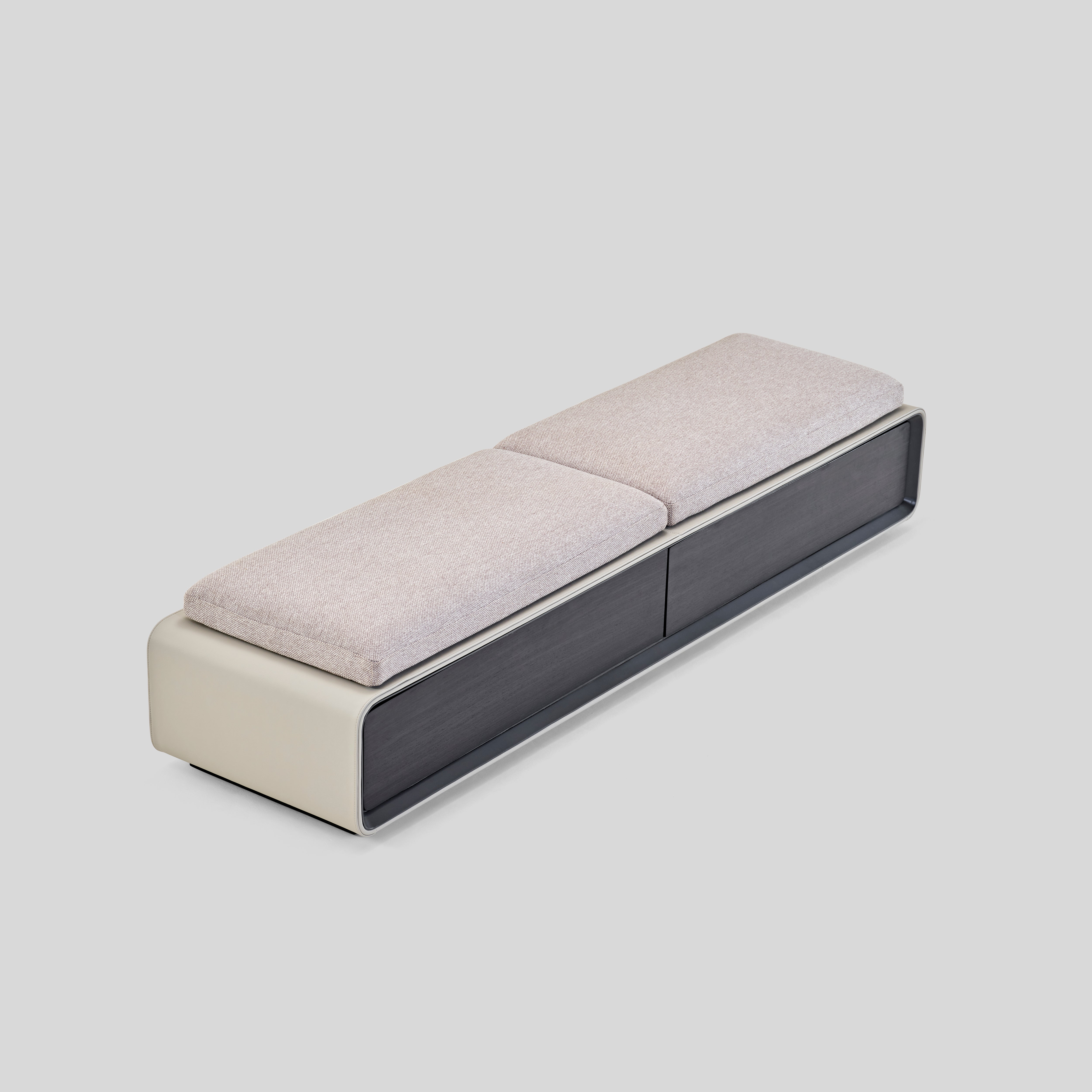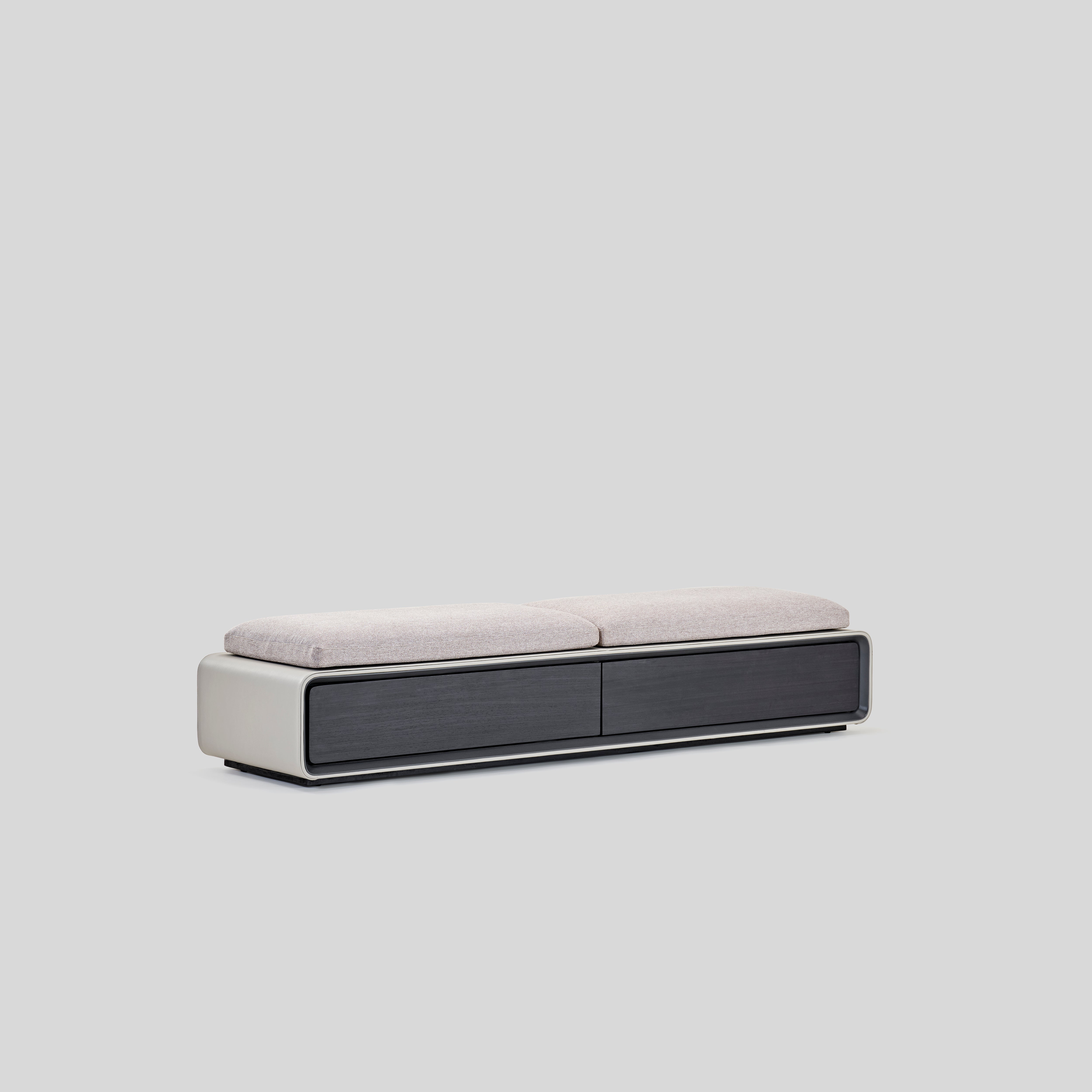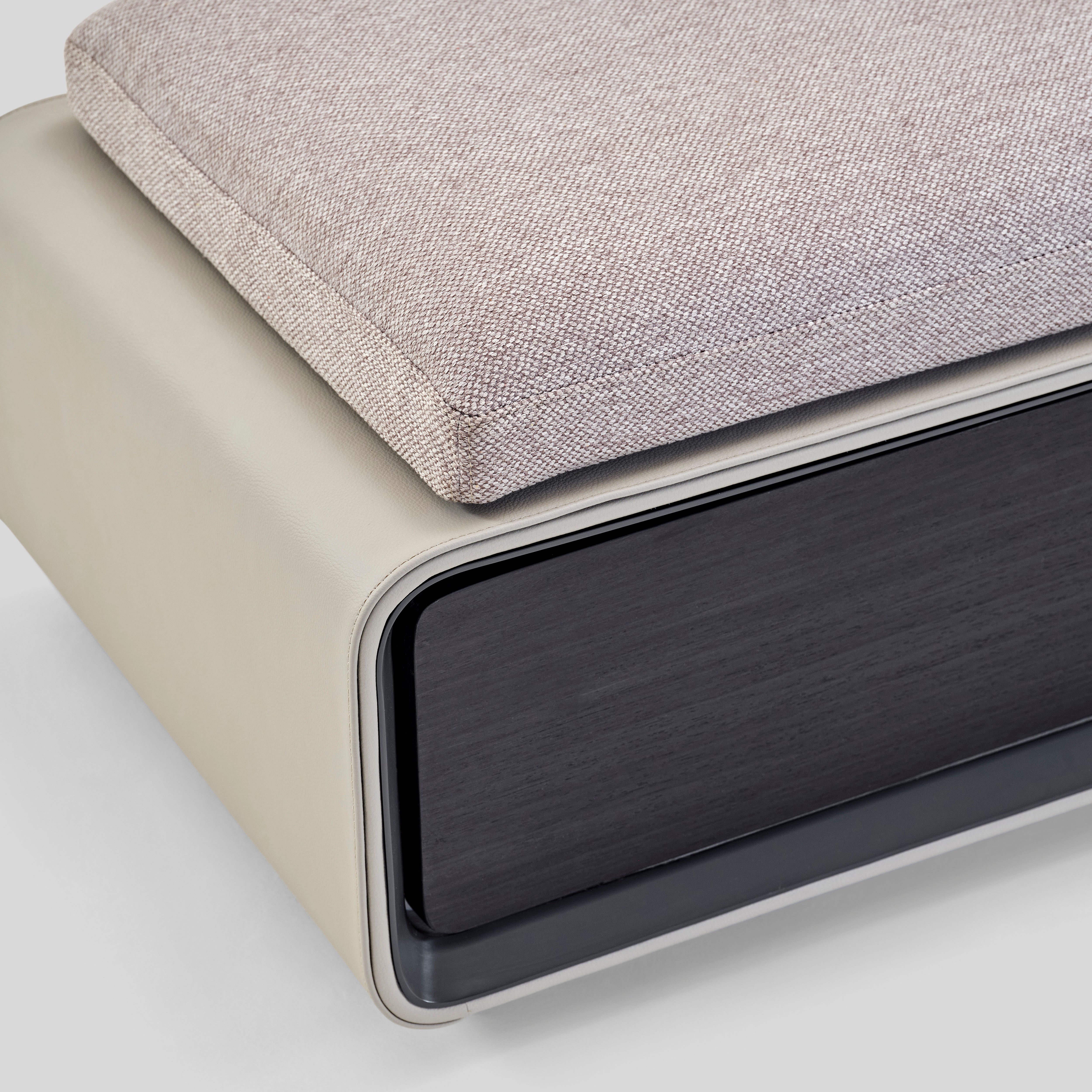 Nicola blends refined form with thoughtful utility, pairing its dual cushions with a smoothly integrated drawer for everyday essentials. The rounded frame keeps the piece visually light, while its practical ease adds a quiet charm that suits bedrooms, dressing areas or relaxed lounge.