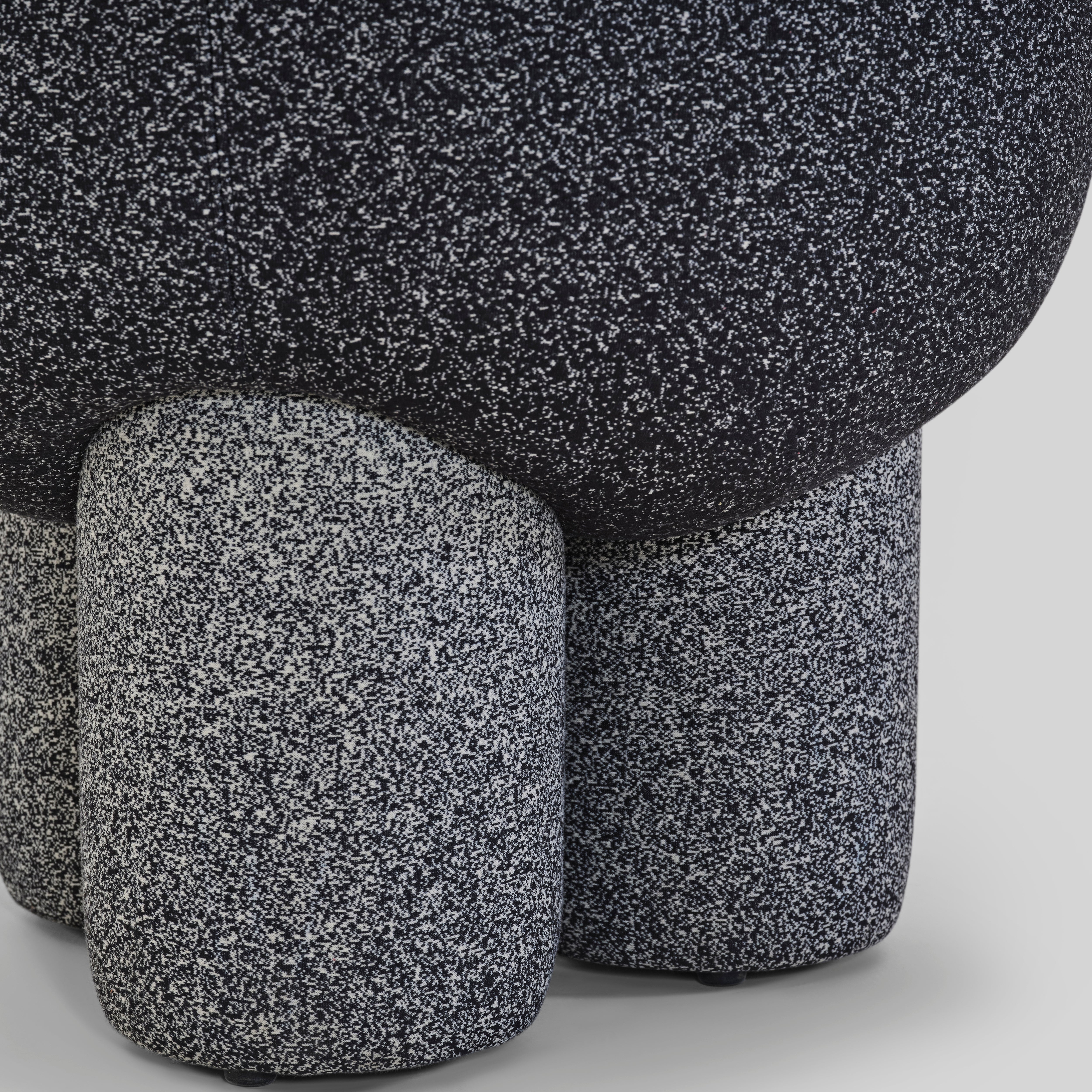 This pouf has a playful, sculptural presence, carrying the intriguing simplicity of a finely carved keepsake. Its tonal blend feels intentionally curated, giving the piece a contemporary charm that’s both understated and expressive, settling into a space with confident, design-minded personality.