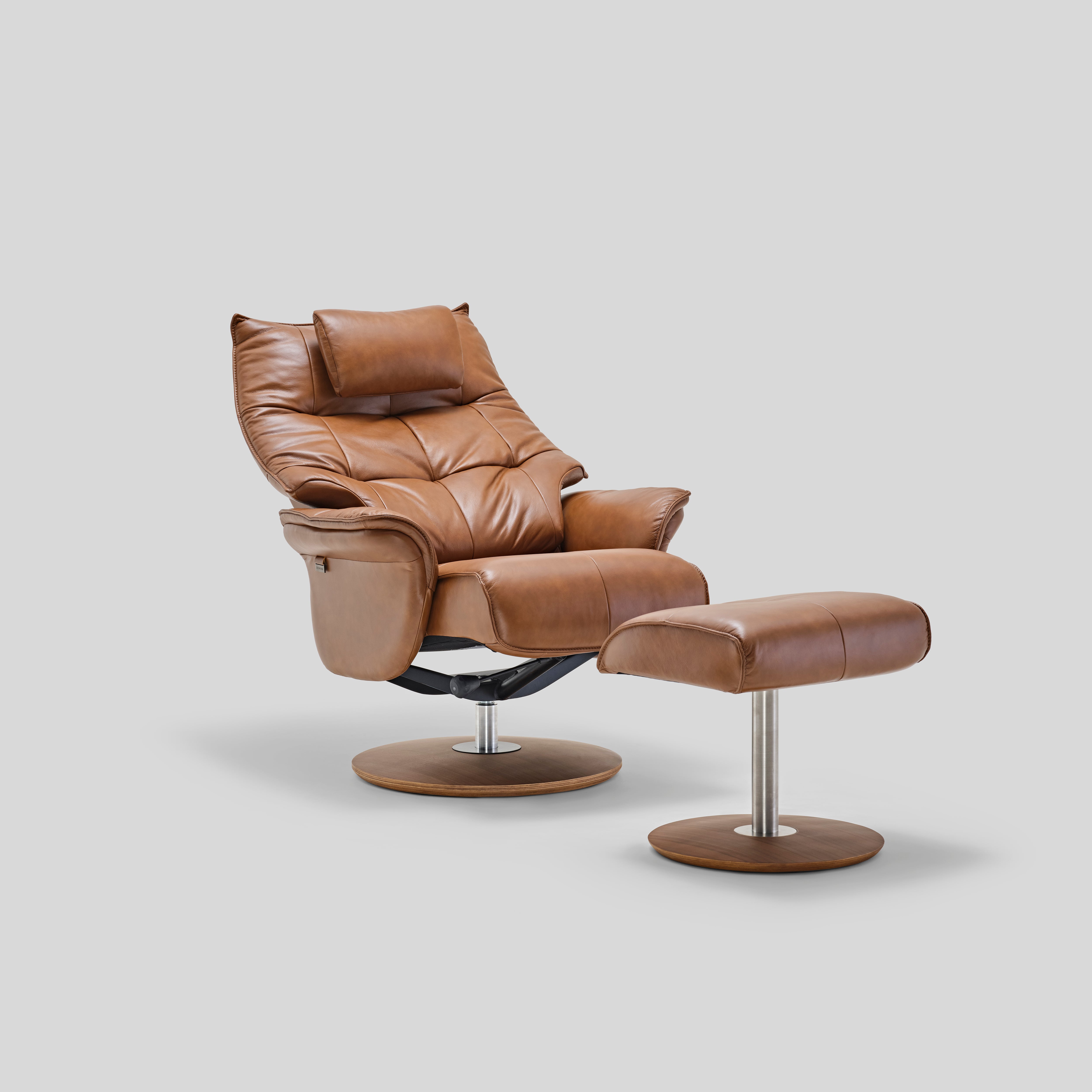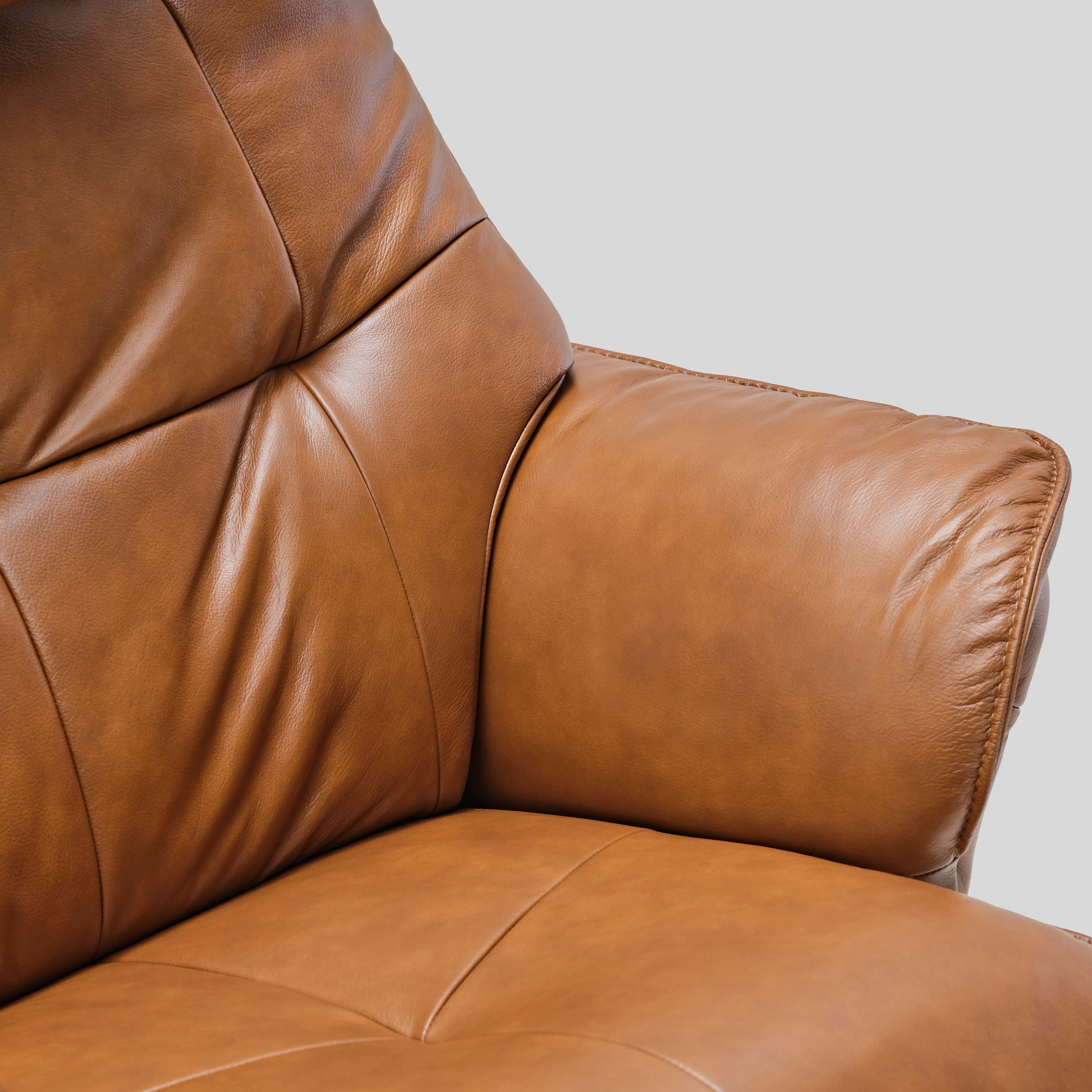 This recliner pairs ergonomic ease with an understated luxury that feels quietly indulgent. Its mindful craftsmanship nods to sustainability, while the warm leather carries a welcoming richness. There’s a sly charm in how readily it claims you, creating a modern refuge with thoughtful presence.