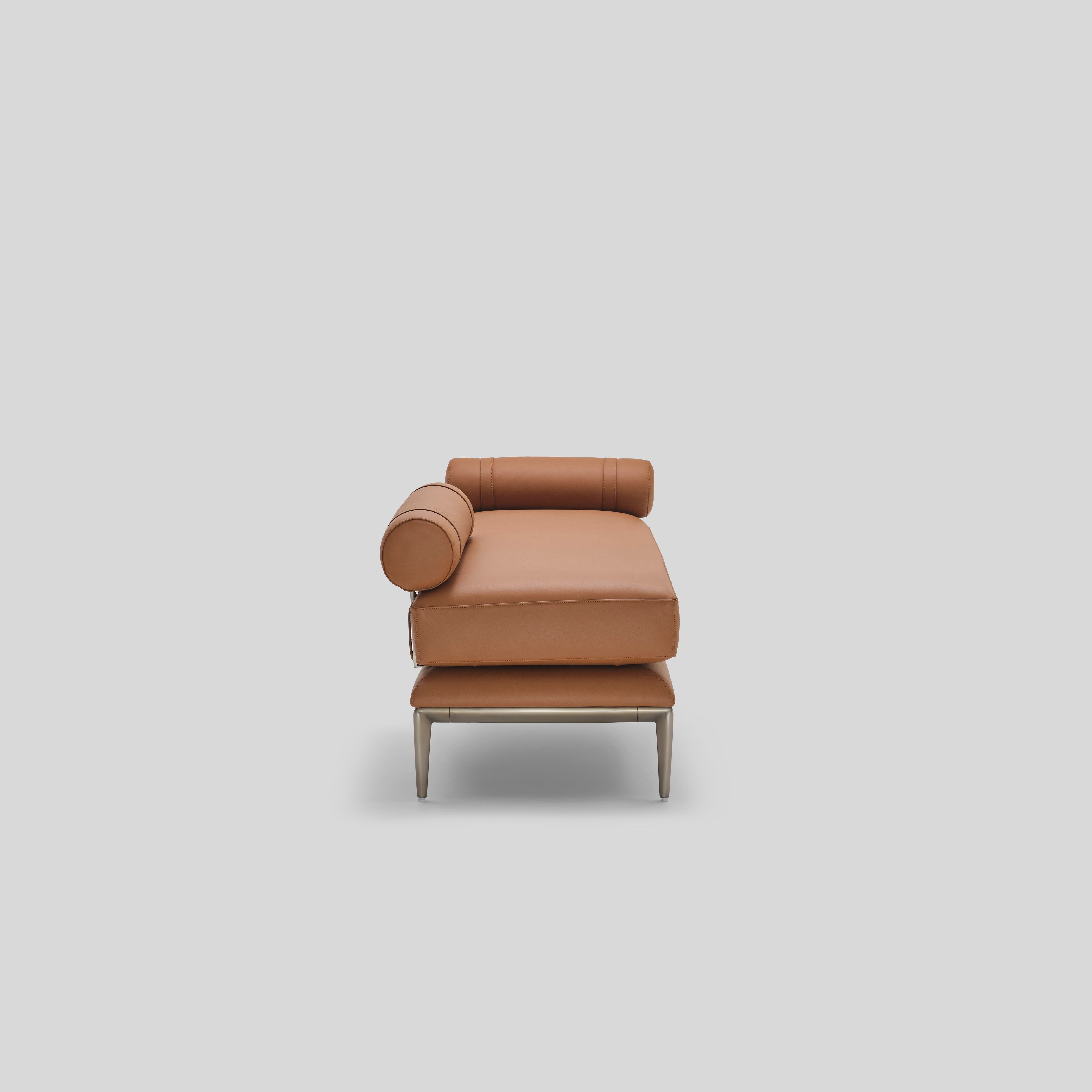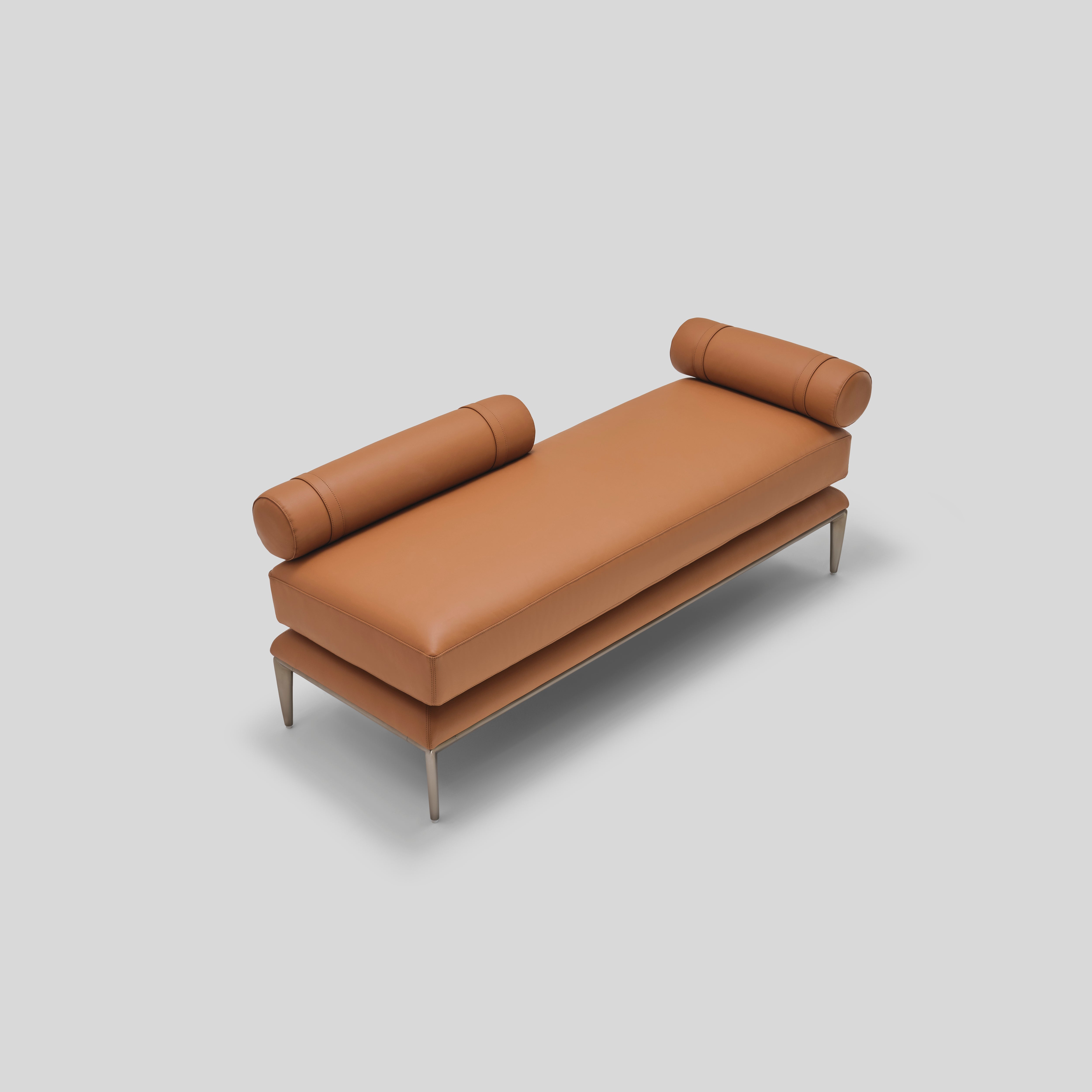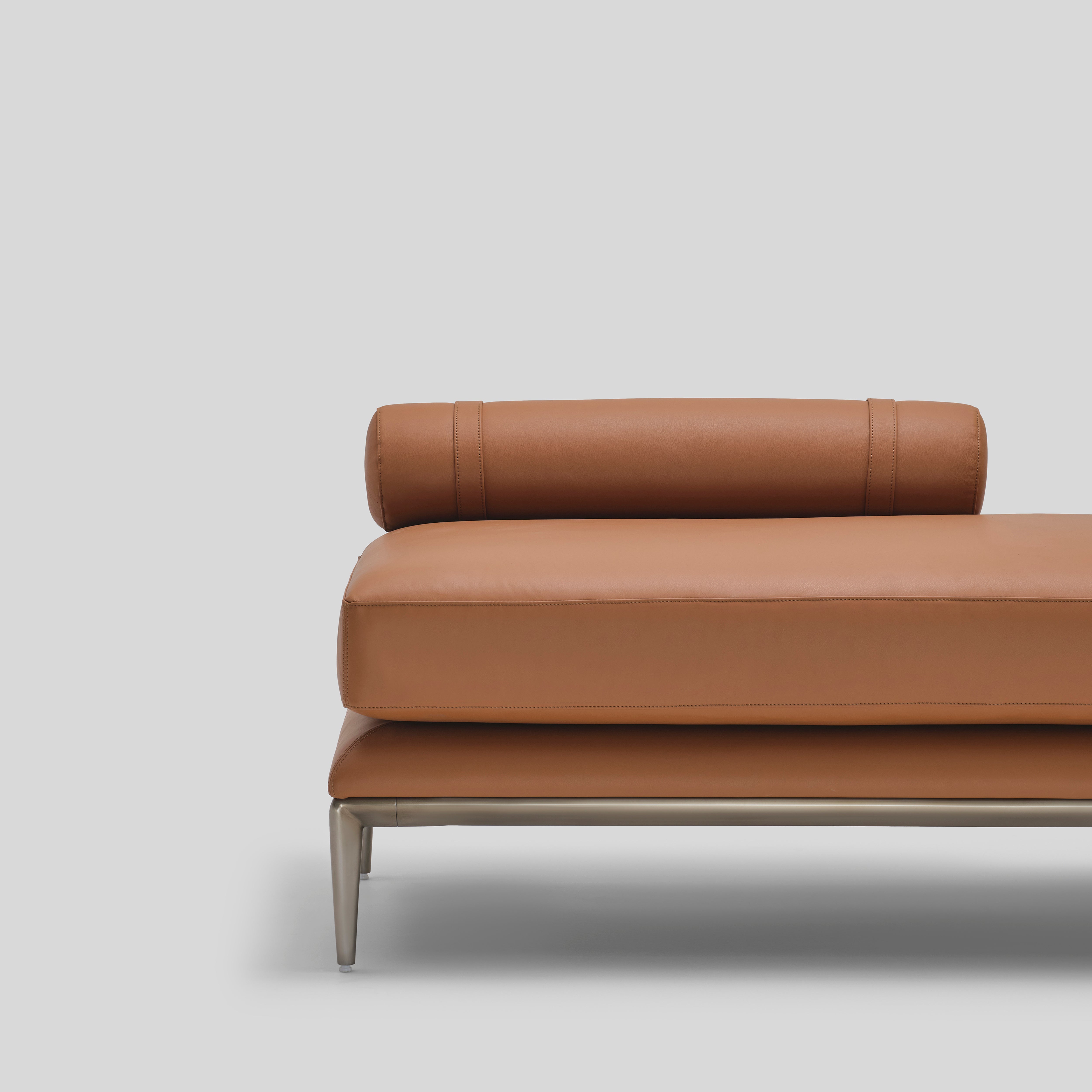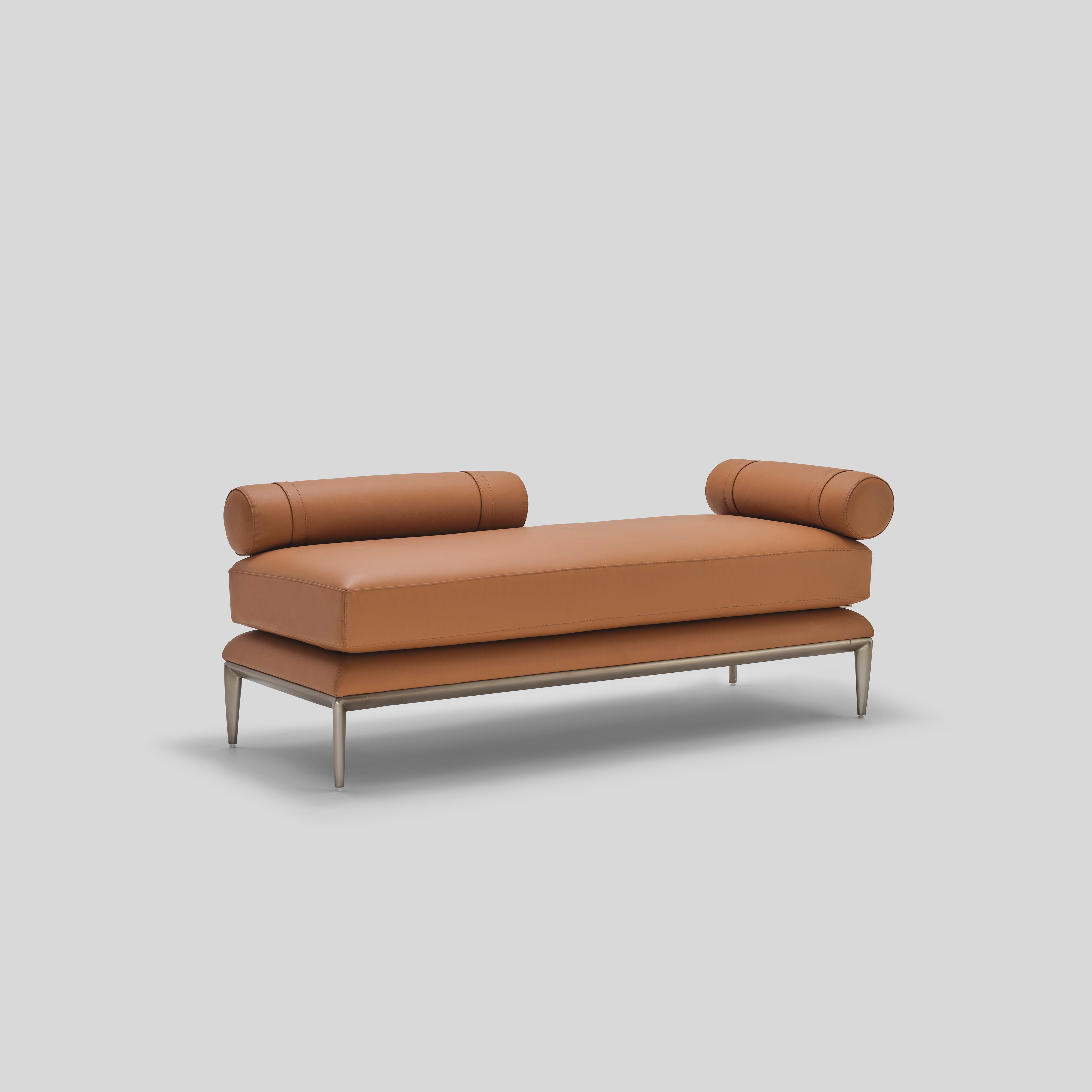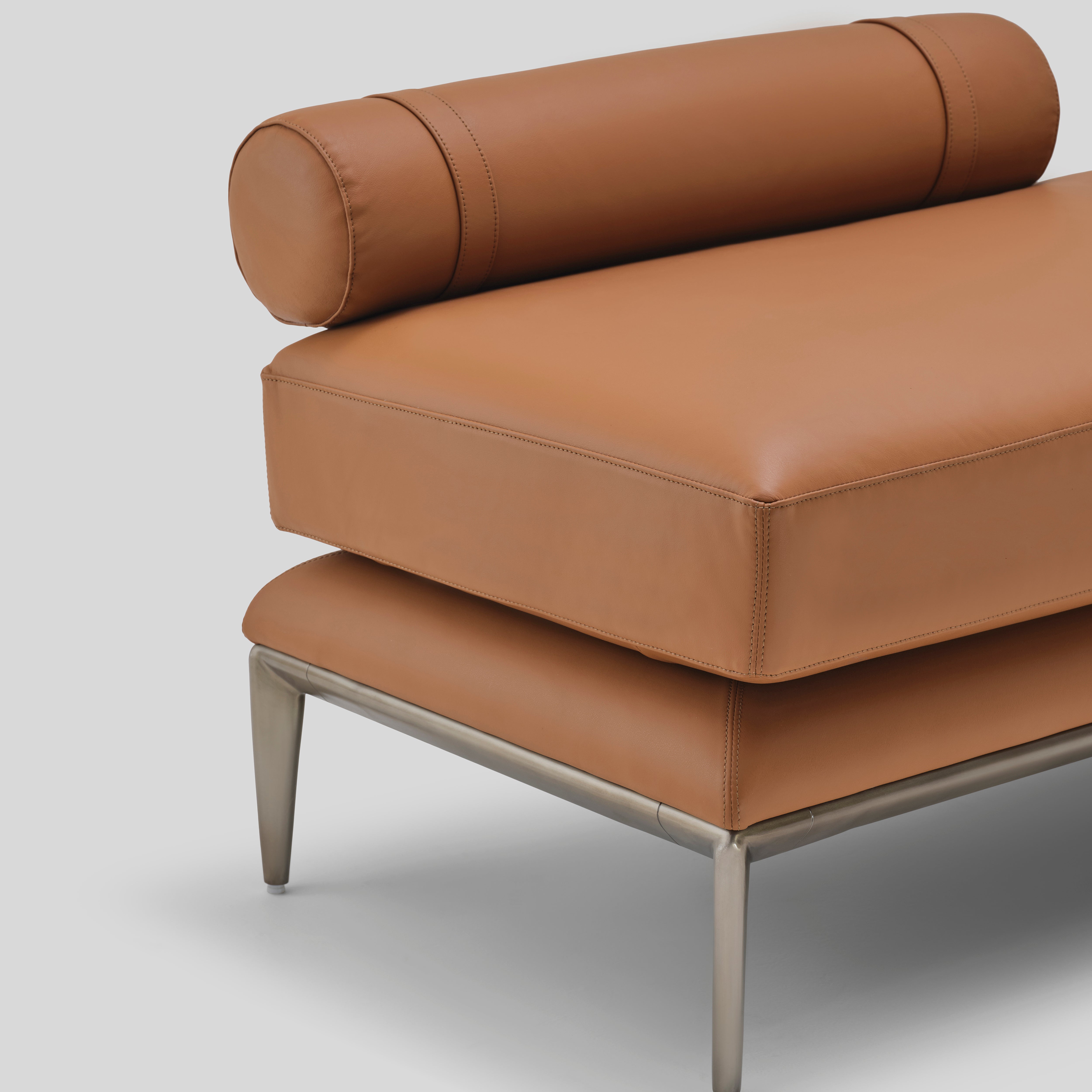 This sectional carries a refined lightness, its slender frame and tailored cushions shaping an effortless contemporary ease. The bolsters add a warm, intentional accent, softening the geometry. Spacious and inviting, it settles beautifully into modern living rooms where comfort, clarity, and quiet sophistication define the space.