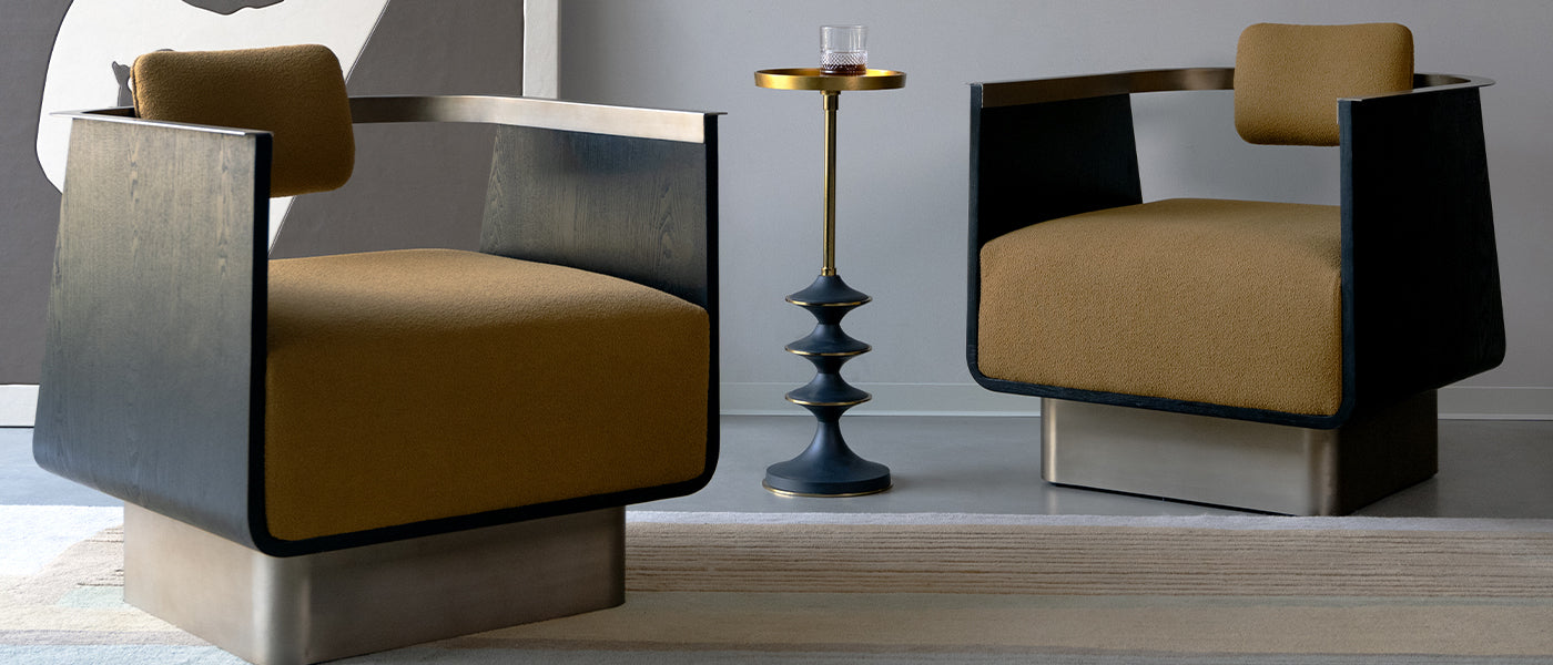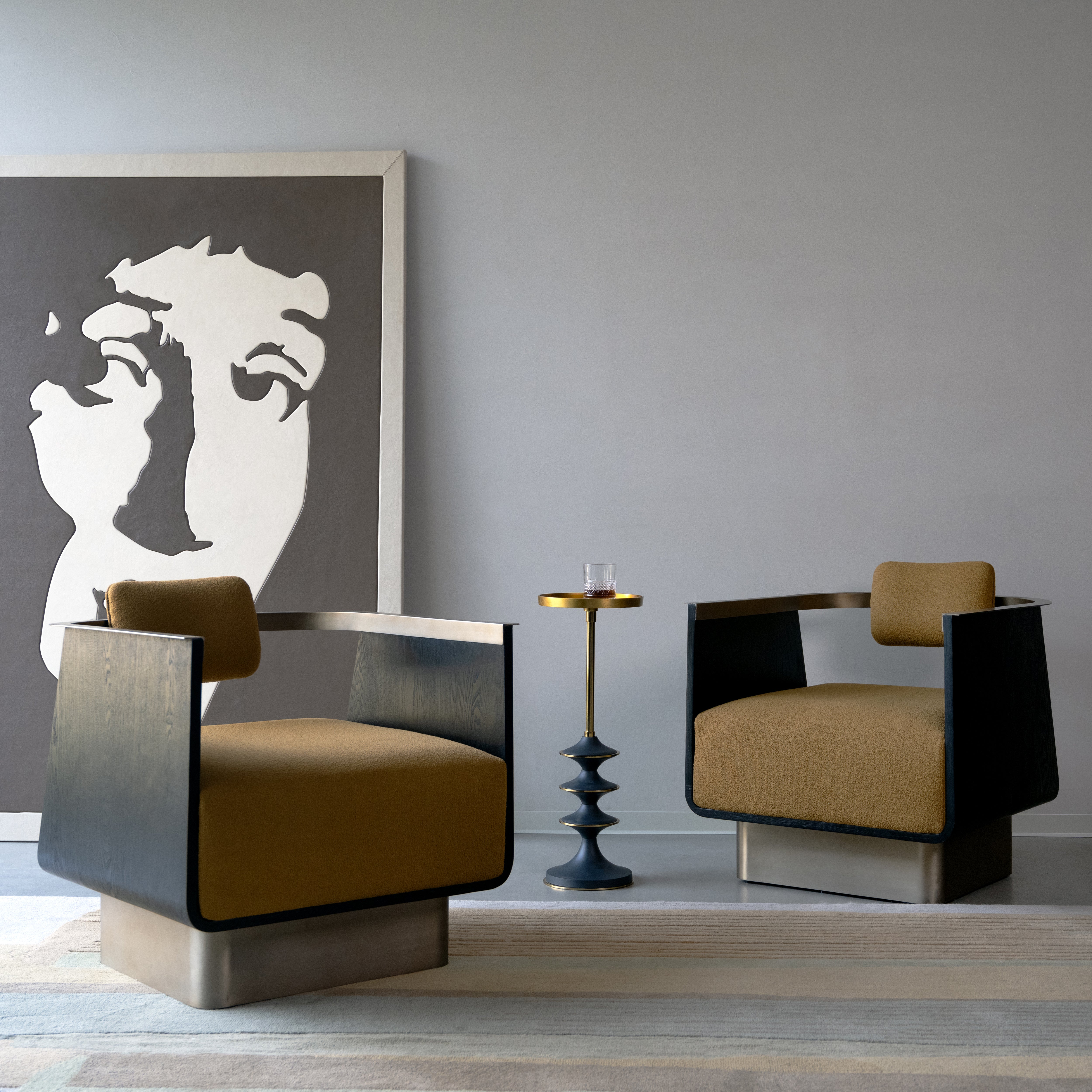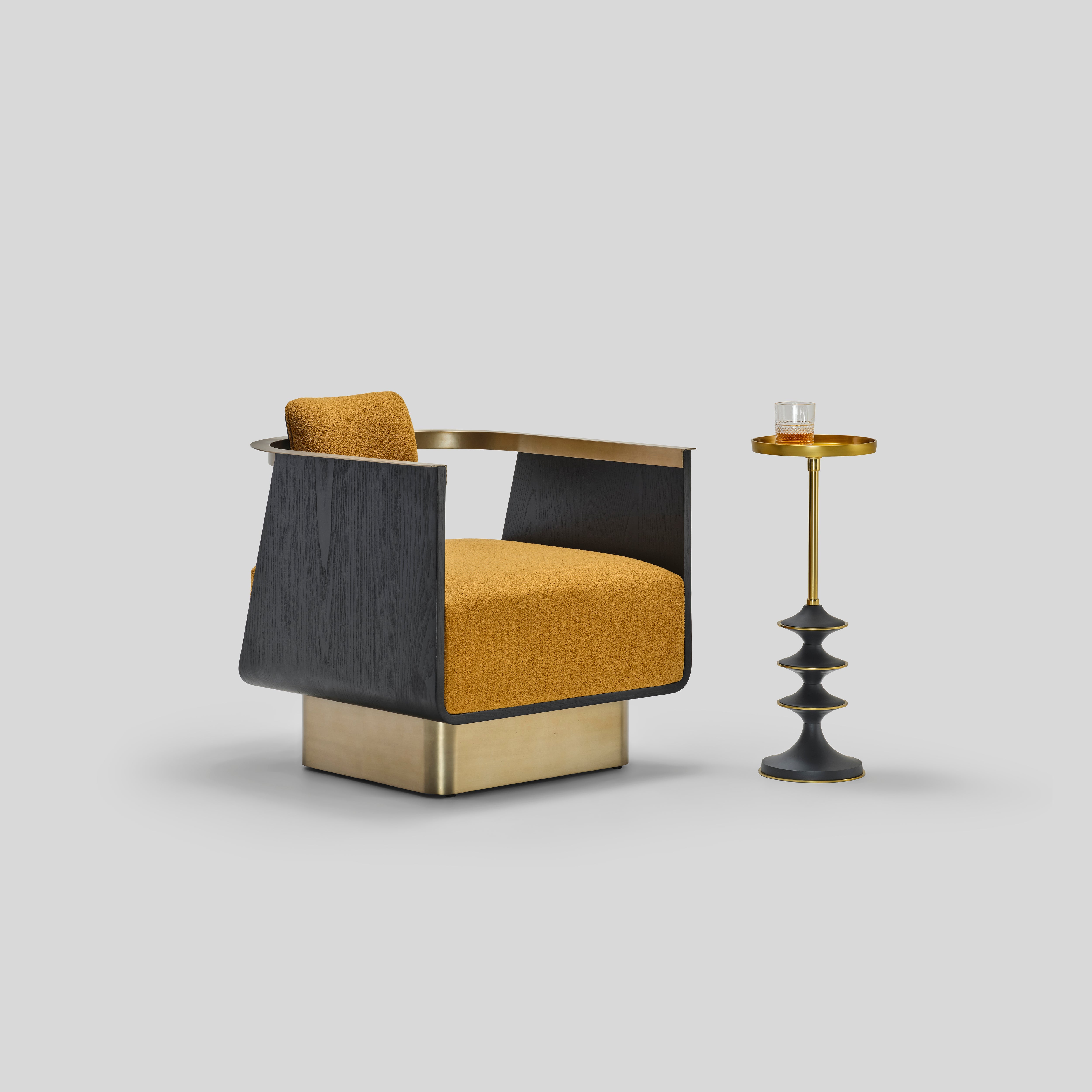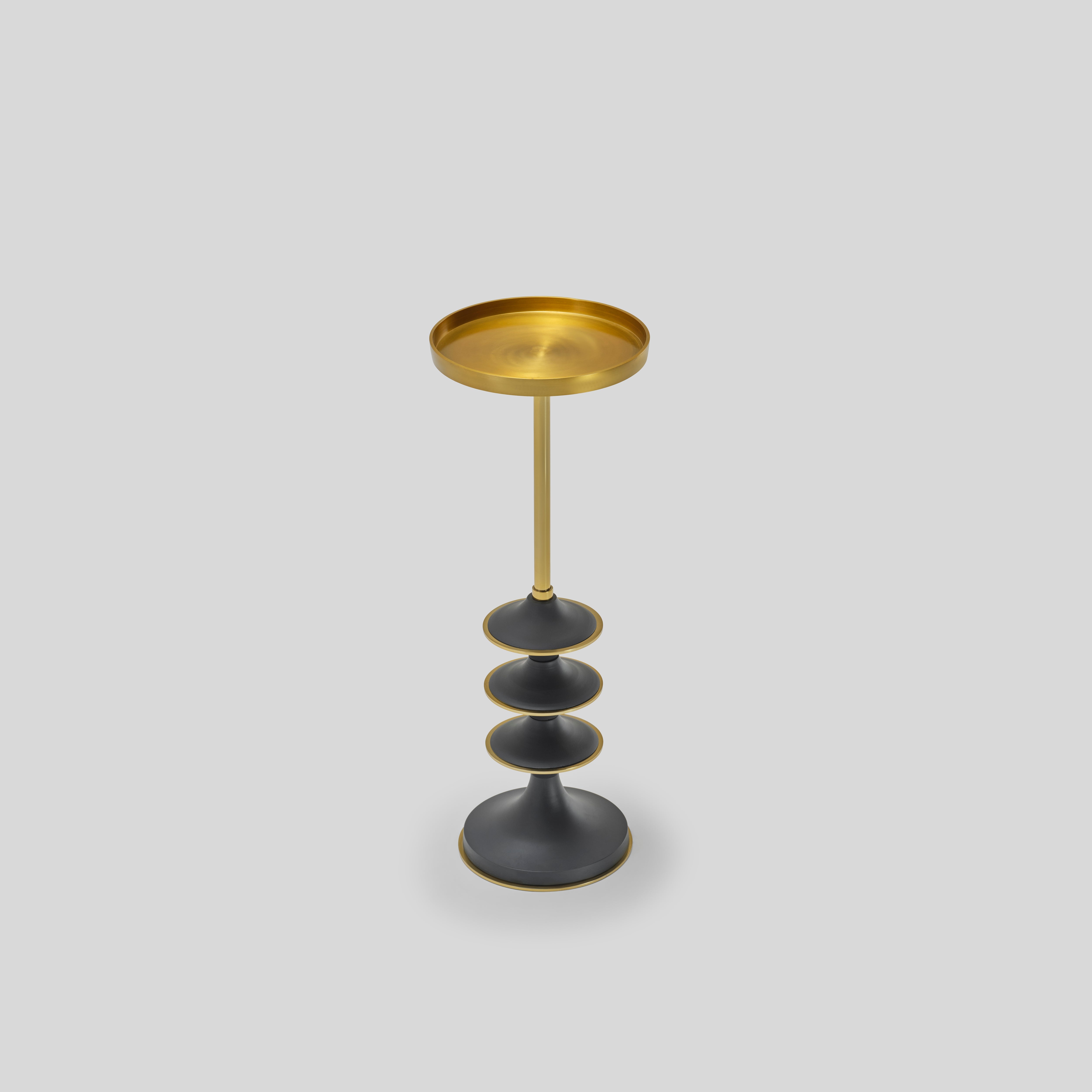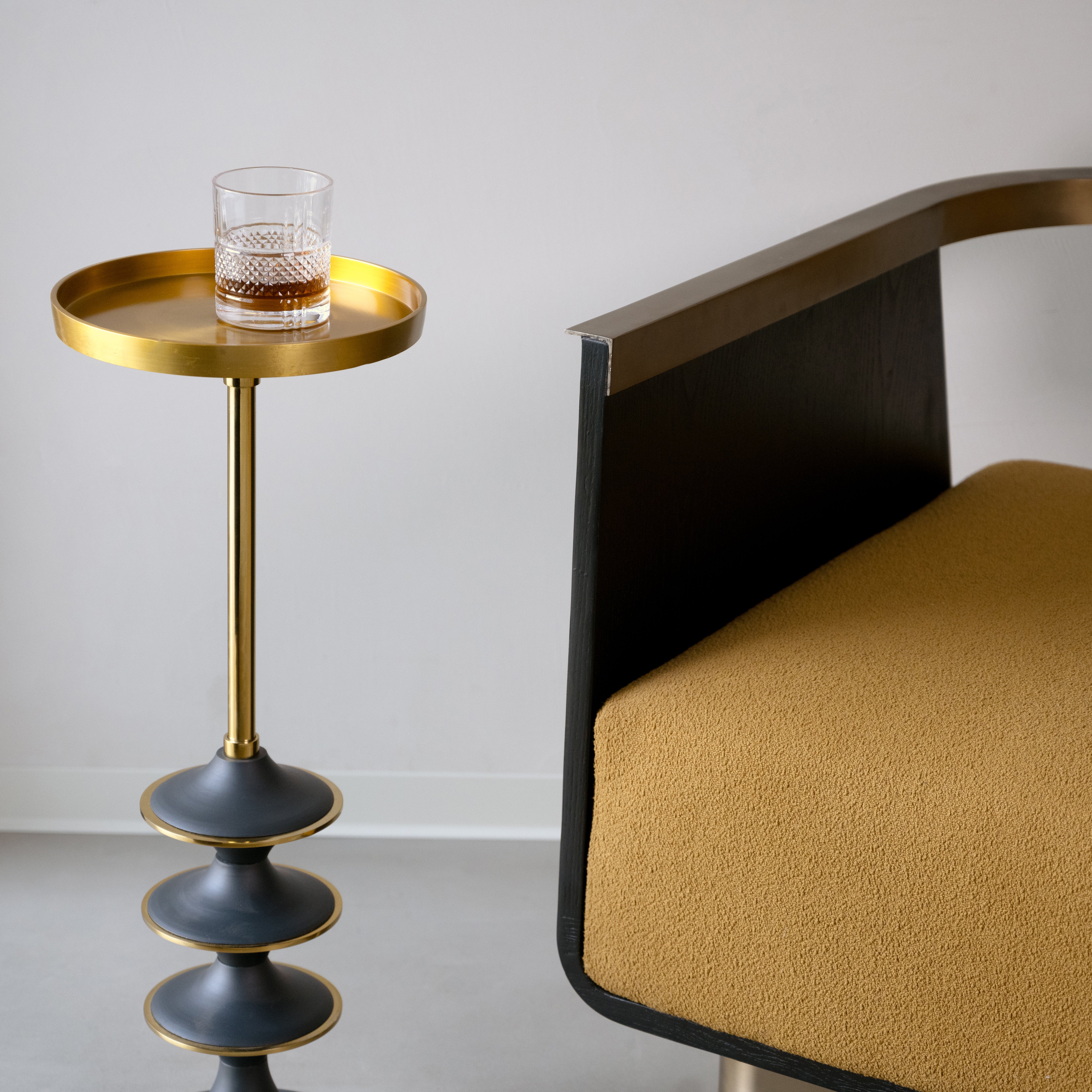 Tread side table channels mid-century modern through a contemporary lens, its tiered base forming a rhythmic, sculpted silhouette. The contrast of dark curves and golden accents brings both warmth and clarity. Functional yet expressive, it stands as an artful accent that enriches any refined interior setting.