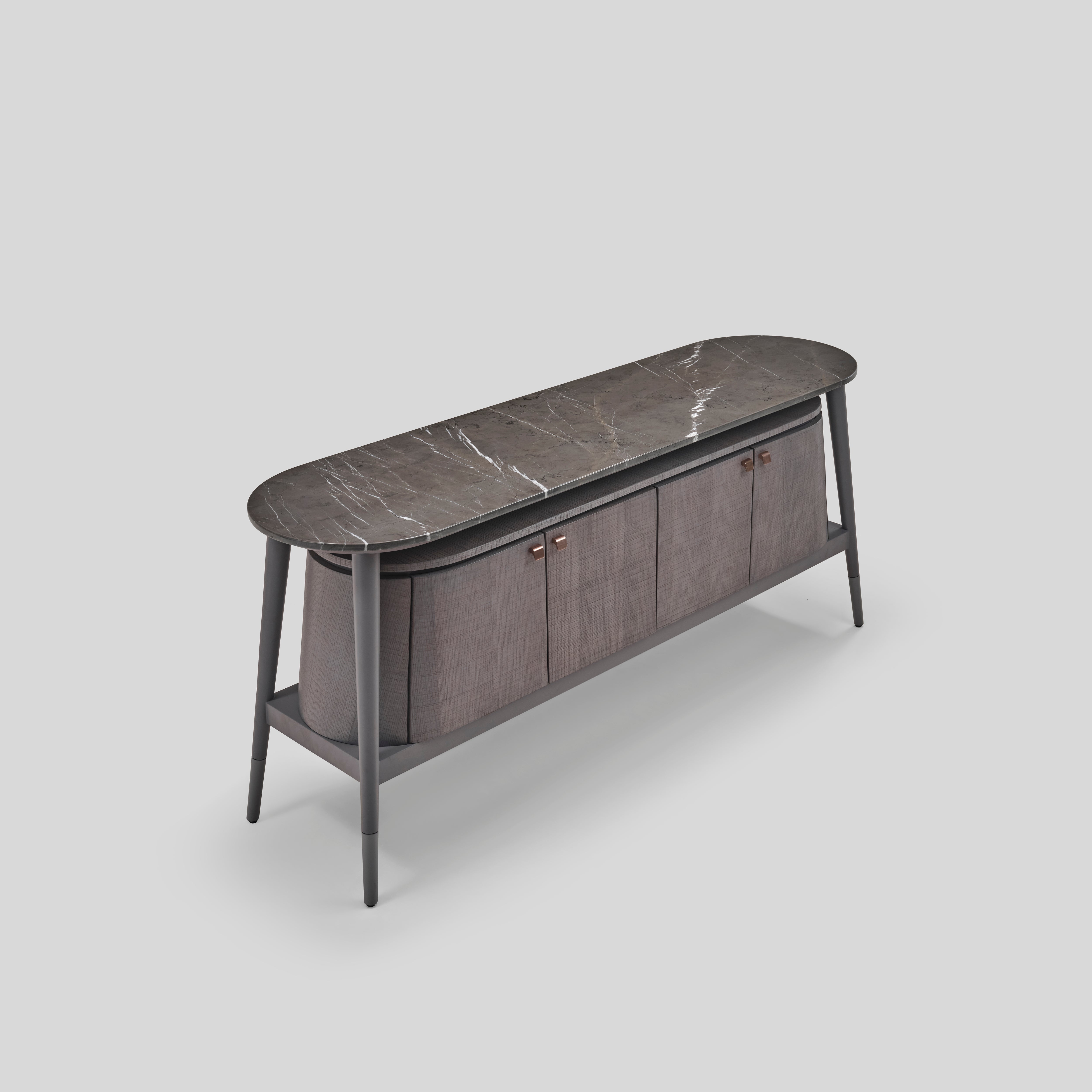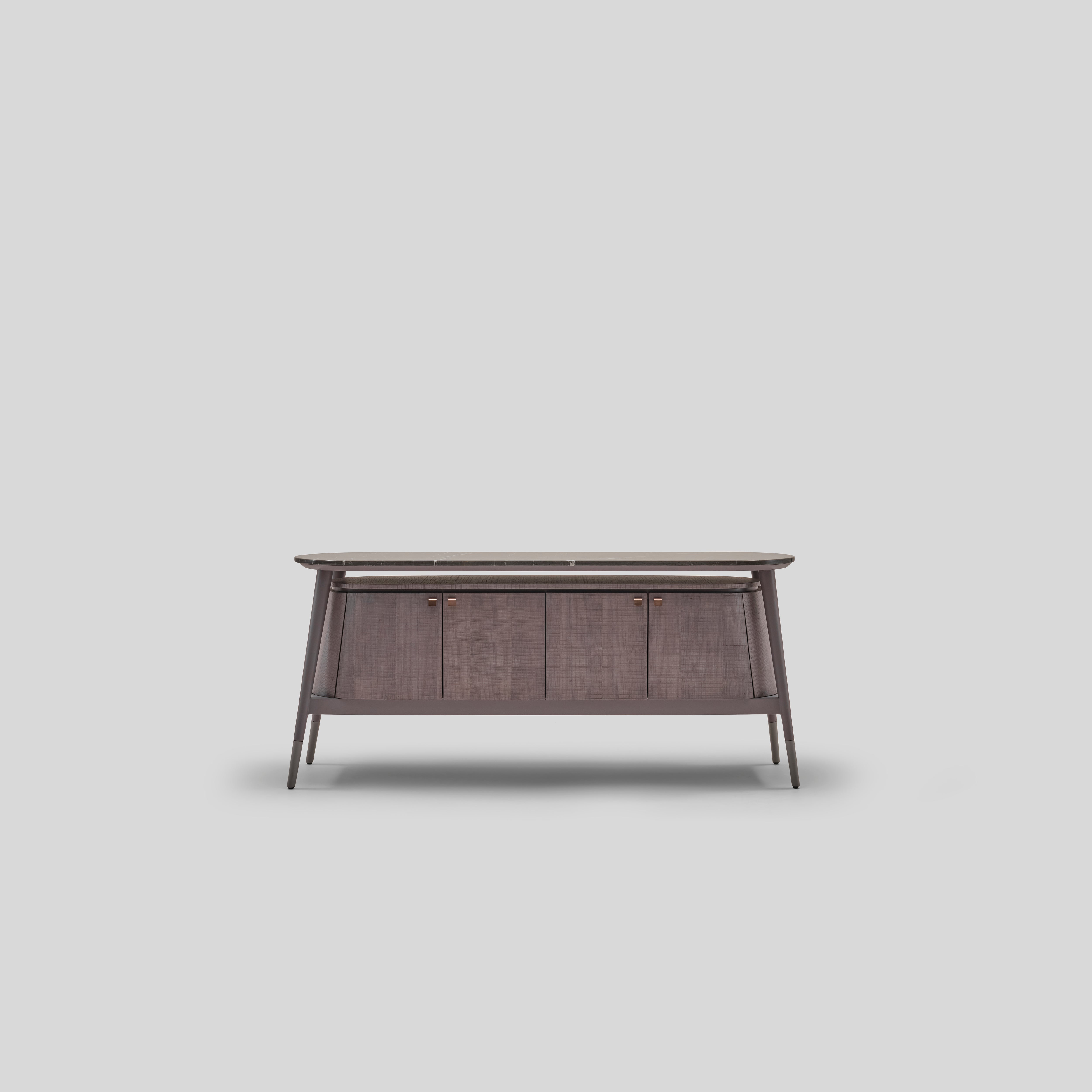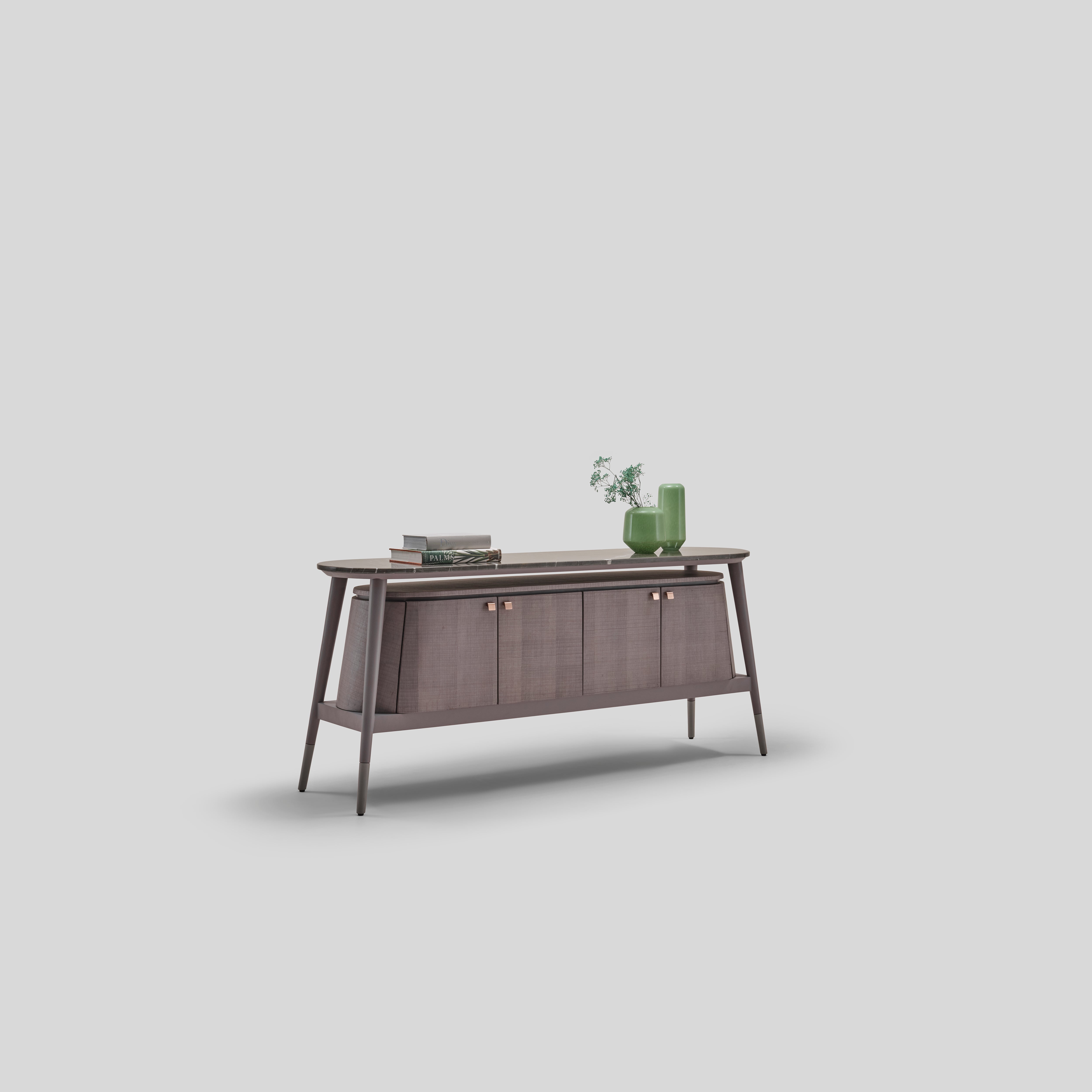 This sideboard brings a fresh mid-century sensibility, pairing graceful structure with a softly tailored façade. Its refined details and muted palette create an understated richness, offering concealed storage while adding a sculptural calm that feels perfectly at home in thoughtfully styled interiors.