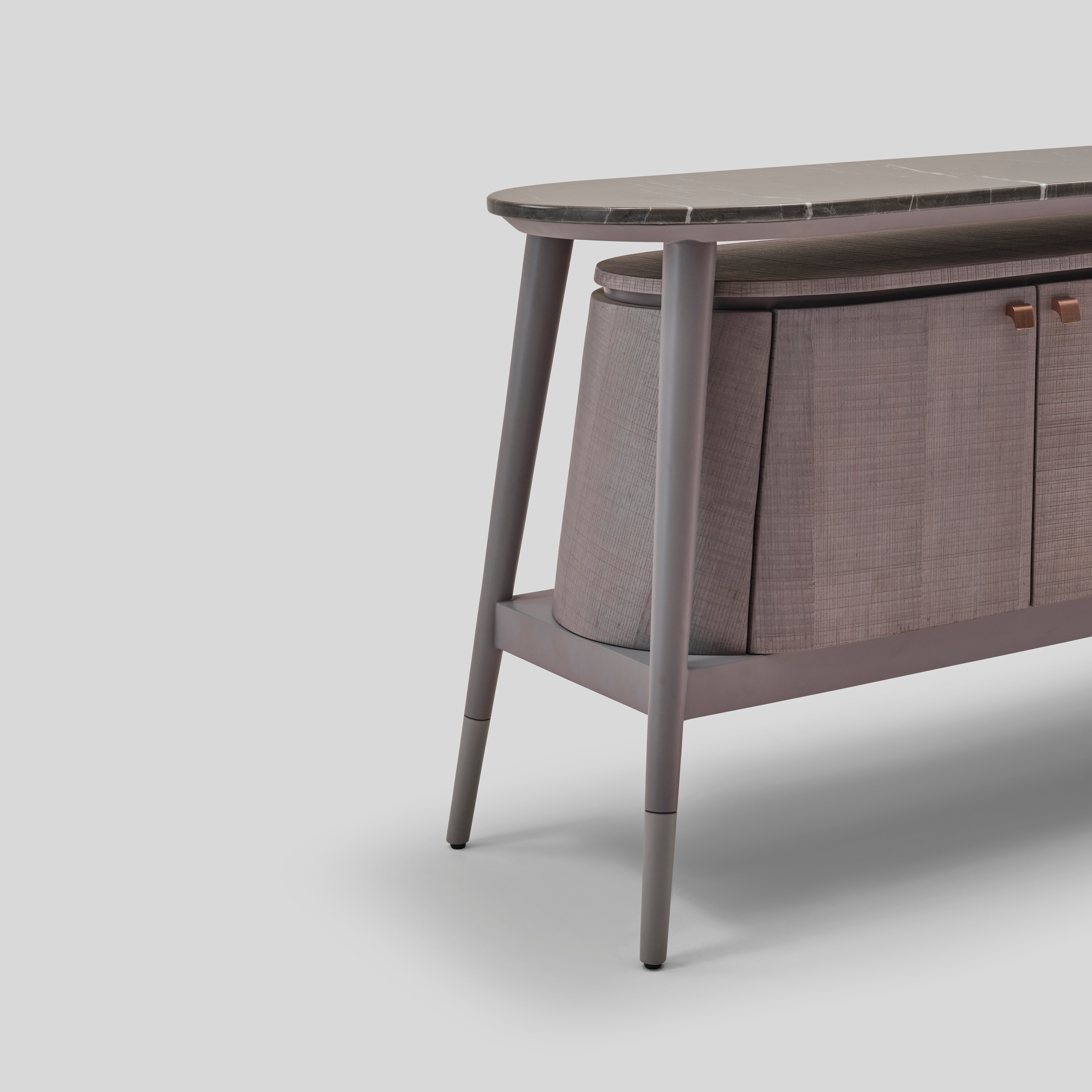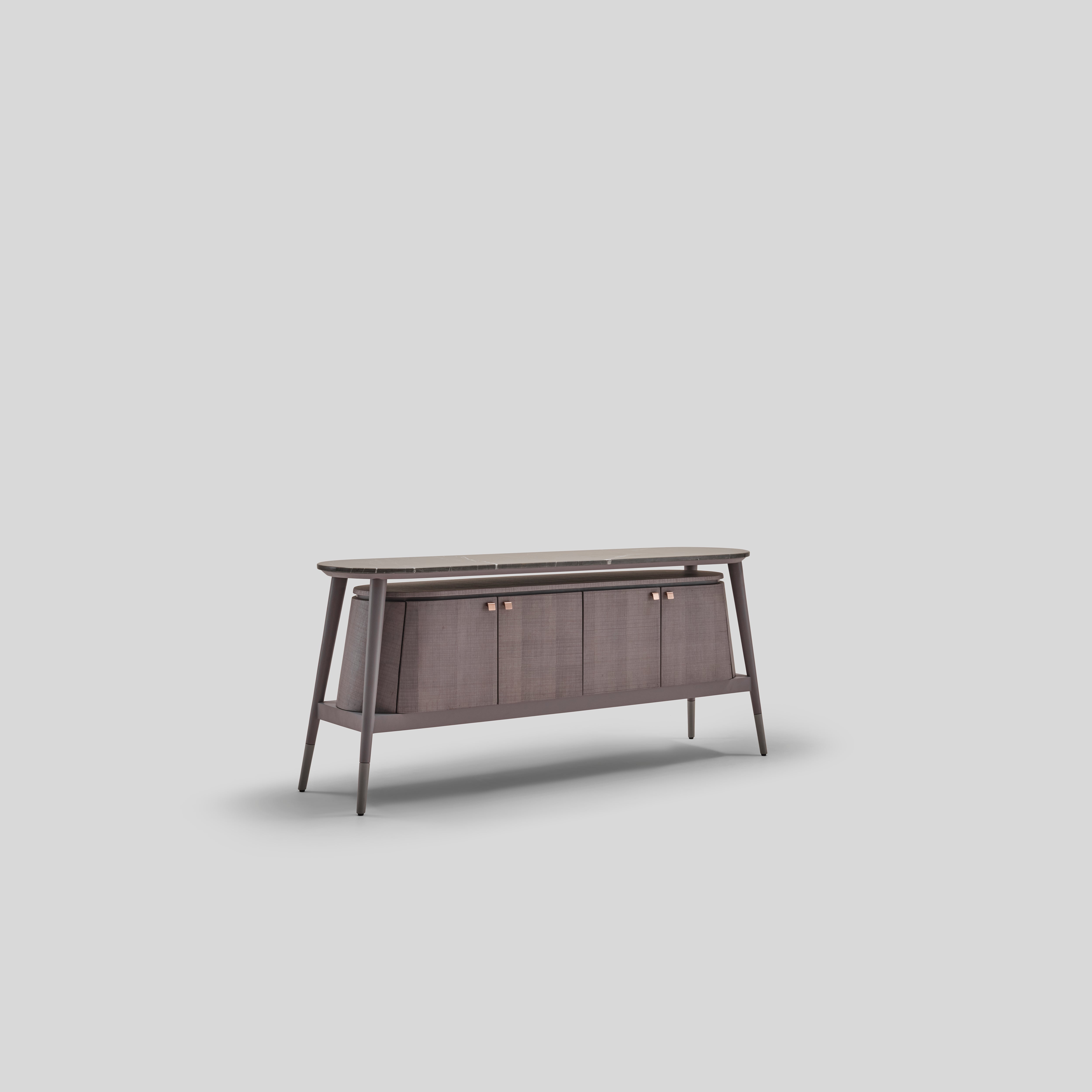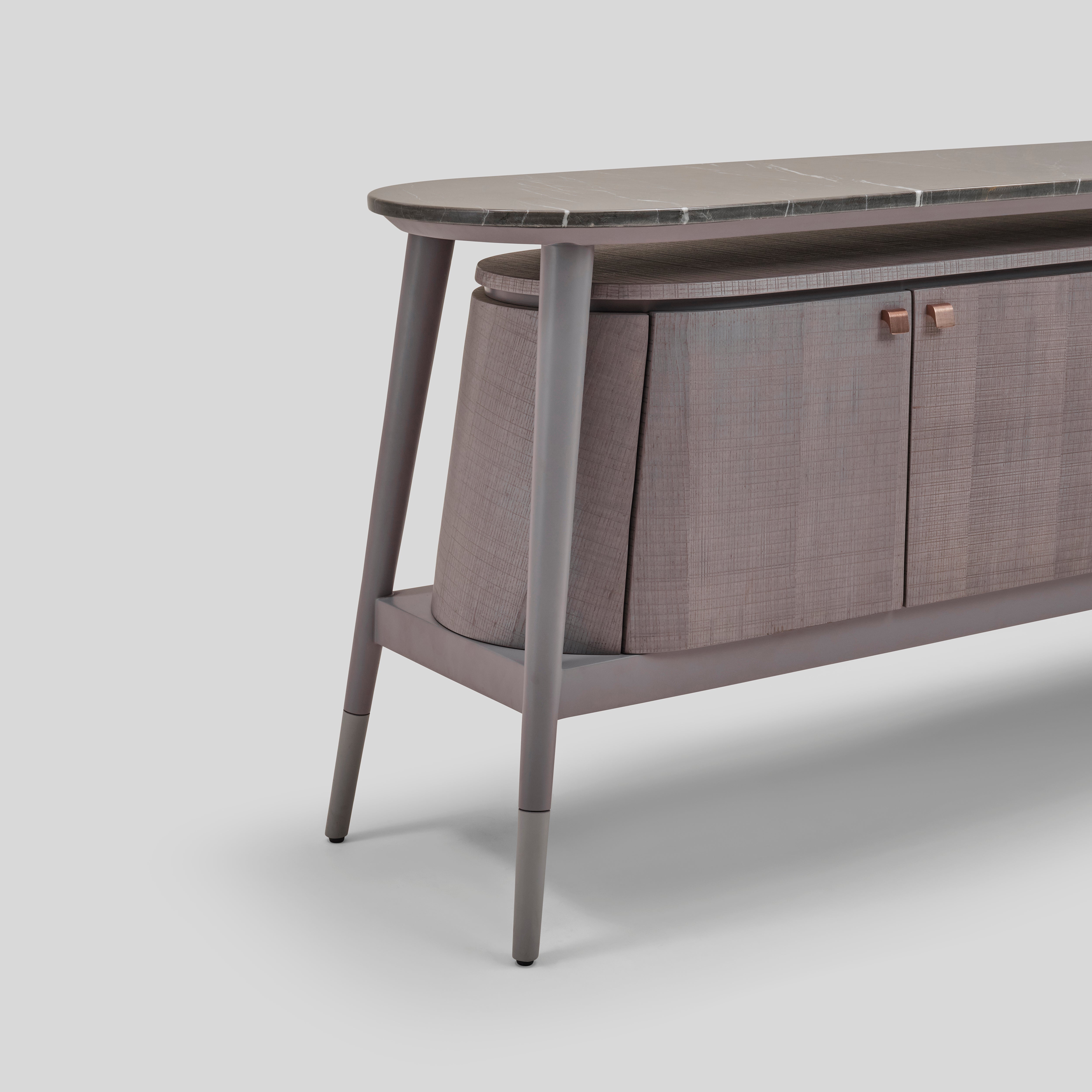 This sideboard brings a fresh mid-century sensibility, pairing graceful structure with a softly tailored façade. Its refined details and muted palette create an understated richness, offering concealed storage while adding a sculptural calm that feels perfectly at home in thoughtfully styled interiors.