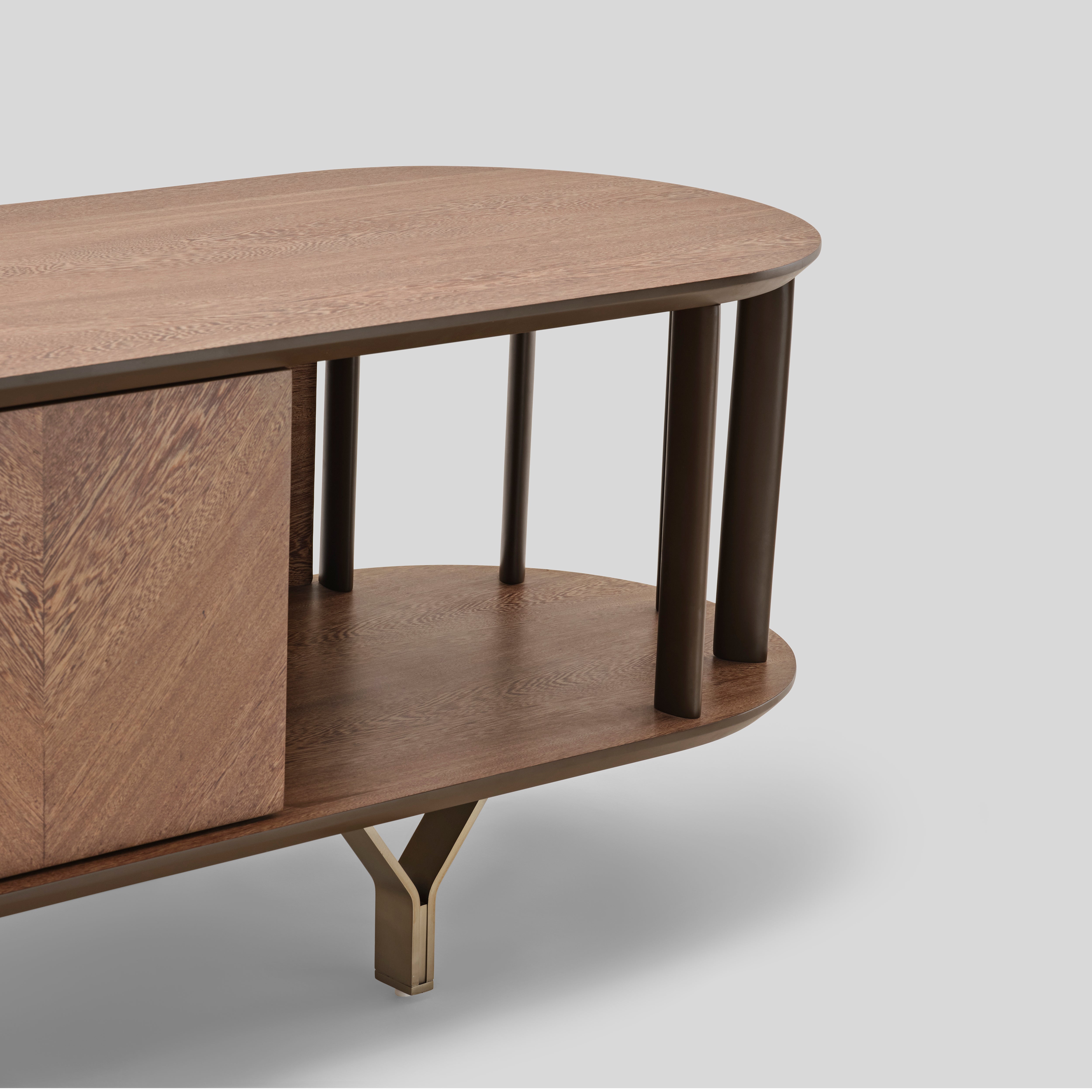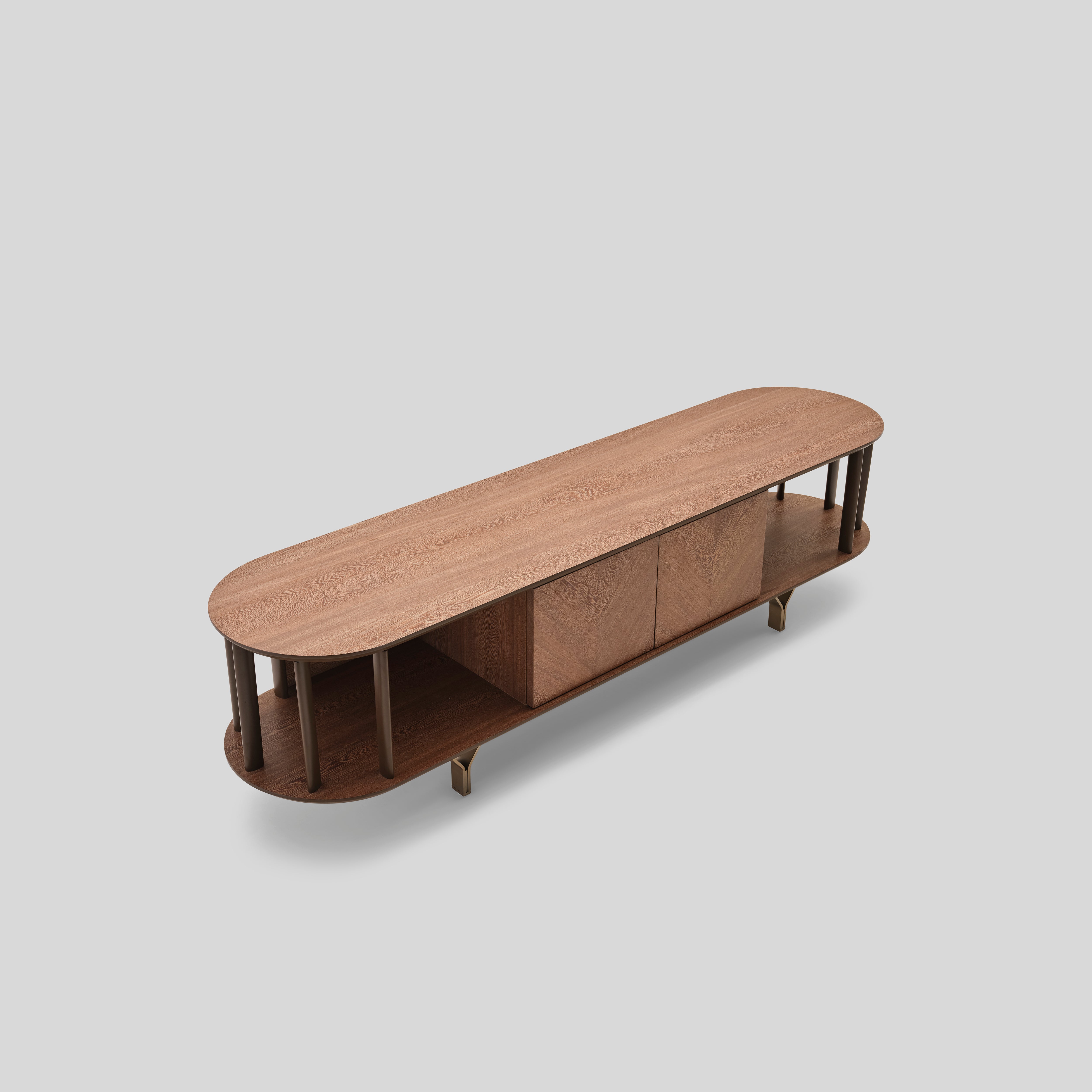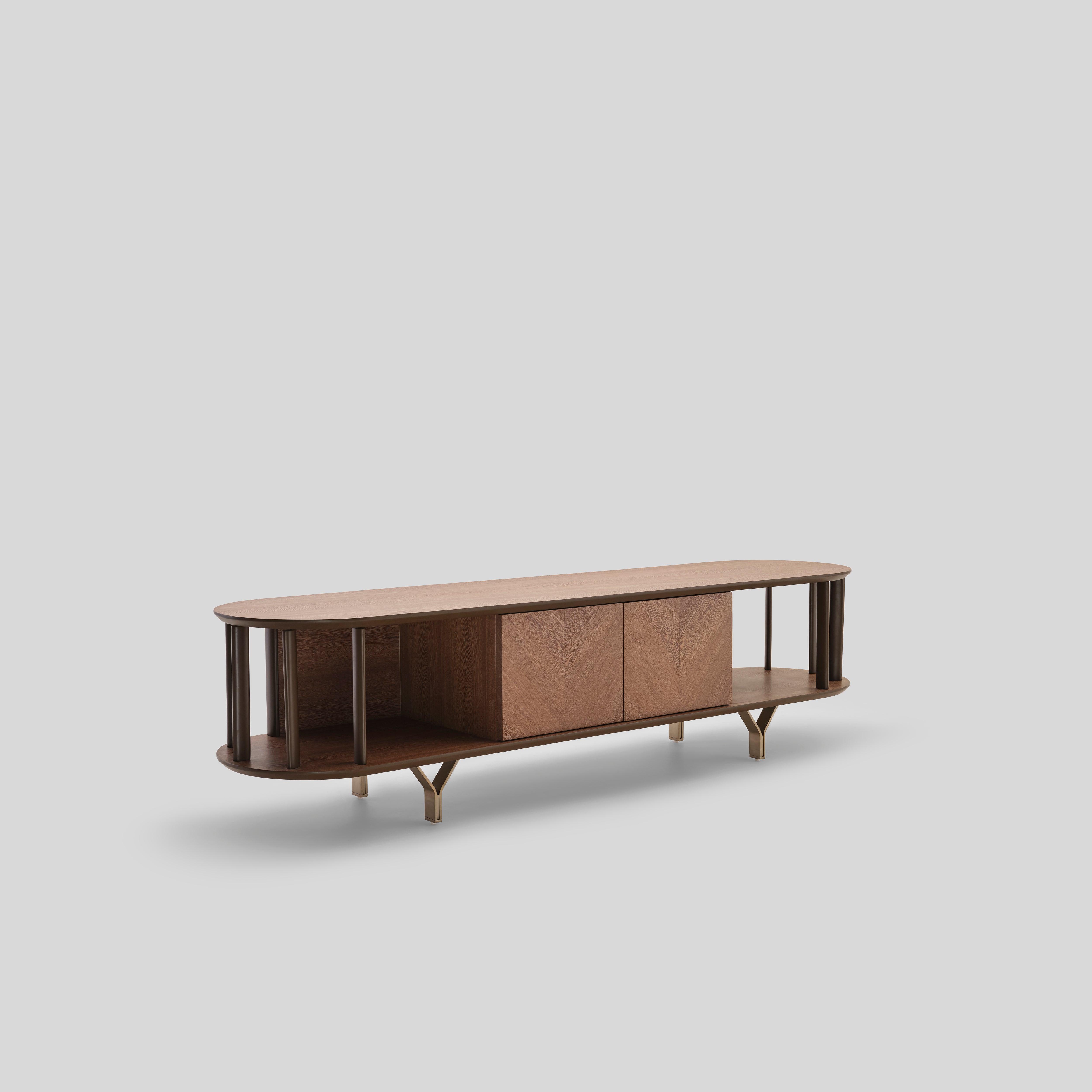 Essenza sideboard pairs warmth with thoughtful clarity, its central storage keeping essentials tucked away while the surrounding shelves invite curated display. The open–closed balance feels adaptable and visually light, giving interiors a contemporary anchor with a quietly refined, design-minded presence.
