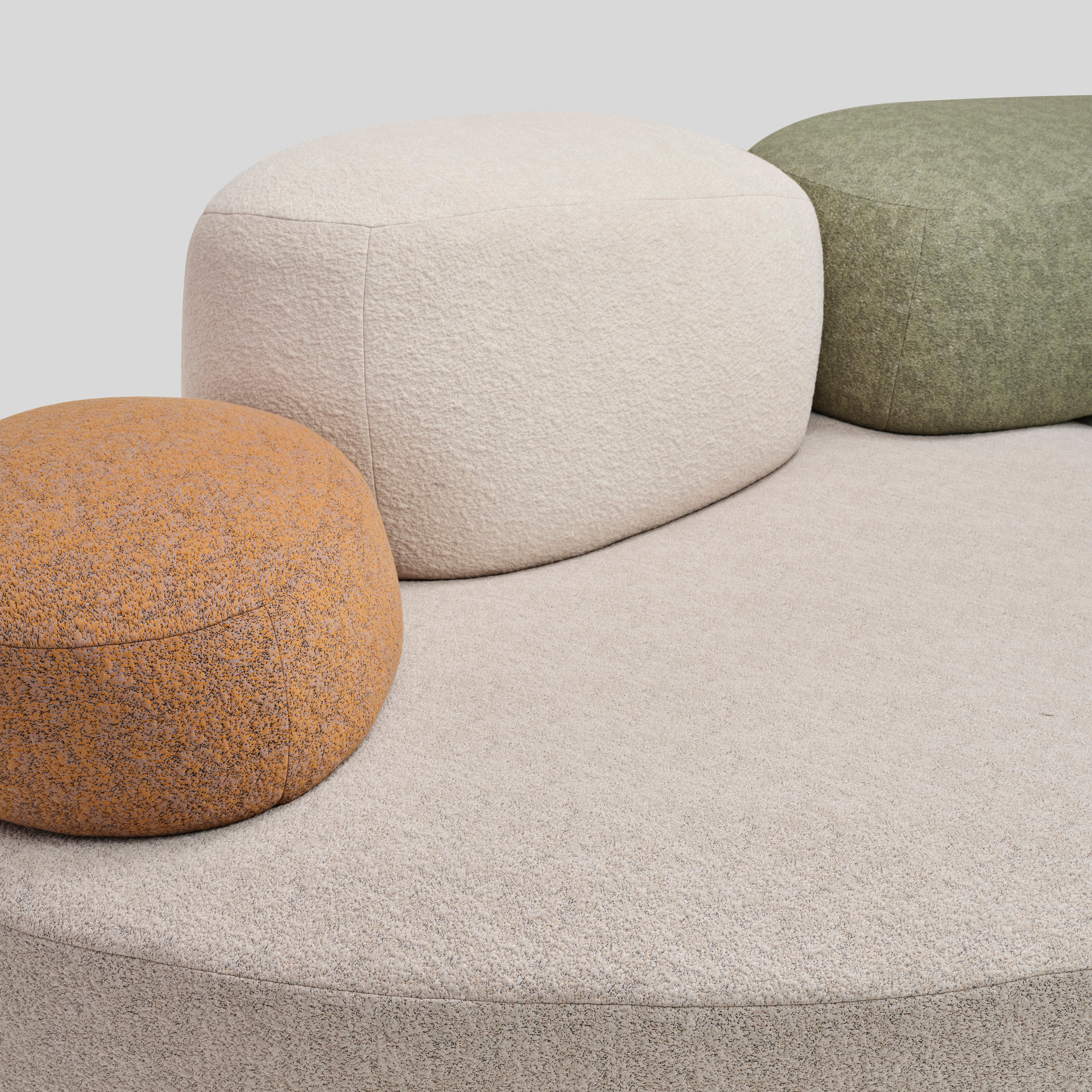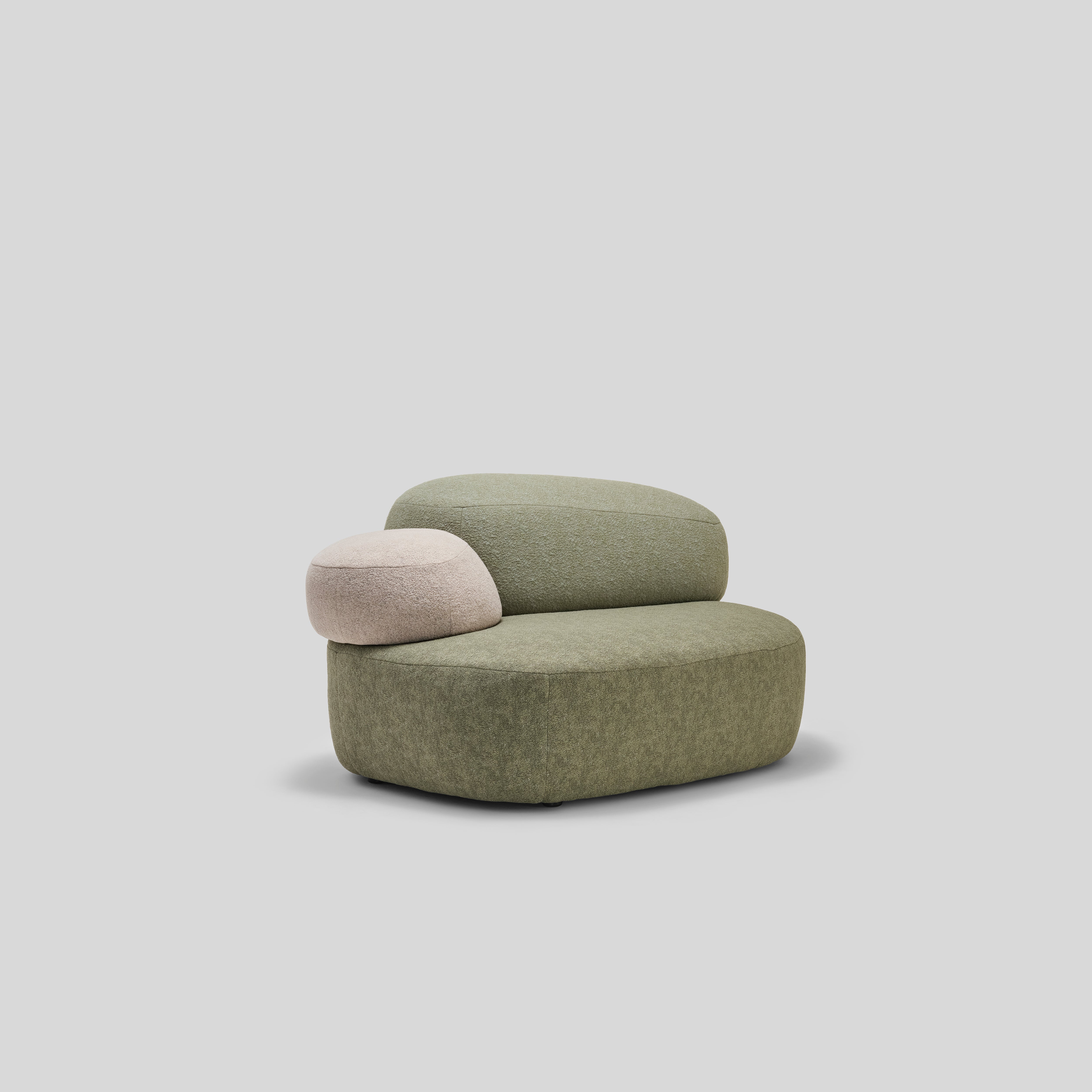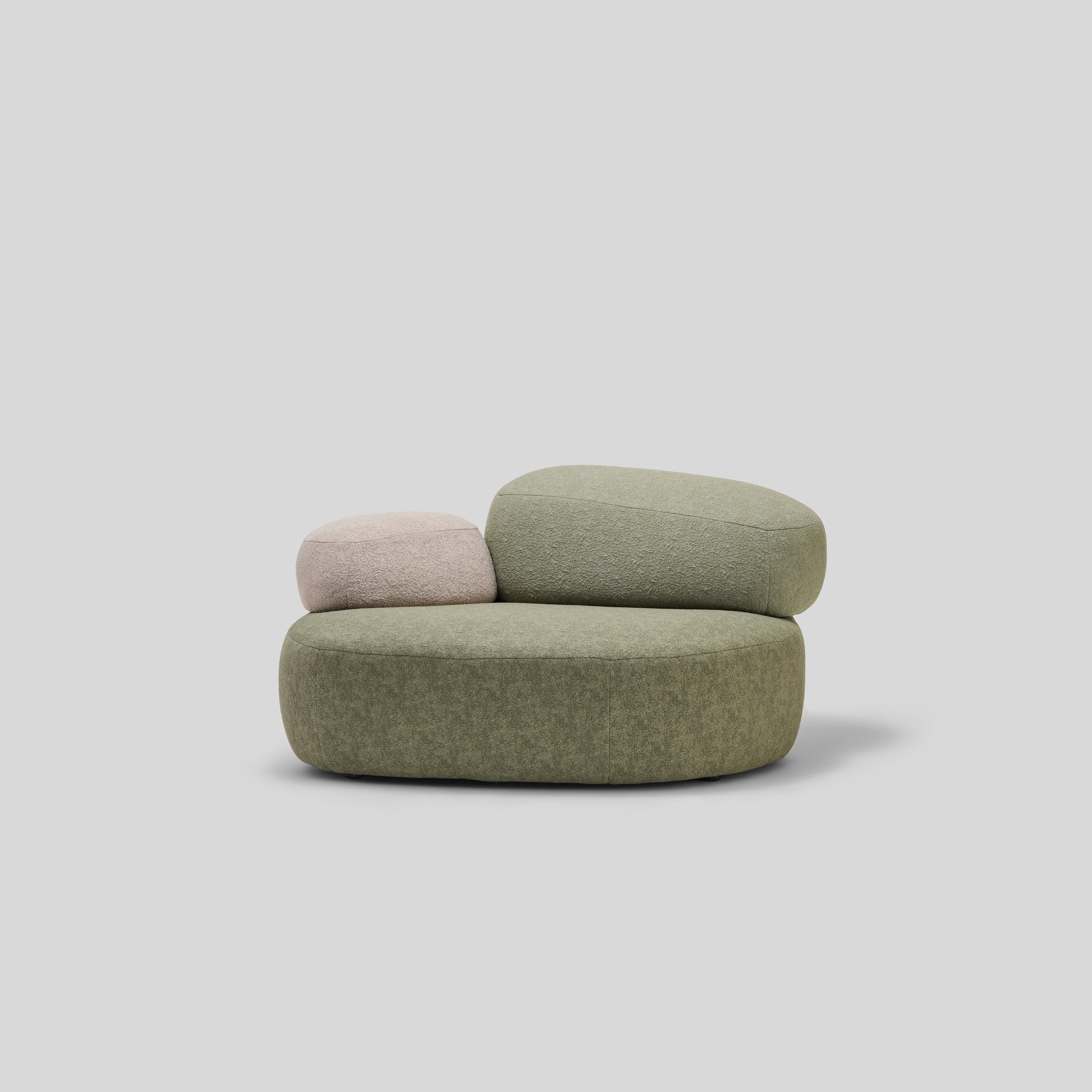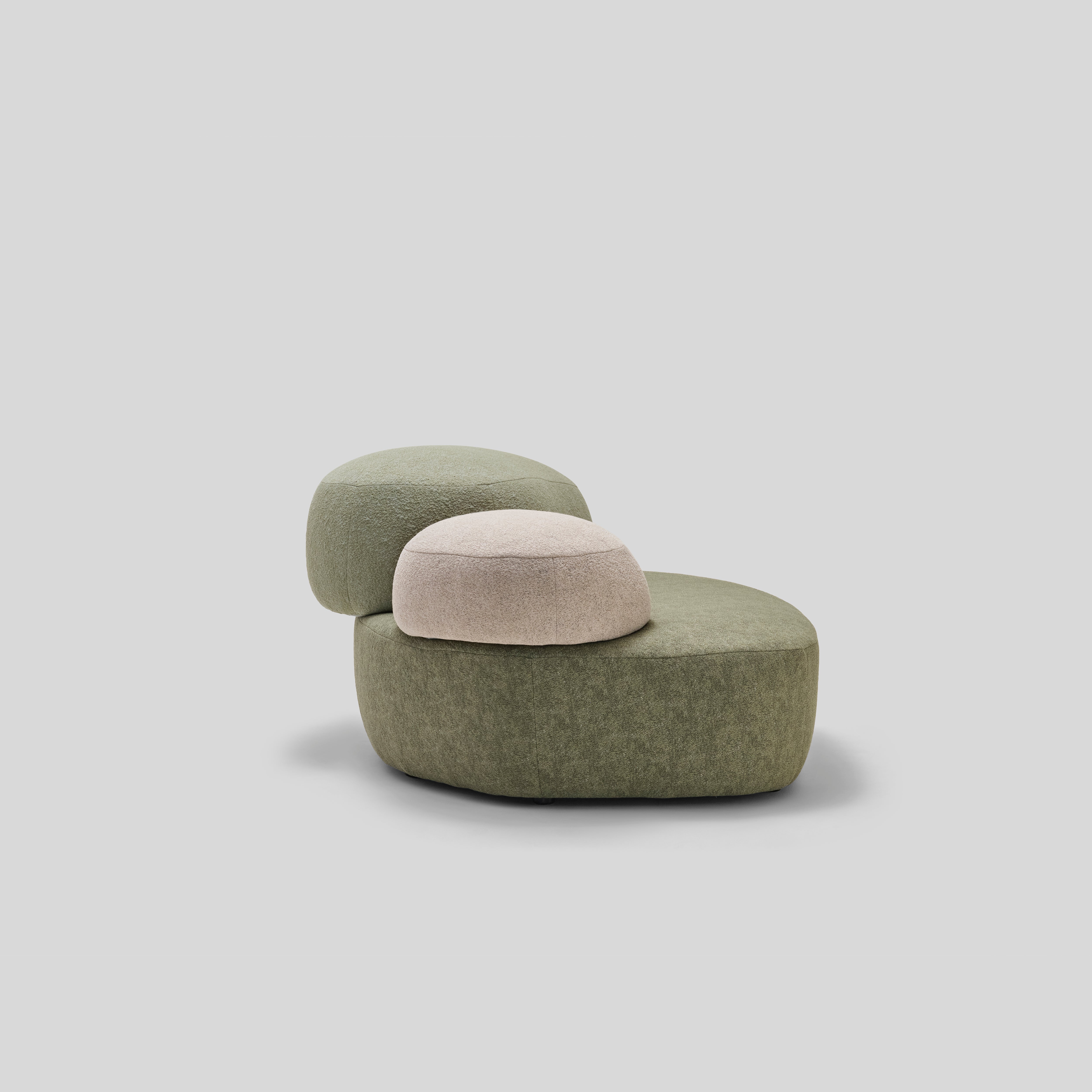 • Pebble shaped Seat, backrest, arm rest upholstered in textured fabric