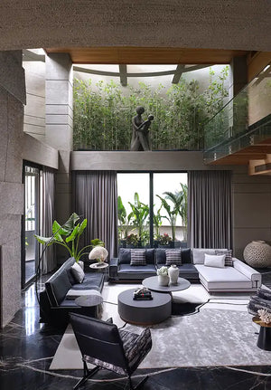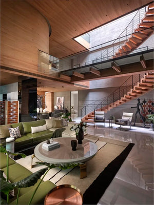 Exquisite furniture, layered decor, and surreal art evoke sense of quiet luxury, creating spaces that feel both harmonised and cohesive. The result is a home where architecture and furniture coexist harmoniously, celebrating simplicity, fine materials, and the beauty of tailored design. This 4 storey vertical dwelling is personified by intertwining of natural tranquility and bespoke furniture.